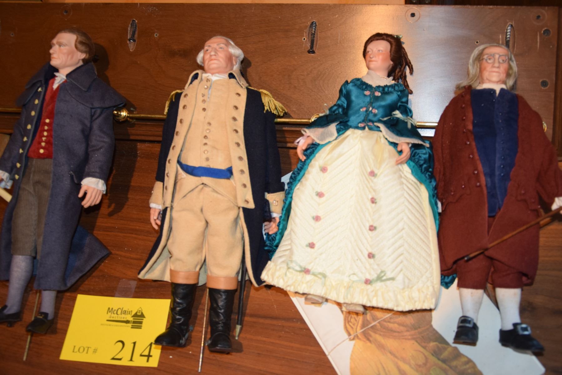 "GREAT AMERICANS" FIGURINES W/SHELF (BEN FRANKLIN, ABIGAIL ADAMS, THOMAS JEFFERSON, GEORGE WASHINGTON (5 PCS)
