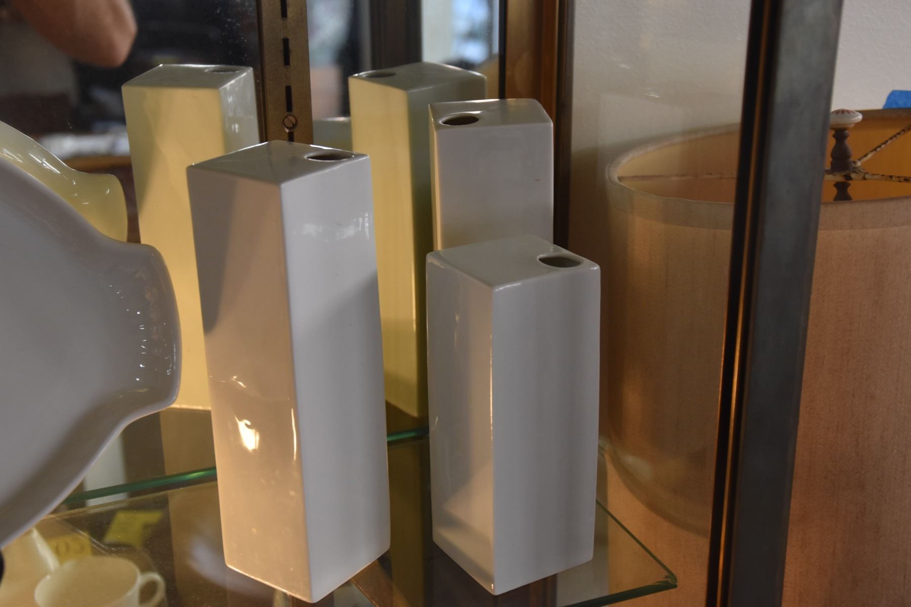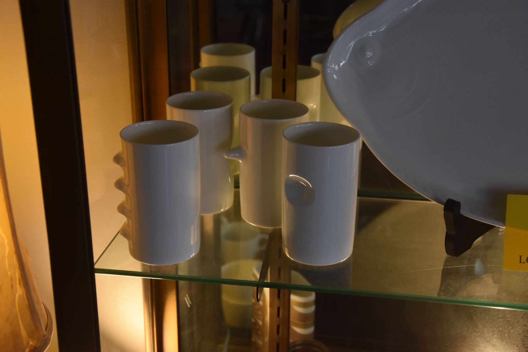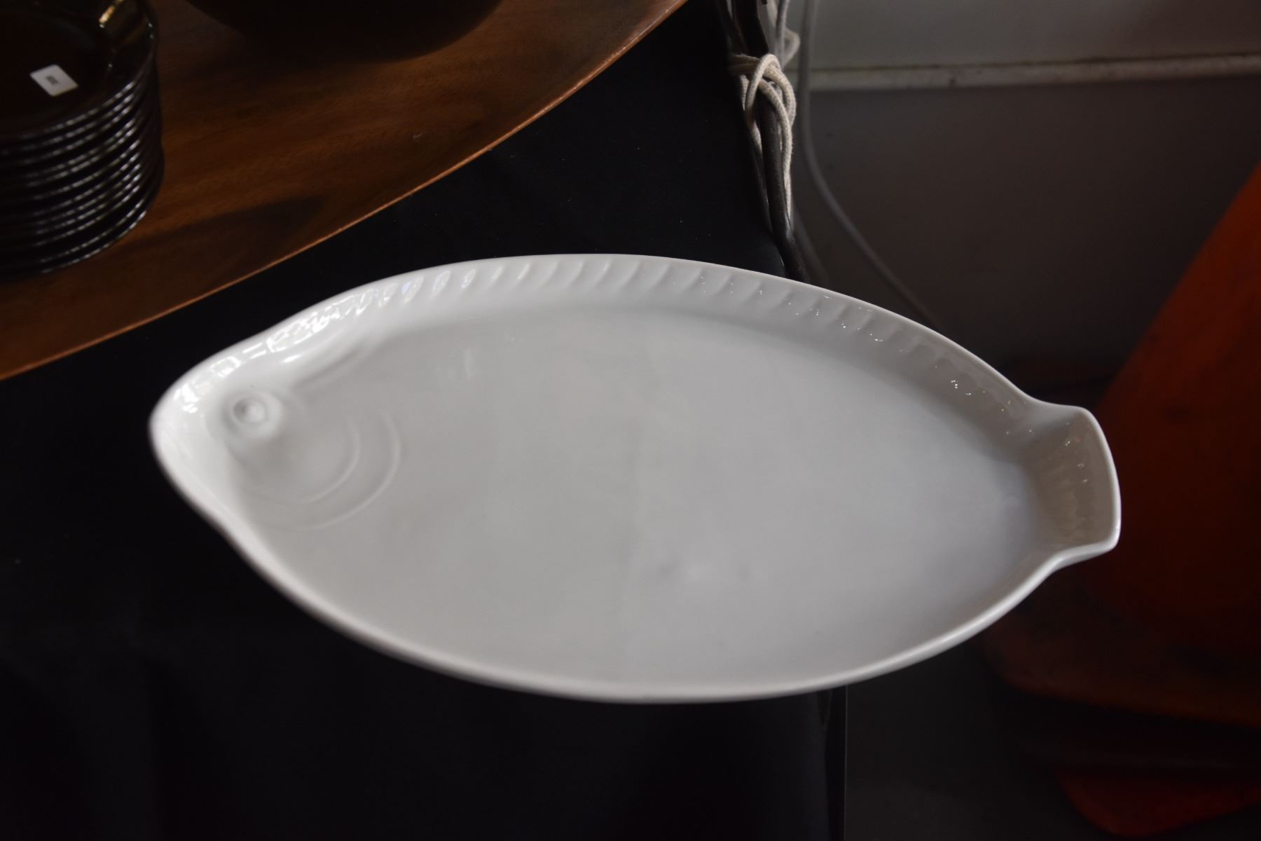 HAKUSAN PORCELAIN CUPS, PORDAMSA VASES & GERMAN FISH PLATTER (8 PCS) (DOES NOT INCLUDE STAND)