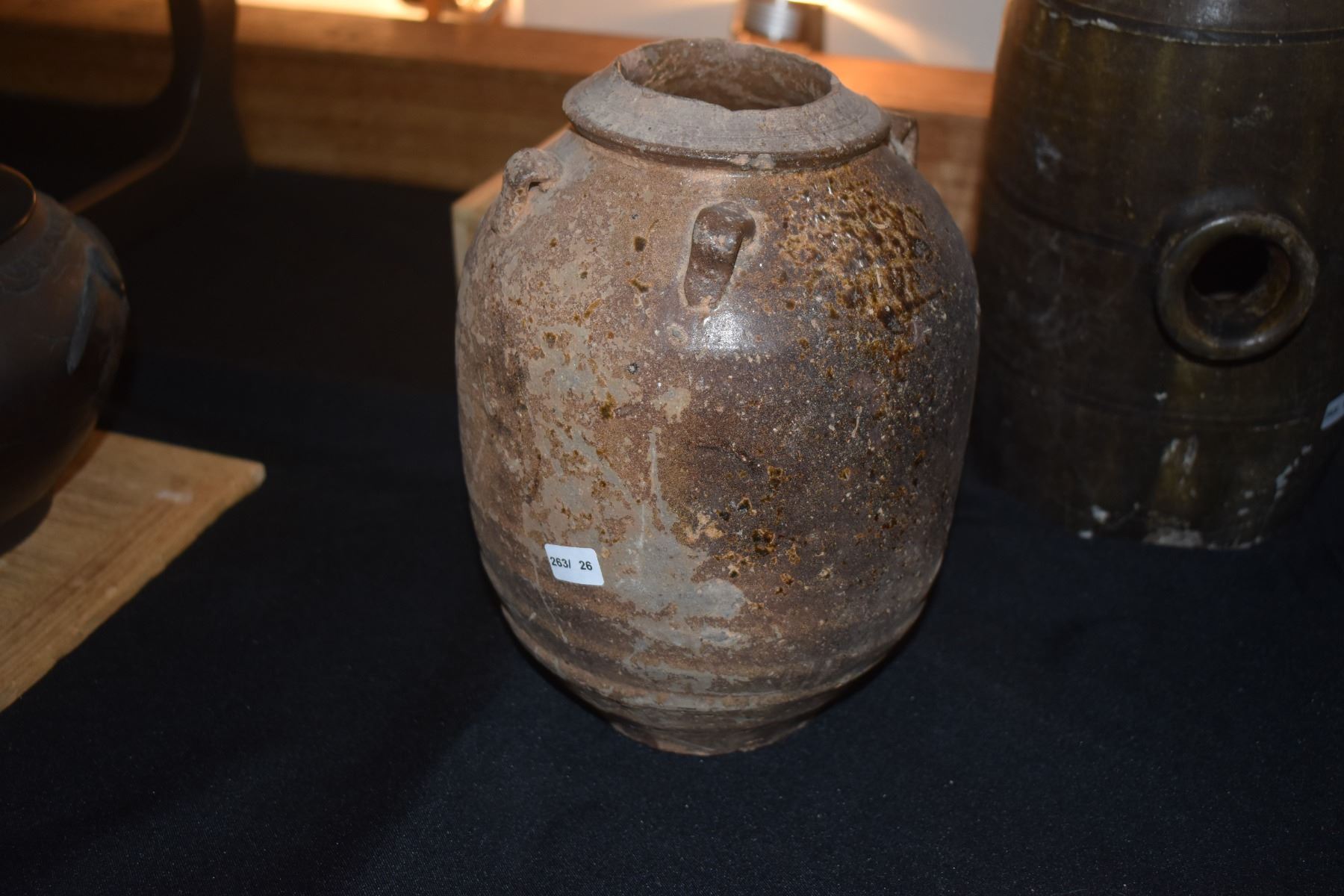 HAN DYNASTY COCOON JAR, EX JOHN YOUNG COLLECTION & HAN DYNASTY JAR W/4 LUGS (2 PCS) (DOES NOT INCLUDE STAND)