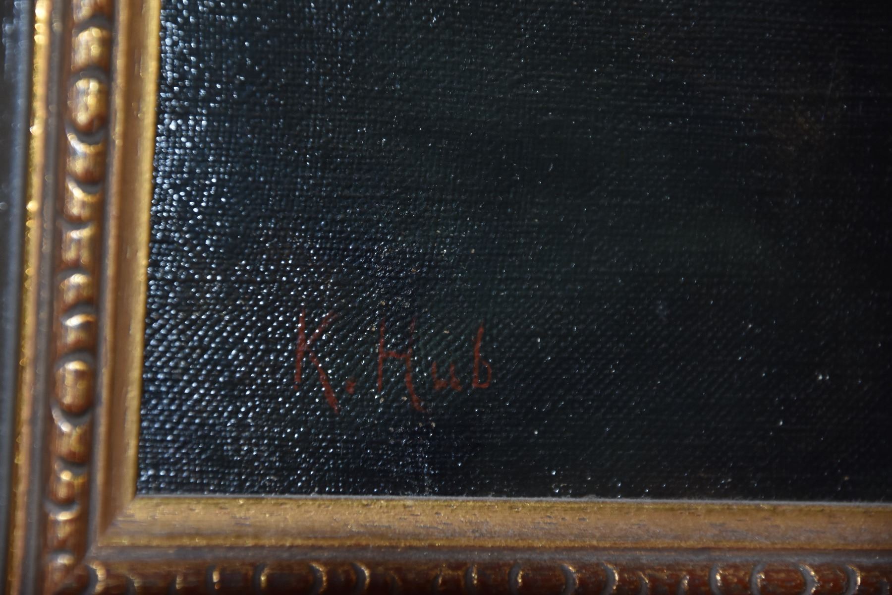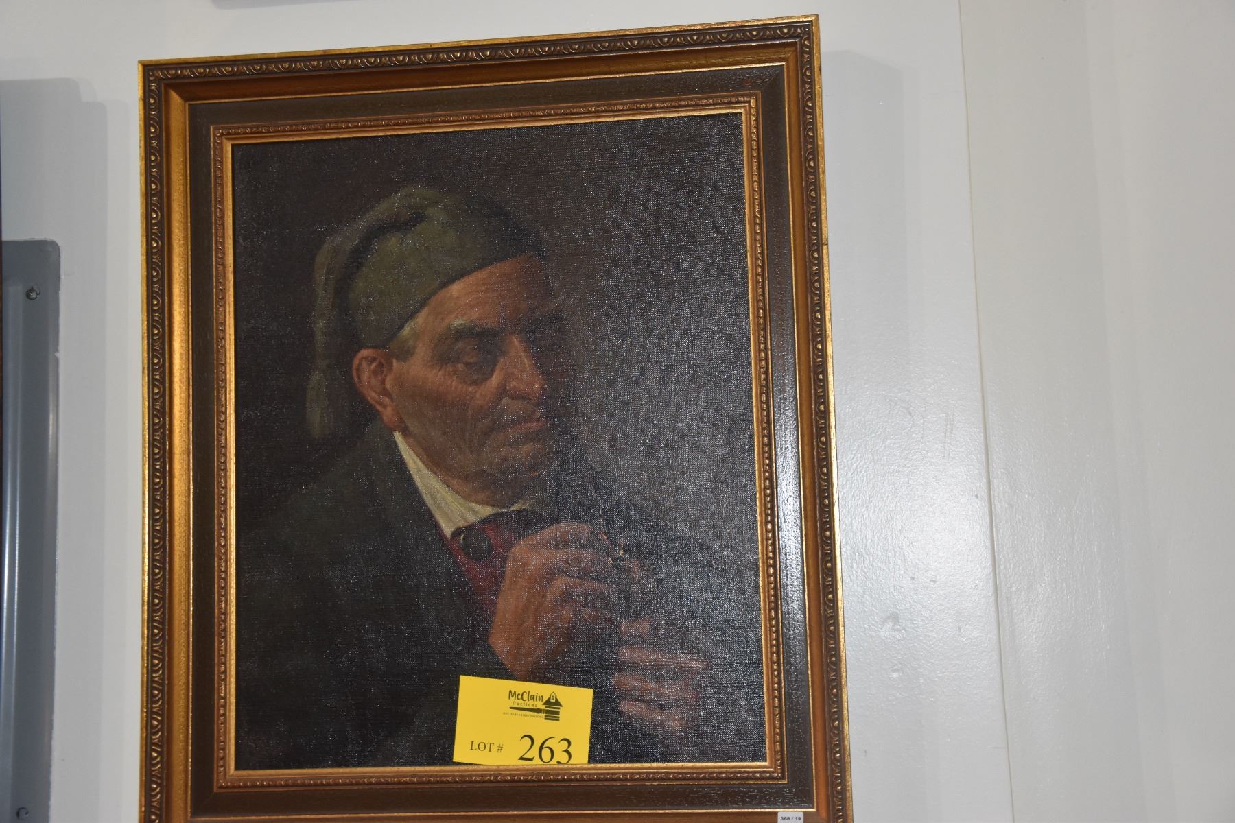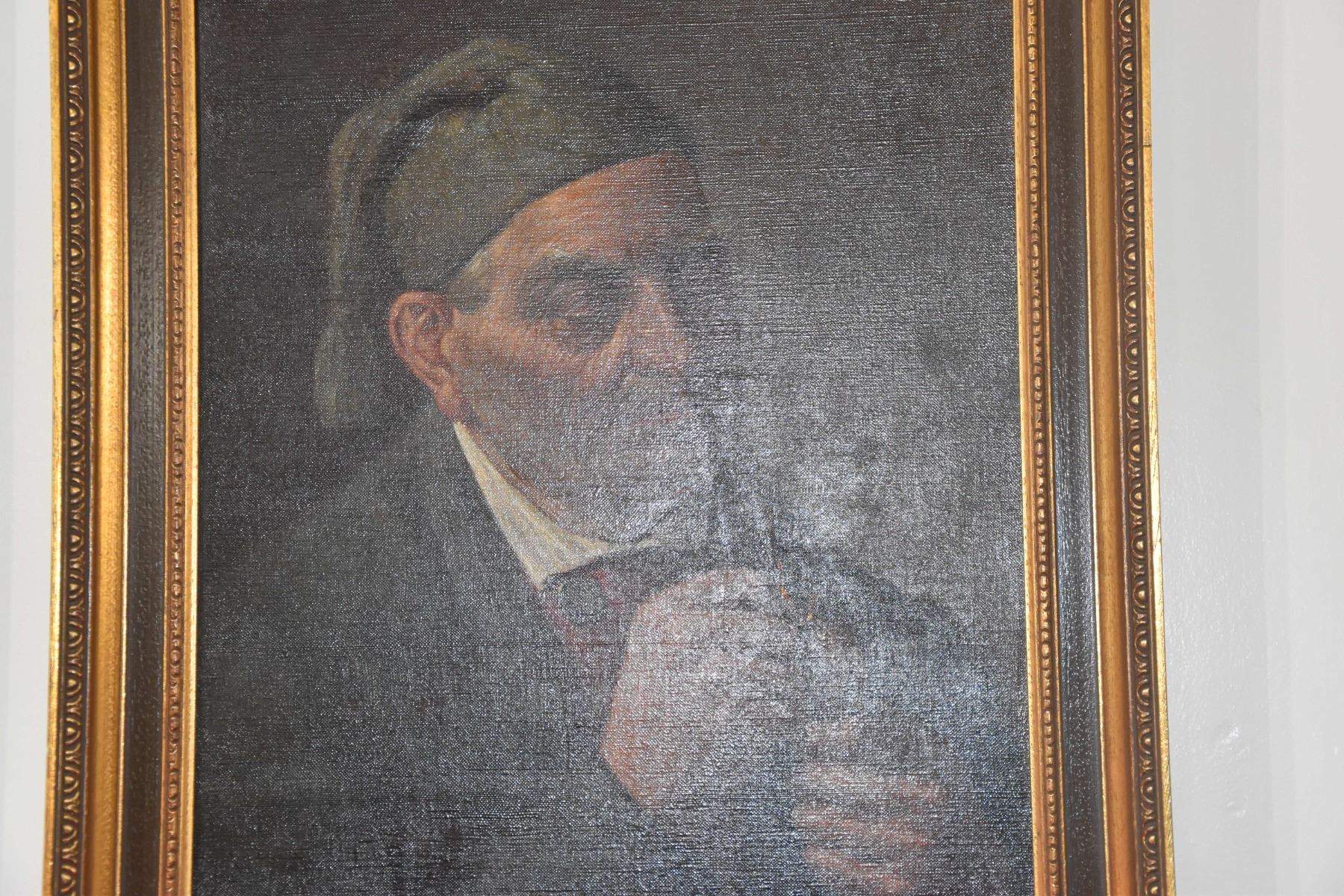 HAND PAINTED CANVAS OF OLD MAN W/PIPE; SIGNED K. HUB (21" X 25")