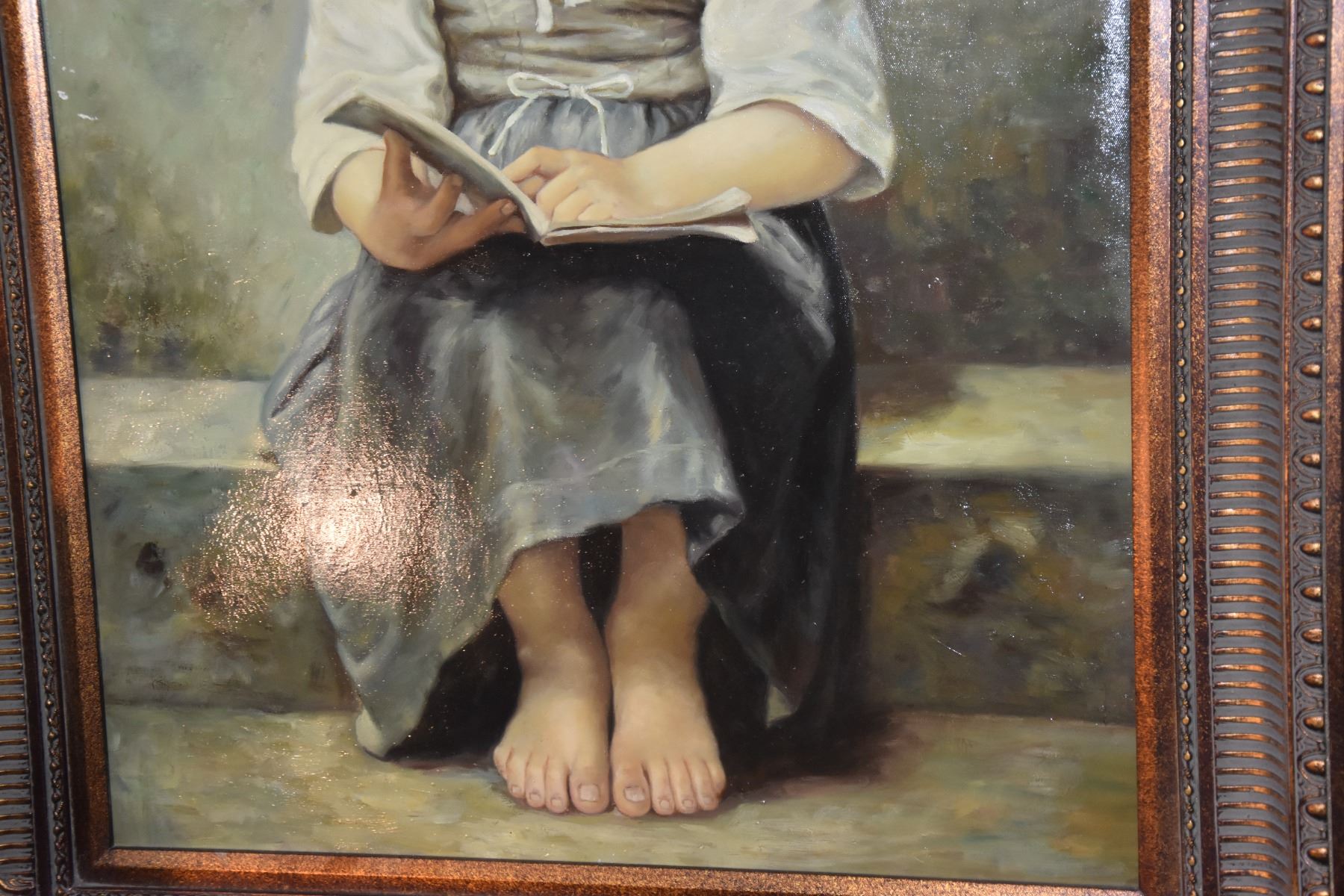 HAND PAINTED CANVAS OF "THE DIFFICULT LESSON" AFTER WILLIAM-ADOLPHE BOUGUEREAU 1890 (32" X 44")
