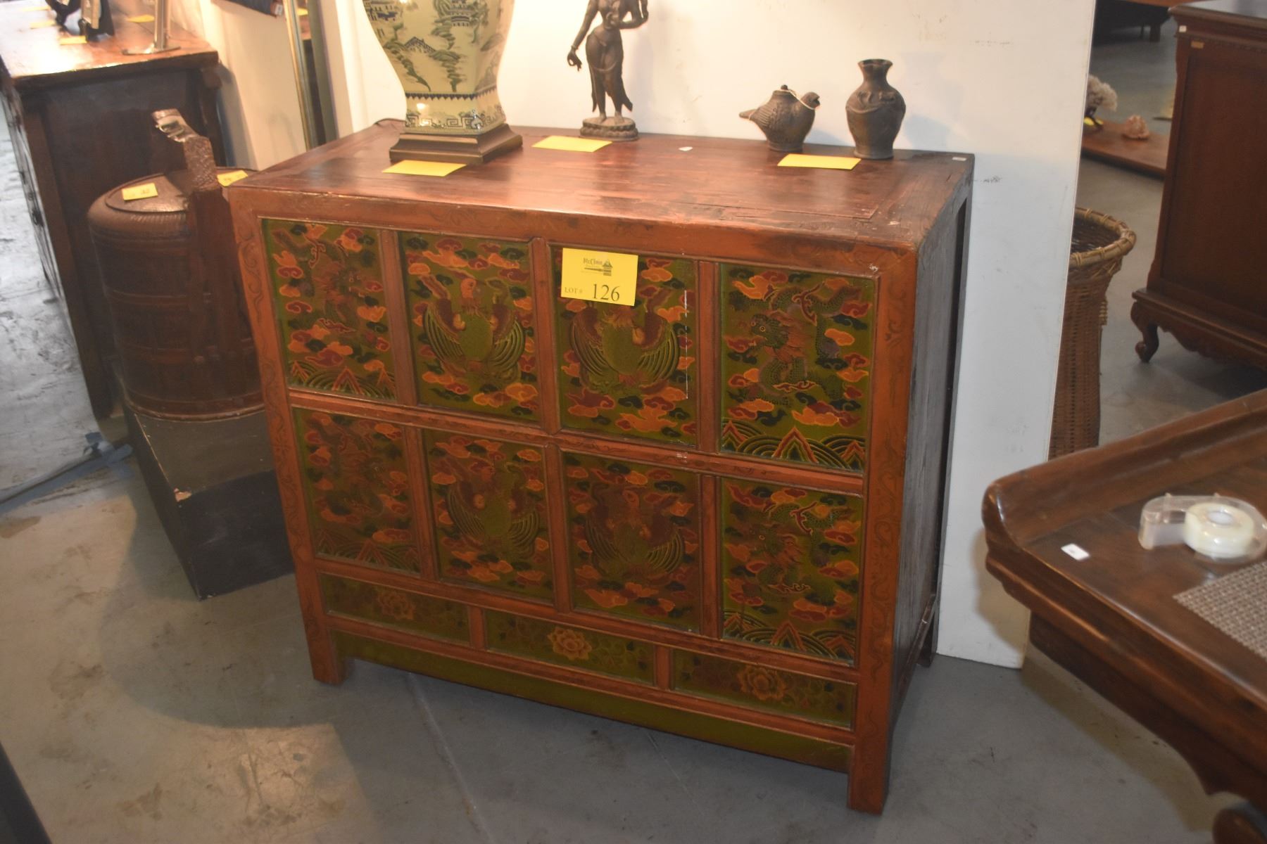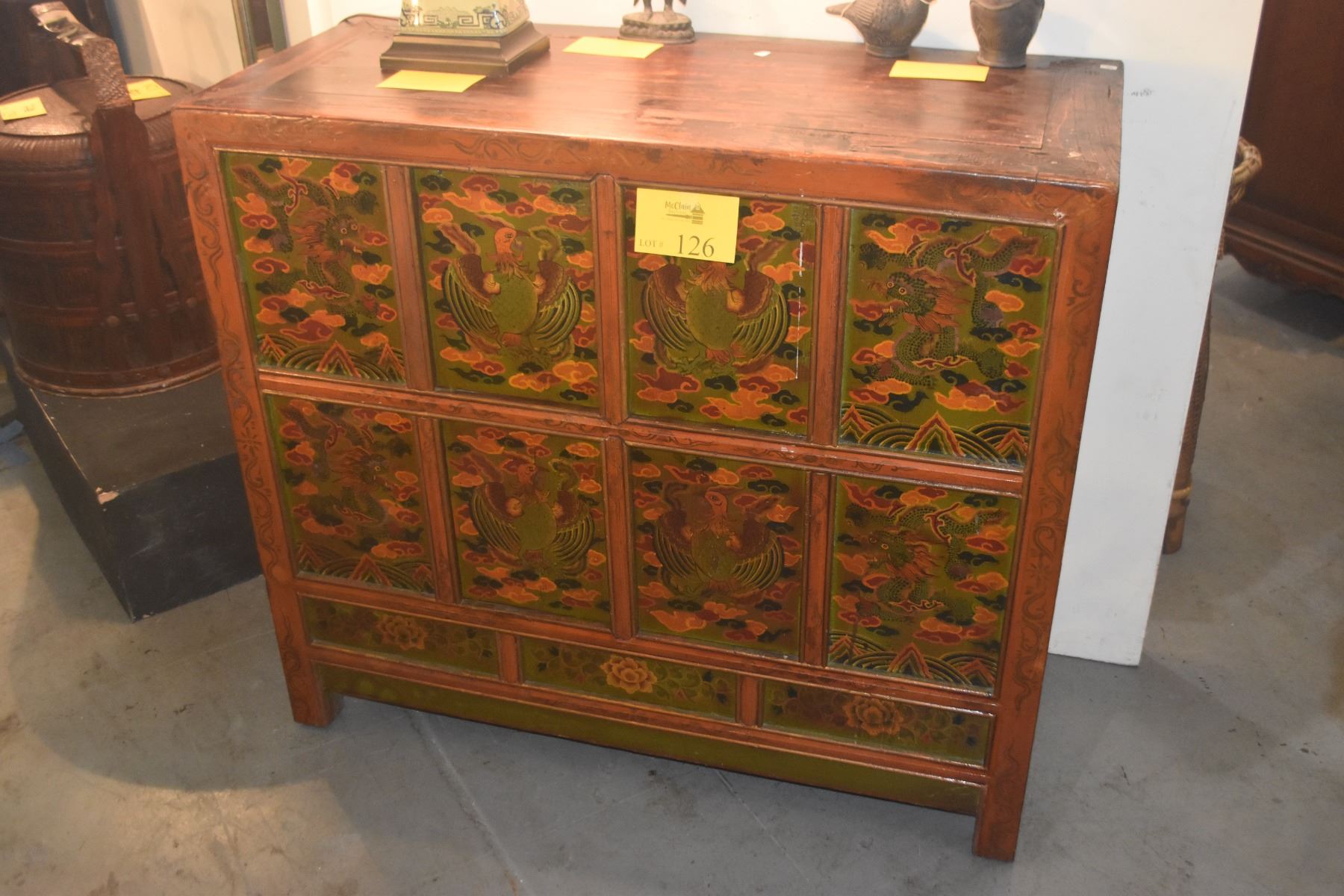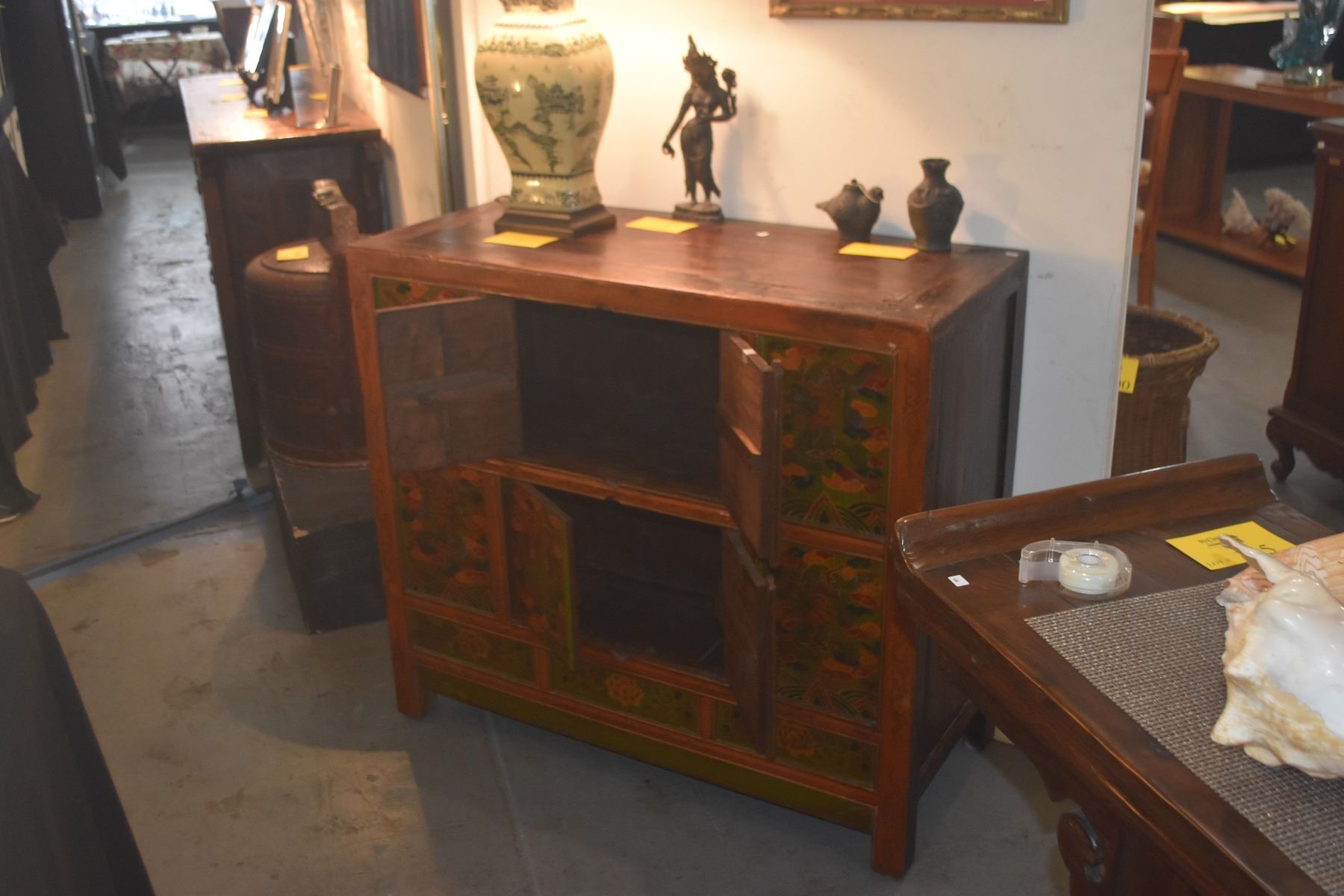 HAND PAINTED TIBETAN STORAGE CABINET (40 1/2" X 17 1/2" X 36")
