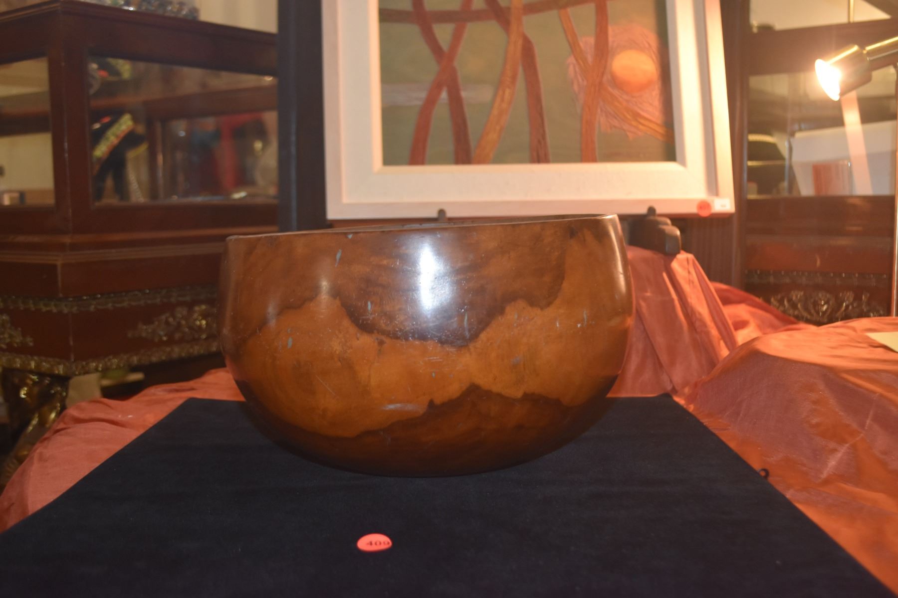 HANDMADE KOU UMEKE W/KEPA KEPA & POHO REPAIRS, SHELLAC FINISH (7 1/4" X 11 5/8")