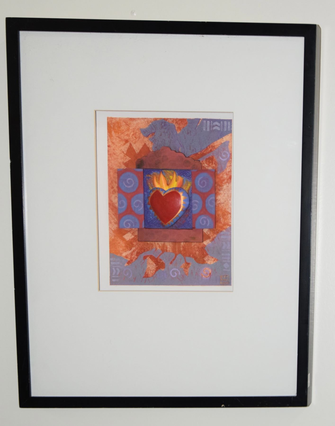 HARINANI ORME MIXED MEDIA, "HEART IN A BOX"; SIGNED (FRAMED 16 3/4" X 20 3/4")
