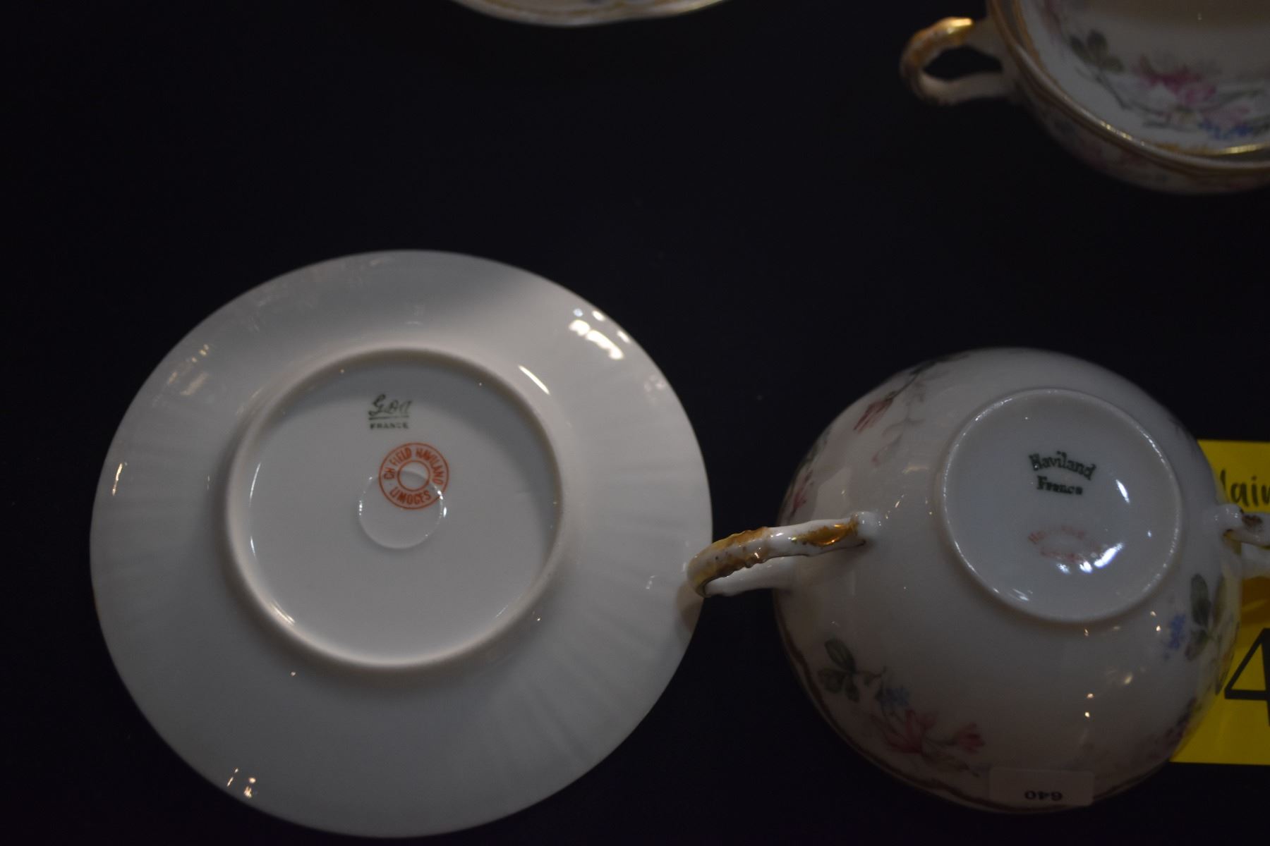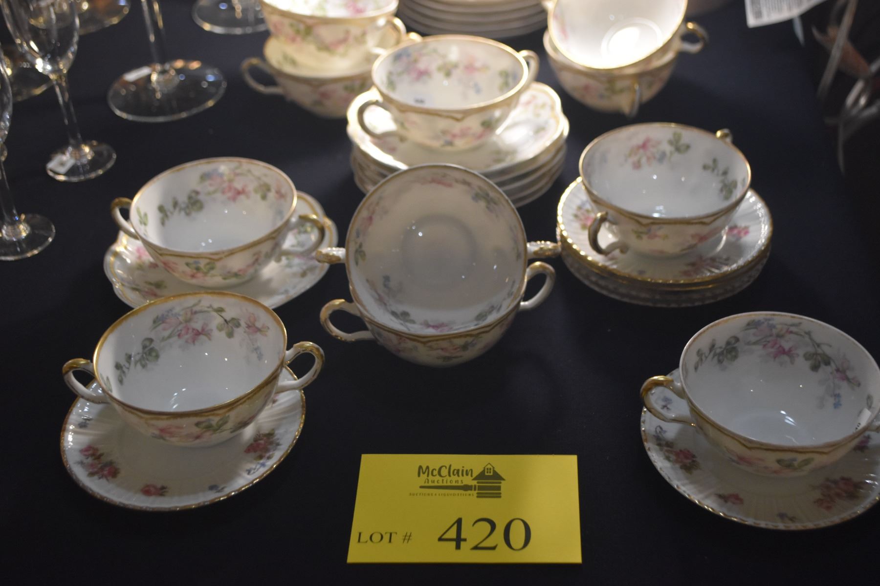 HAVILAND LIMOGES VINTAGE DOUBLE HANDLED BOULLION TEA CUPS & SAUCERS (30 PCS)