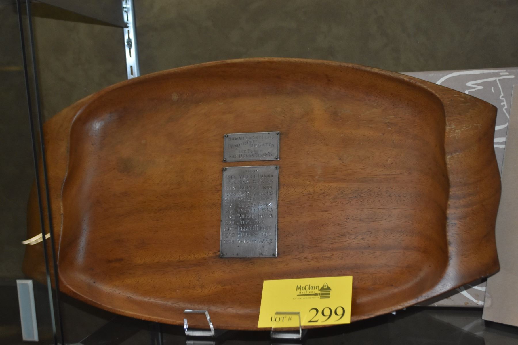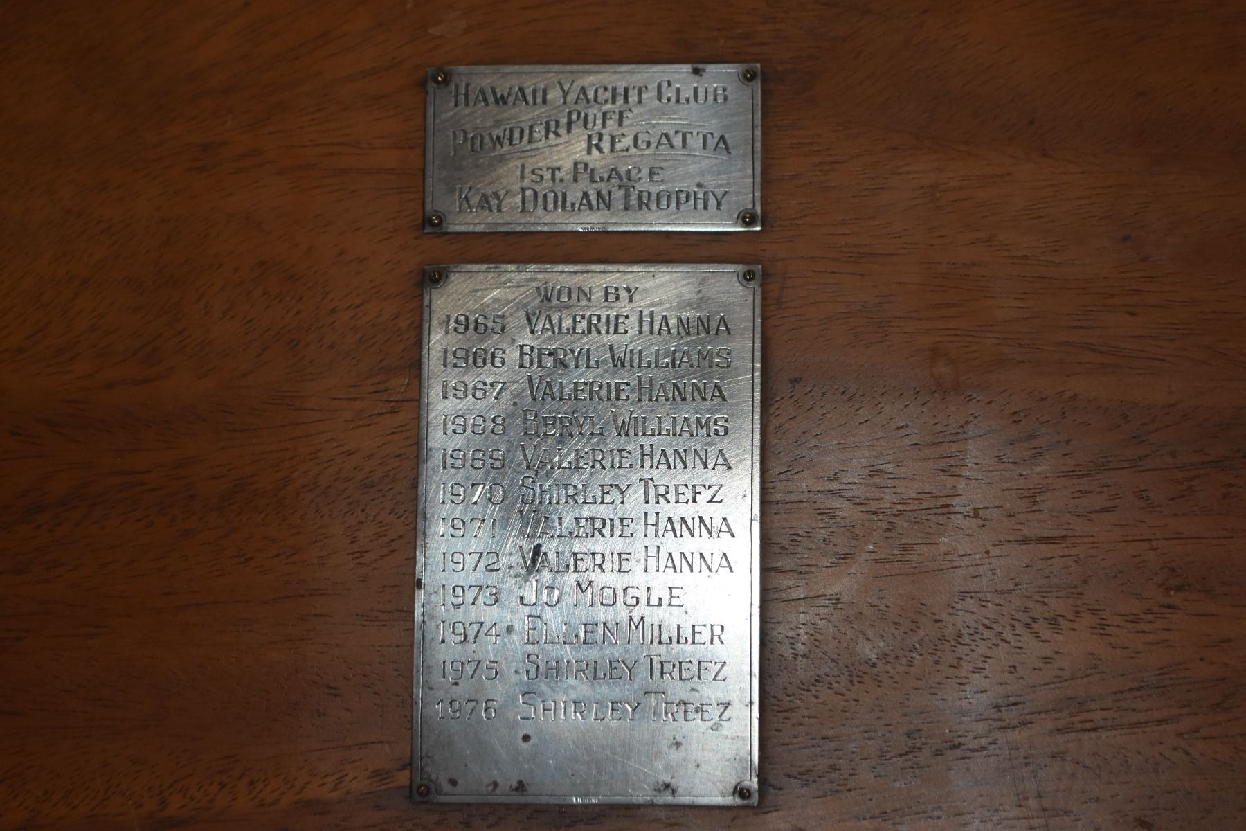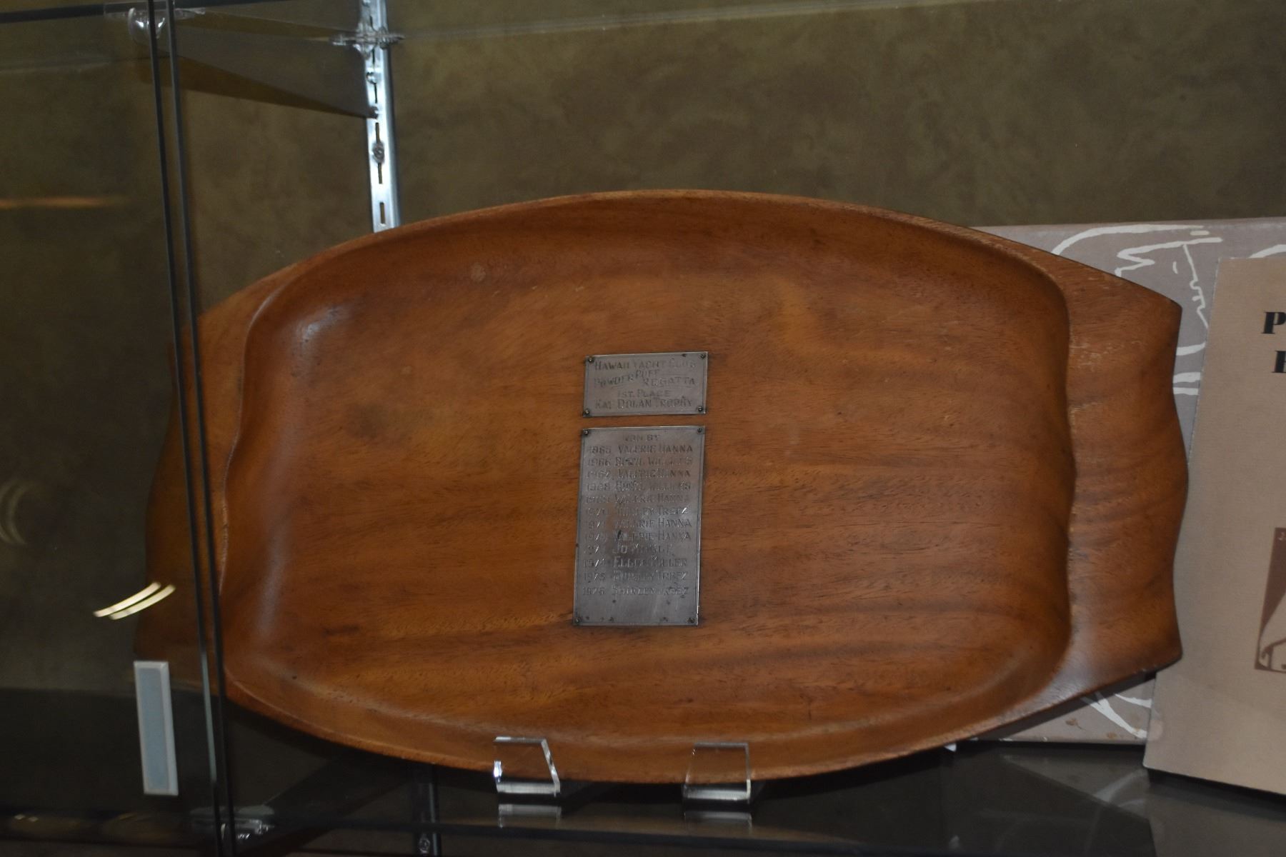 HAWAII YACHT CLUB POWDER PUFF REGATTA TROPHY TRAY W/STERLING SILVER PLAQUES (24" X 13 1/4")
