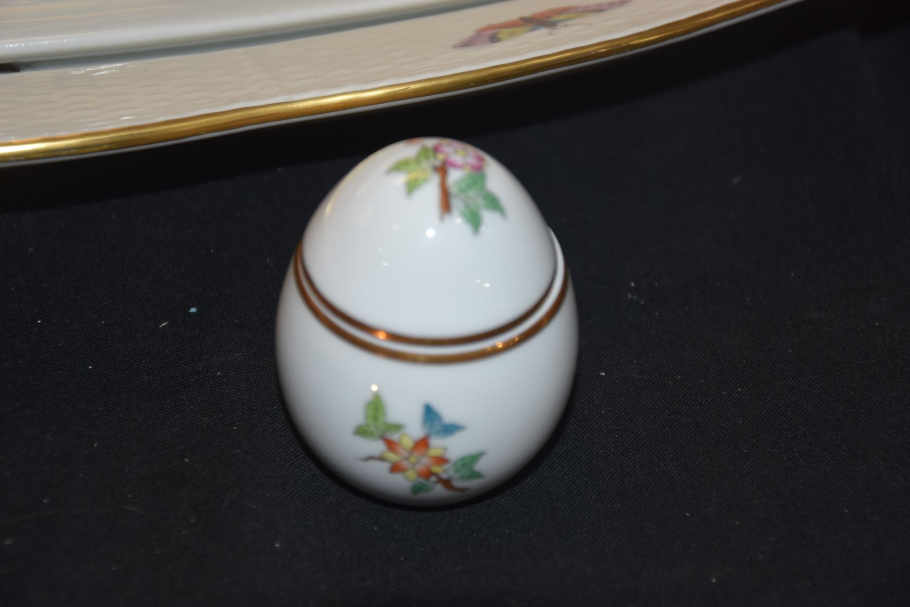 HEREND PORCELAIN COVERED DISH & COVERED EGG (2 PCS)