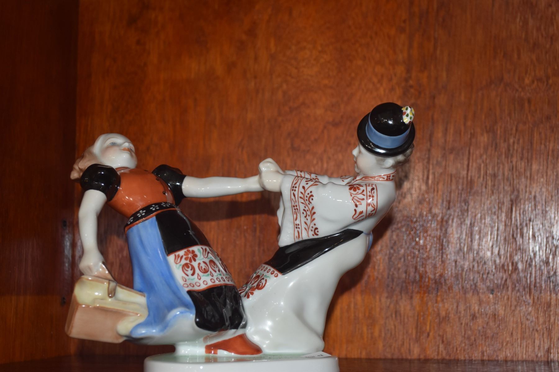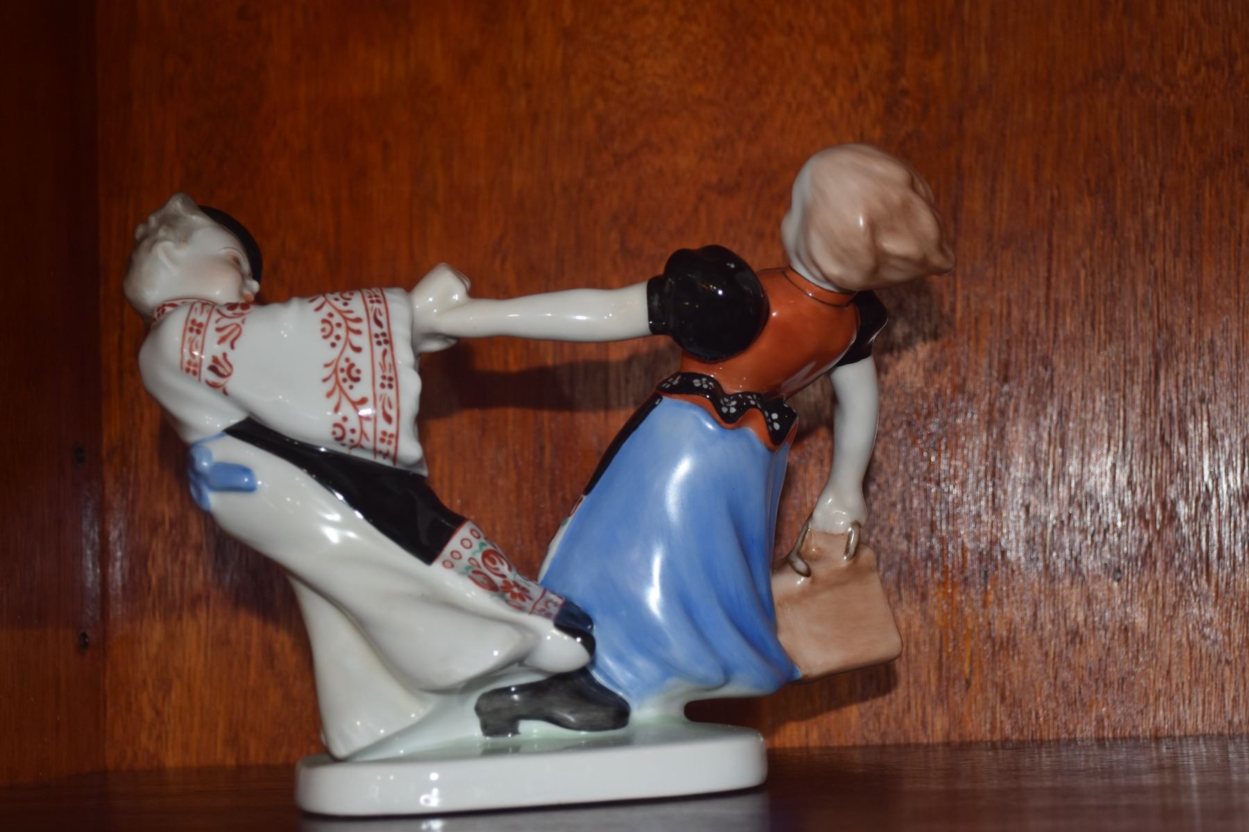 HEREND PORCELAIN FIGURINE, 2 CHILDREN DANCING IN TRADITIONAL HUNGARIAN FOLK DRESS