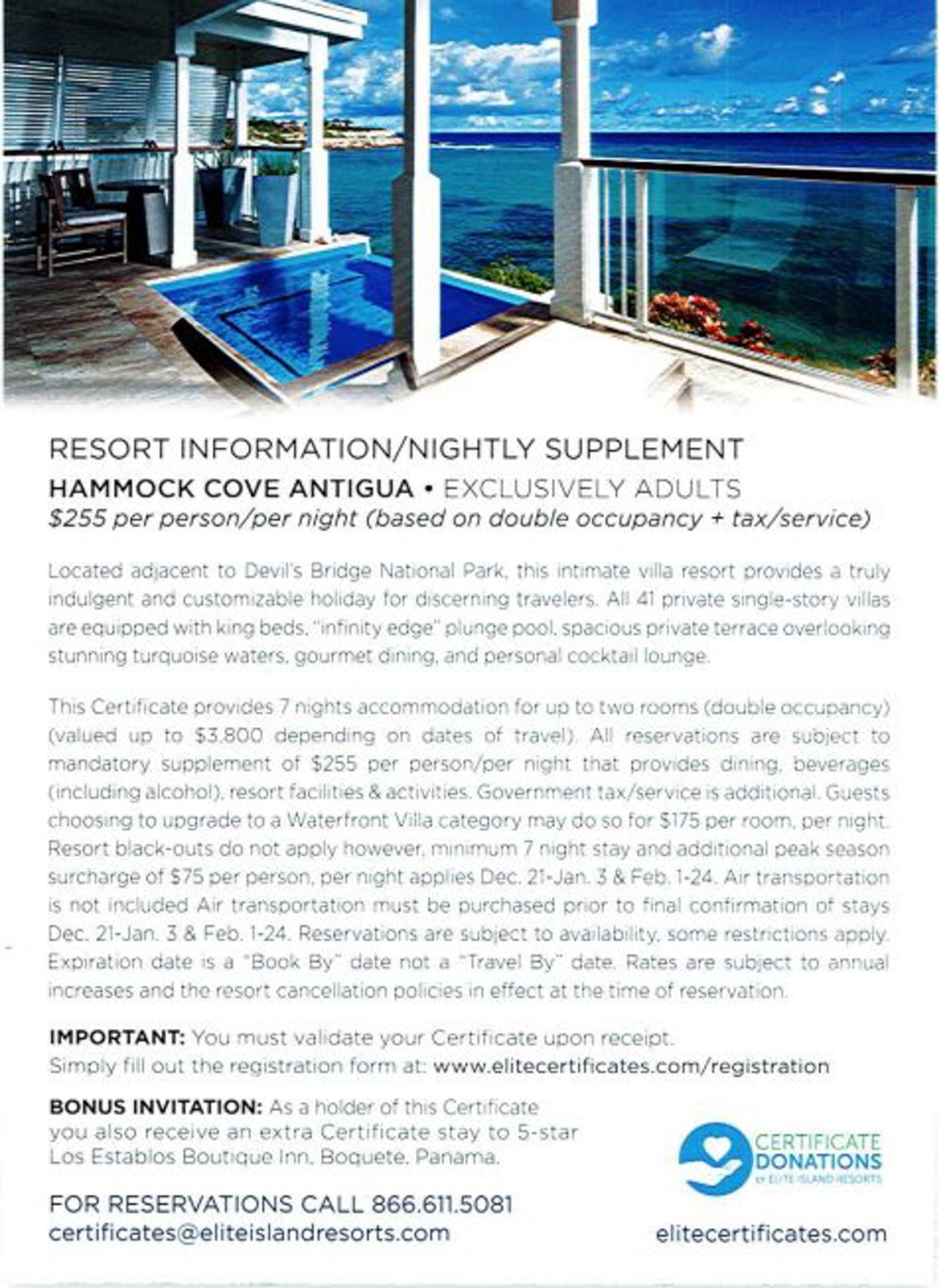7 nights of Luxury Waterview Villa accommodation, for up to two villas double occupancy at the following Caribbean waterfront resort Hammock Cove Antigua