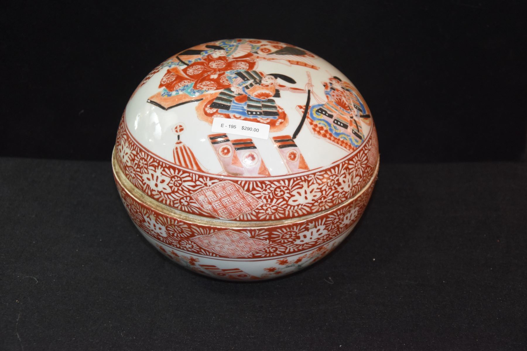 IMARI COVERED BOWL, "SAMURAI" MOTIF