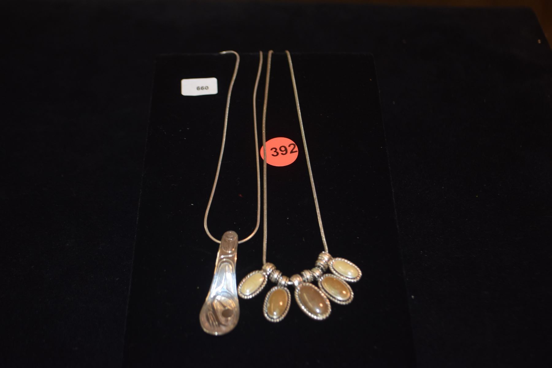 INUIT POTLACH SPOON PENDANT ON STERLING SILVER CHAIN & FASHION NECKLACE (2 PCS)