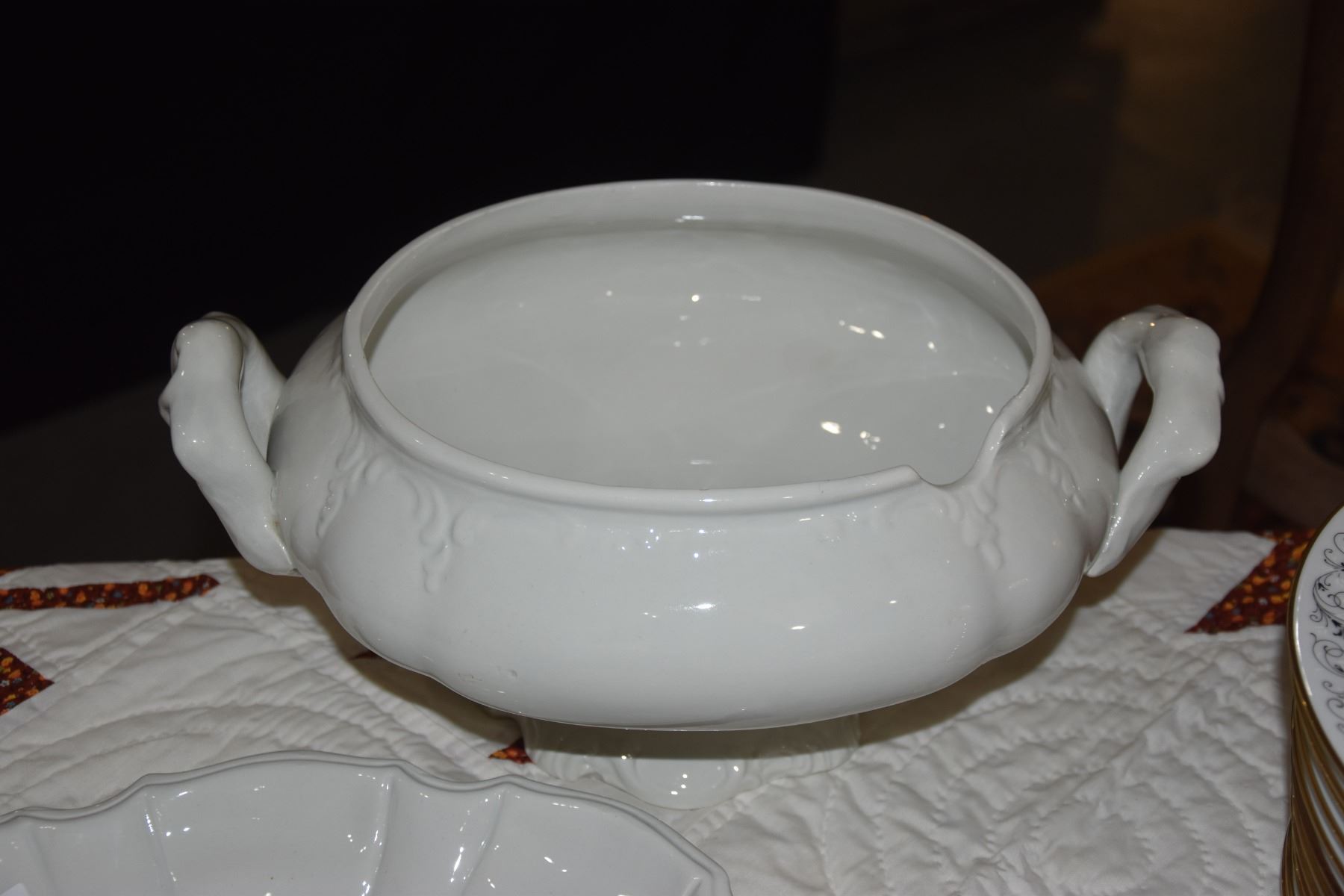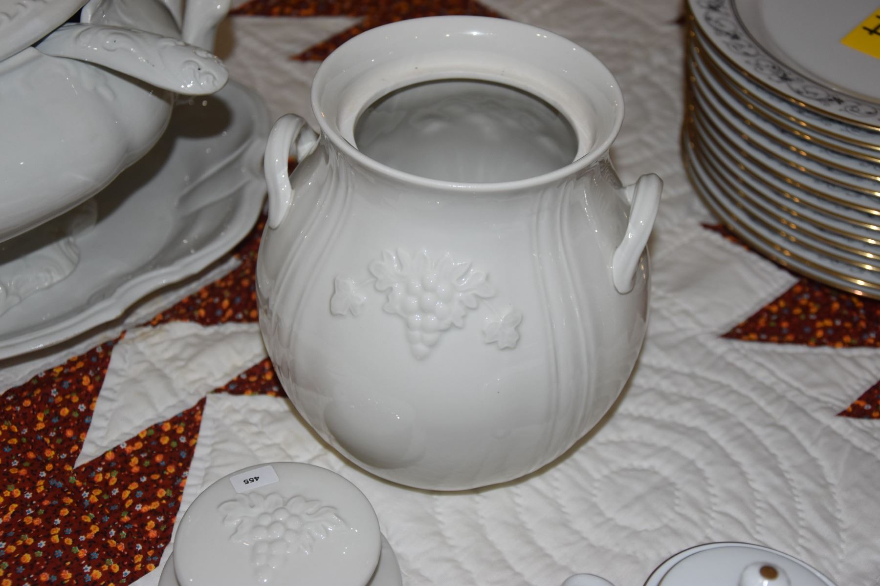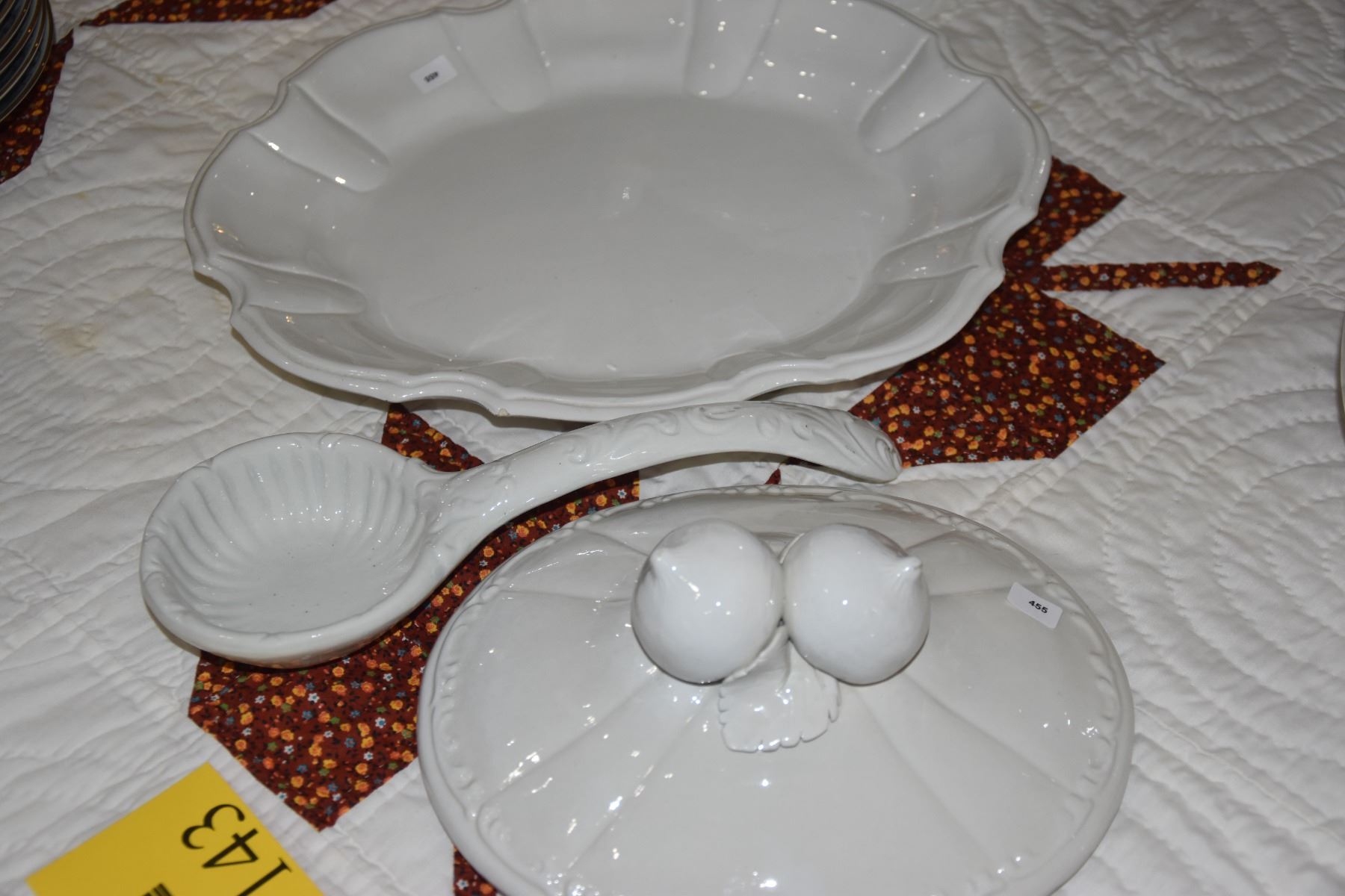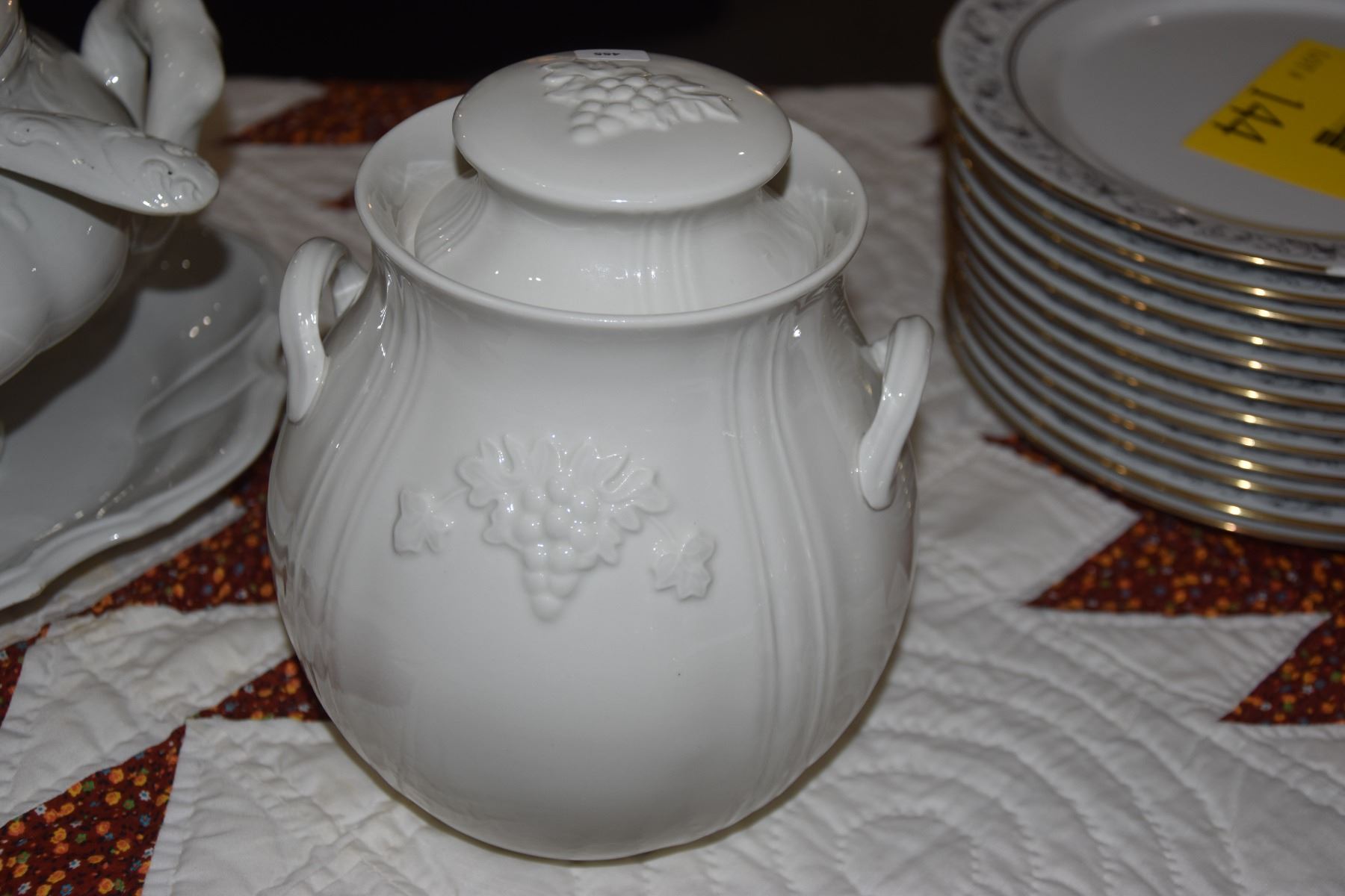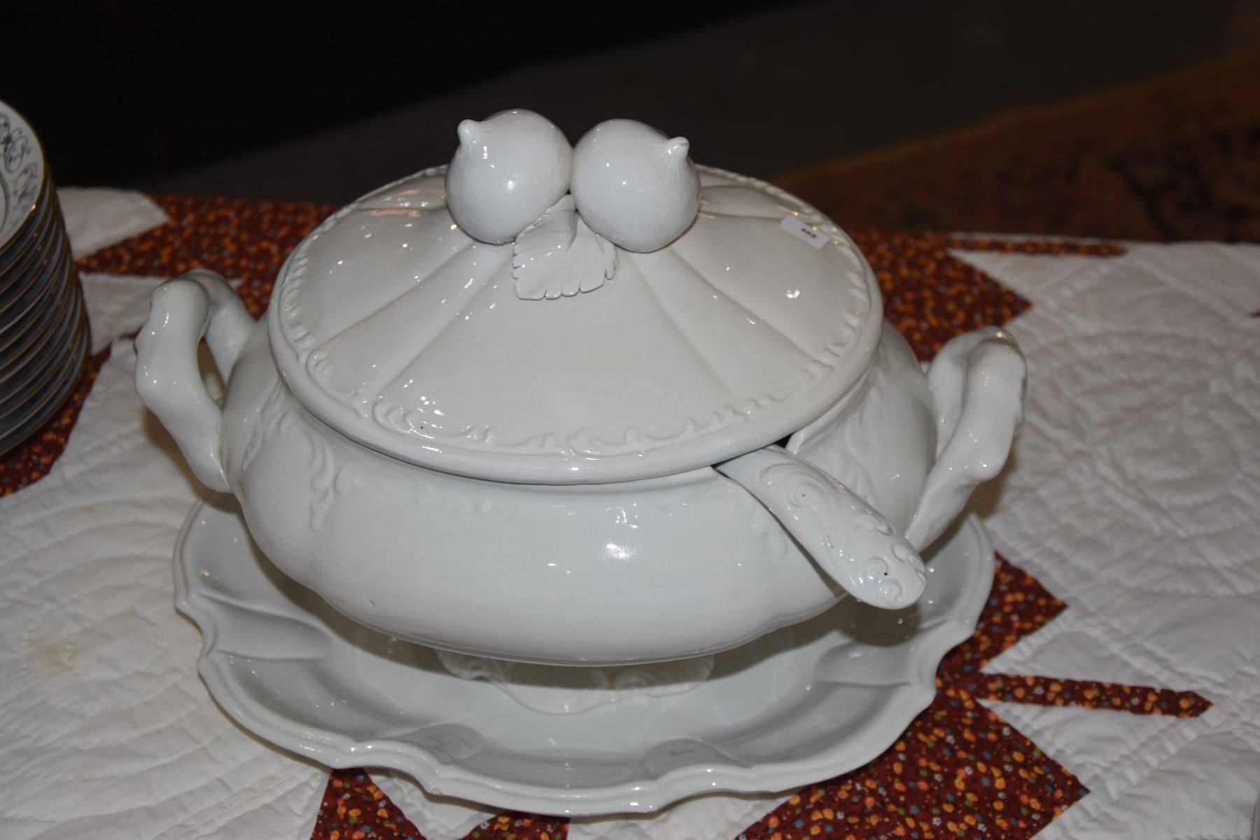 ITALIAN MAJOLICA TUREEN W/PLATTER, LADLE & COVERED JAR W/GRAPE MOTIF (4 PCS)