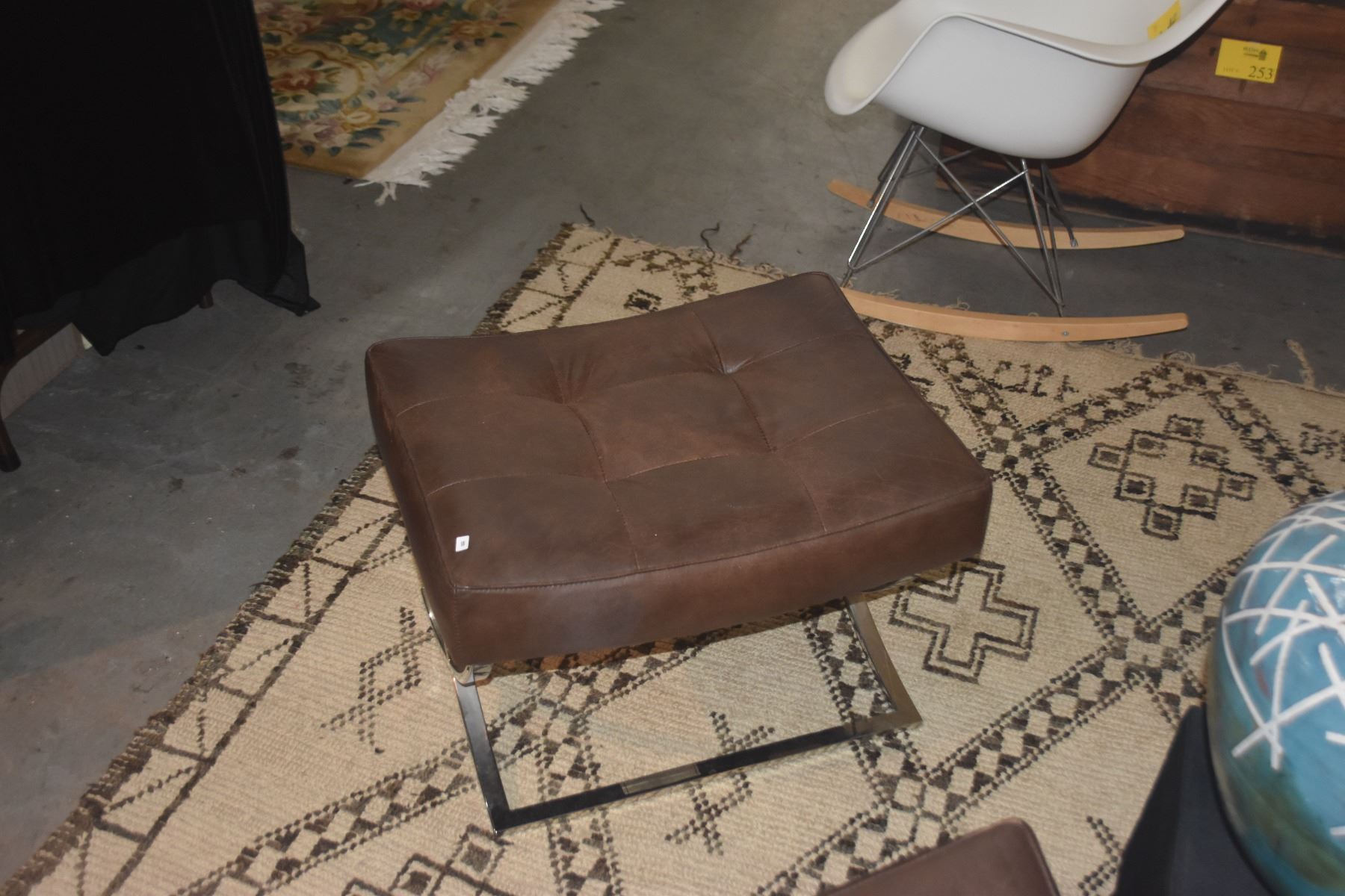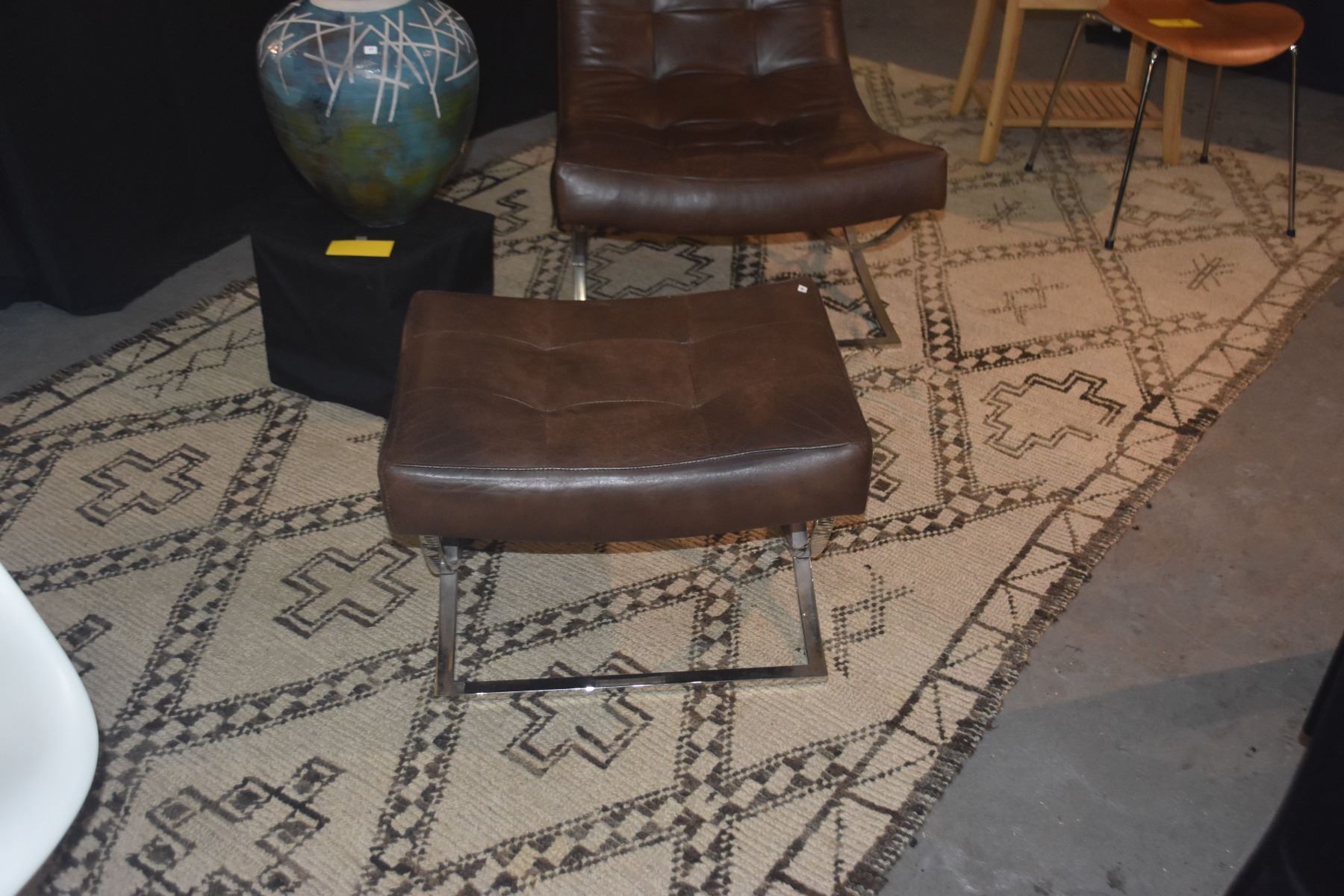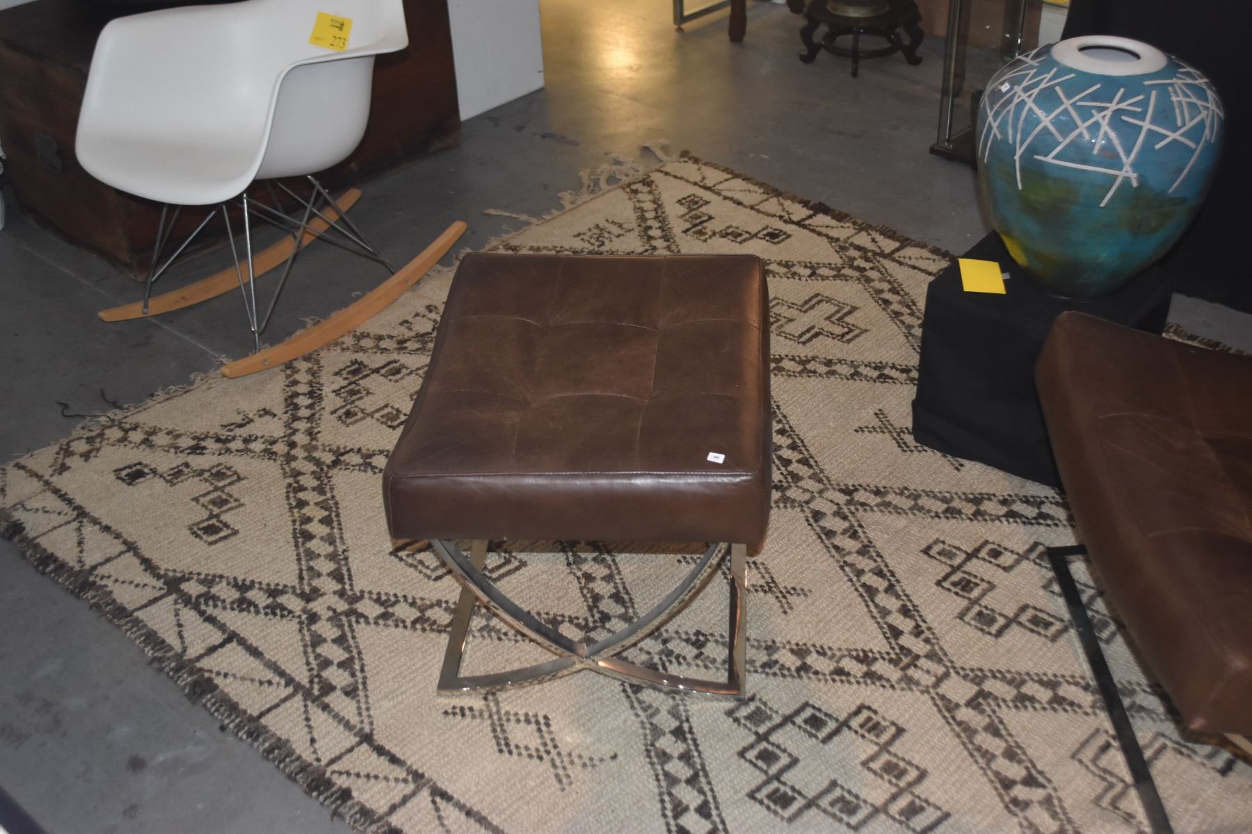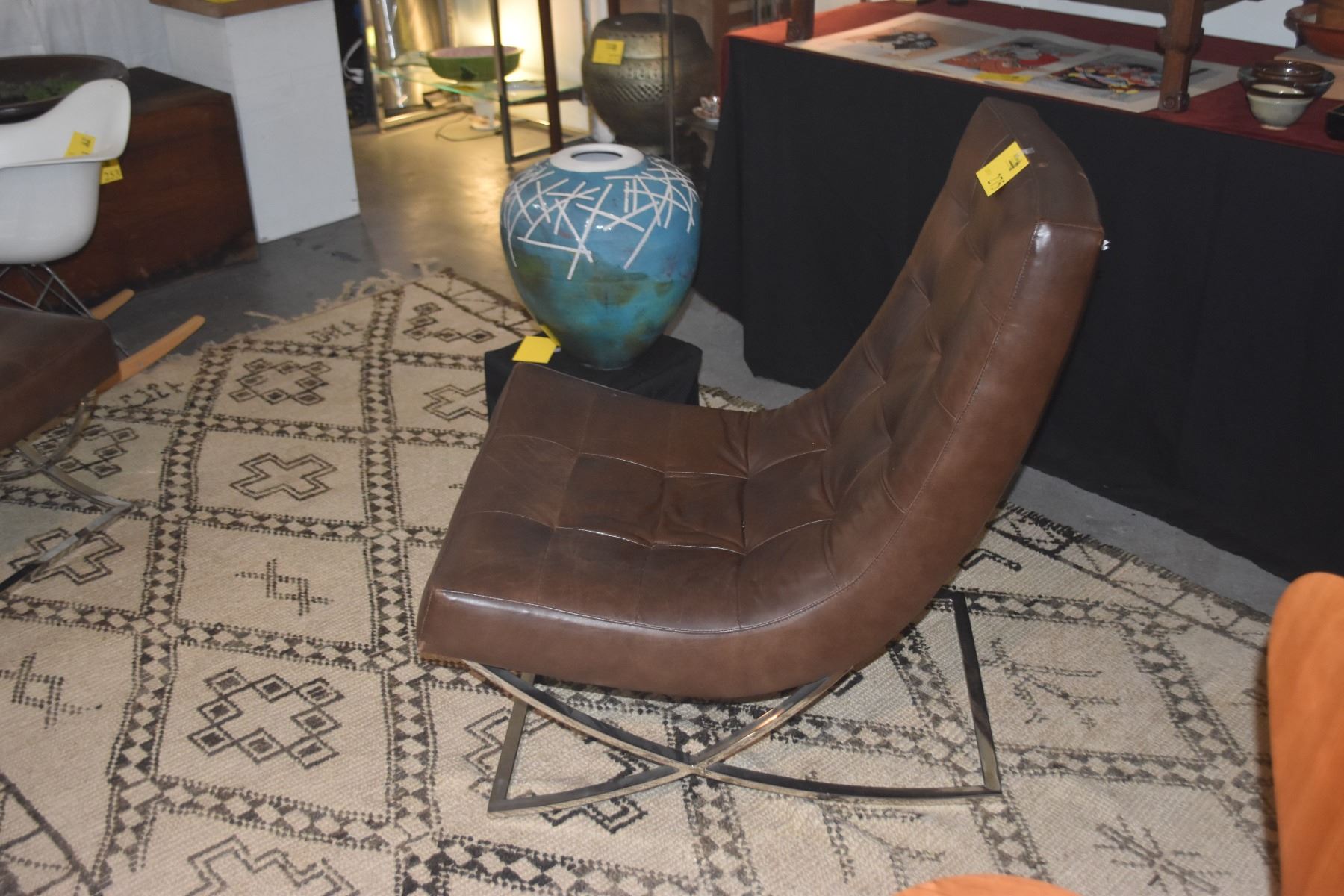 JAMES CHAIR & OTTOMAN, TOFFEE ITALIAN DISTRESSED LEATHER & POLISHED NICKLE FRAMES (WILLIAMS SONOMA)
