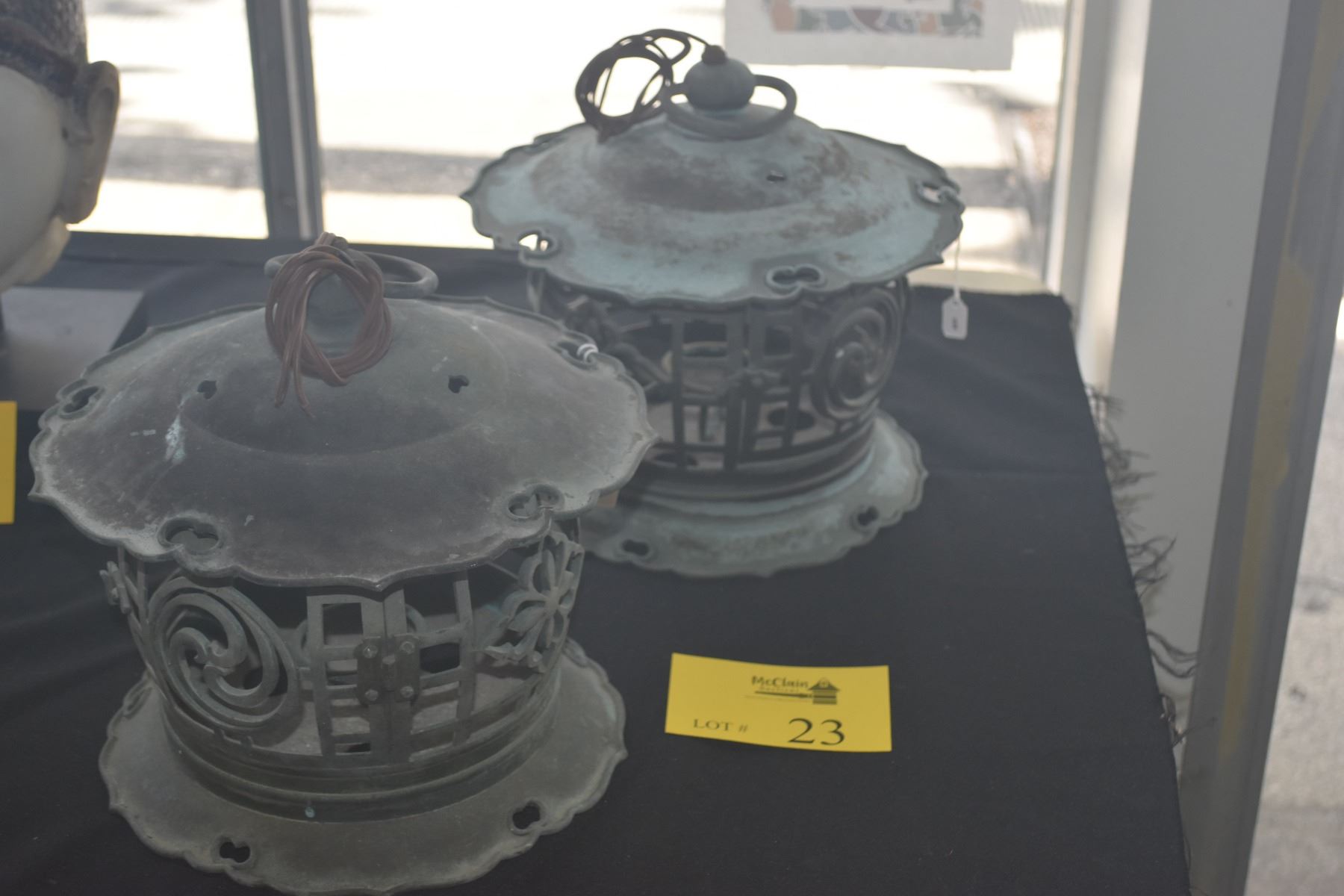 JAPANESE BRONZED BRASS HANGING LANTERS (ELECTRIFIED) (9 1/2")