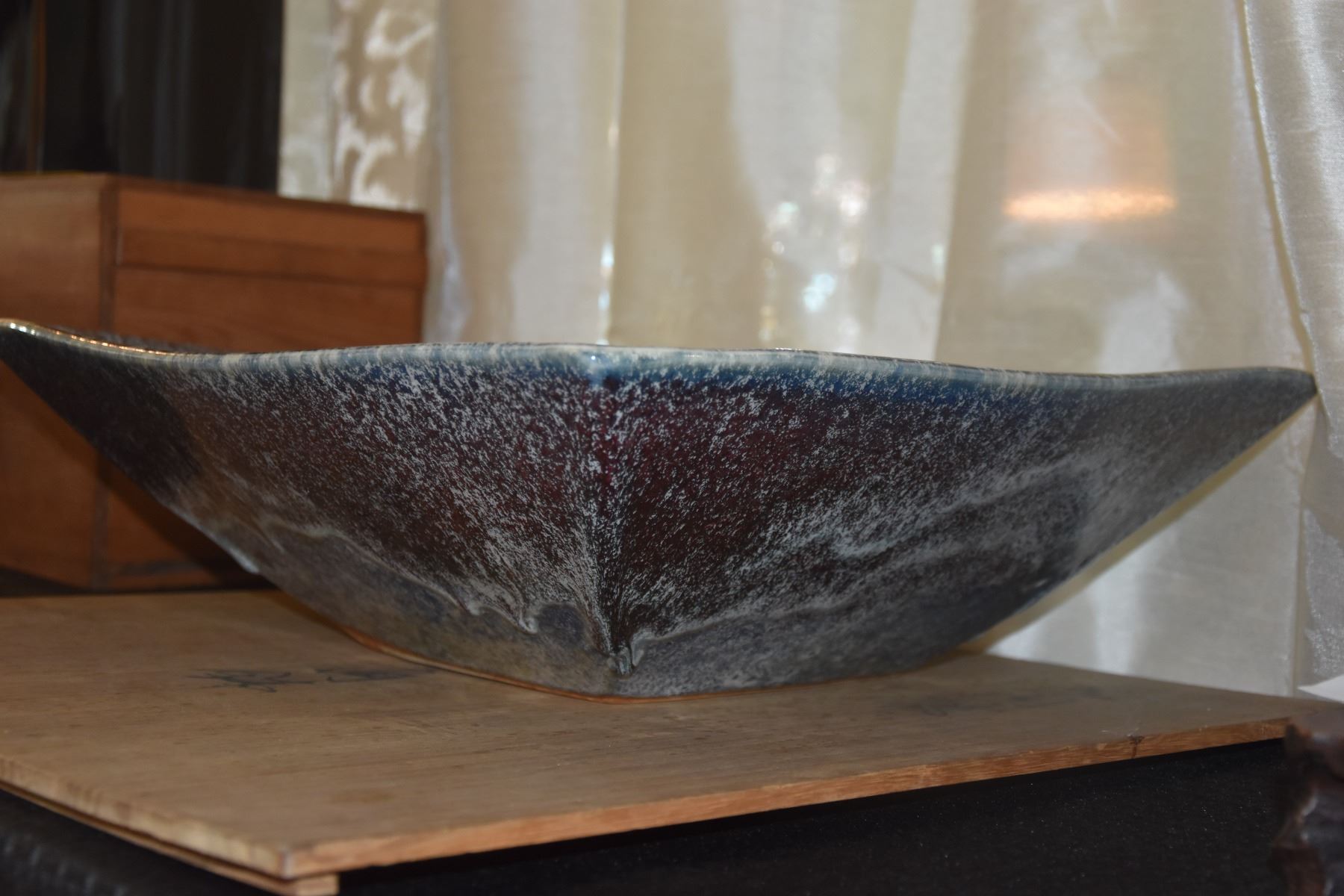 JAPANESE CERAMIC BOWL W/BLUE GLAZE W/SIGNED BOX
