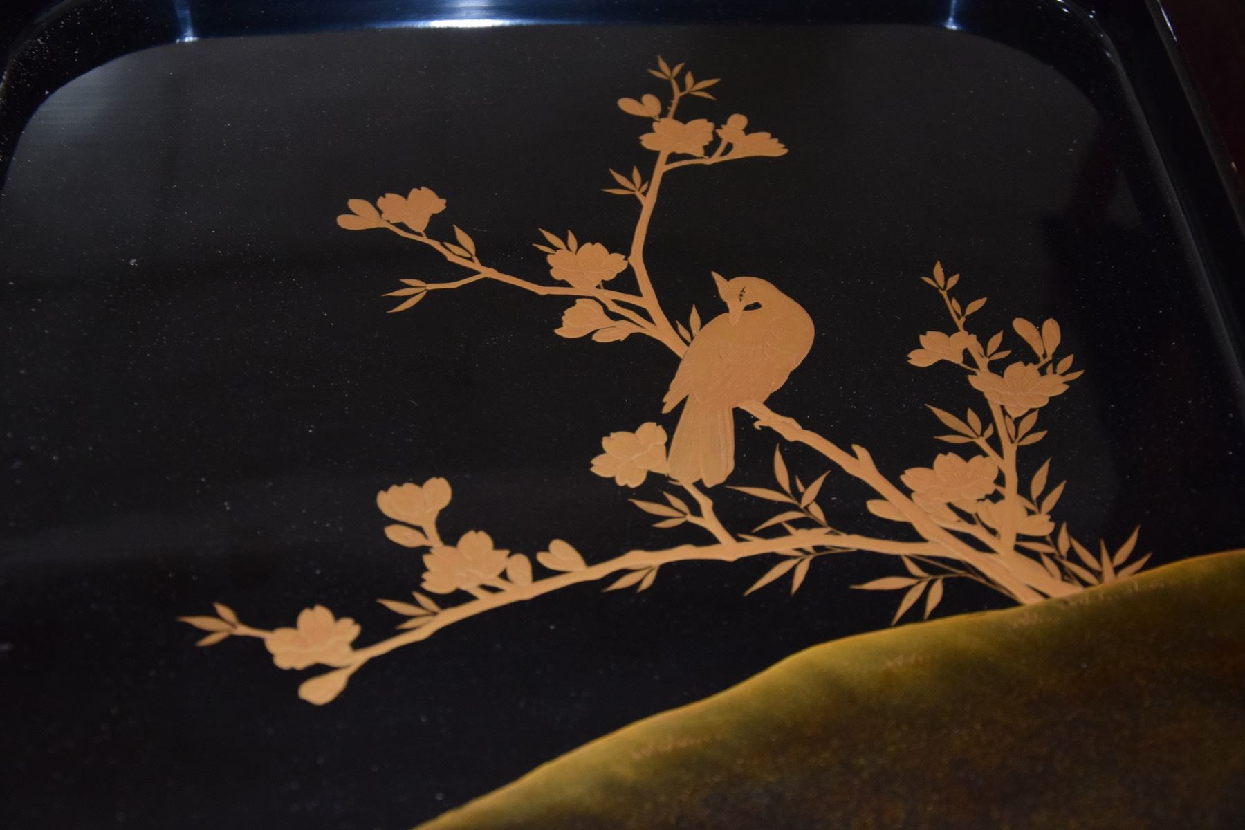 JAPANESE LACQUER TRAYS, VARIOUS MAKI-E BIRD MOTIFS (10 PCS)