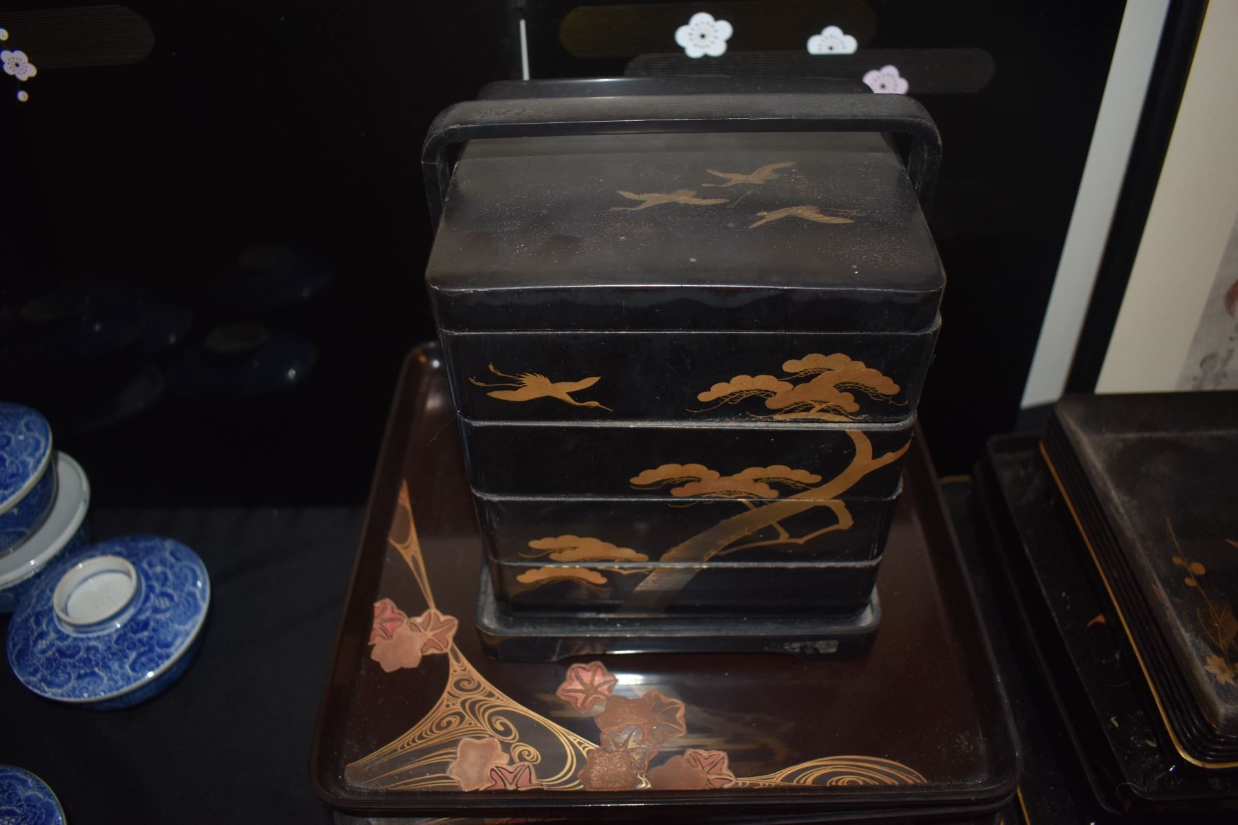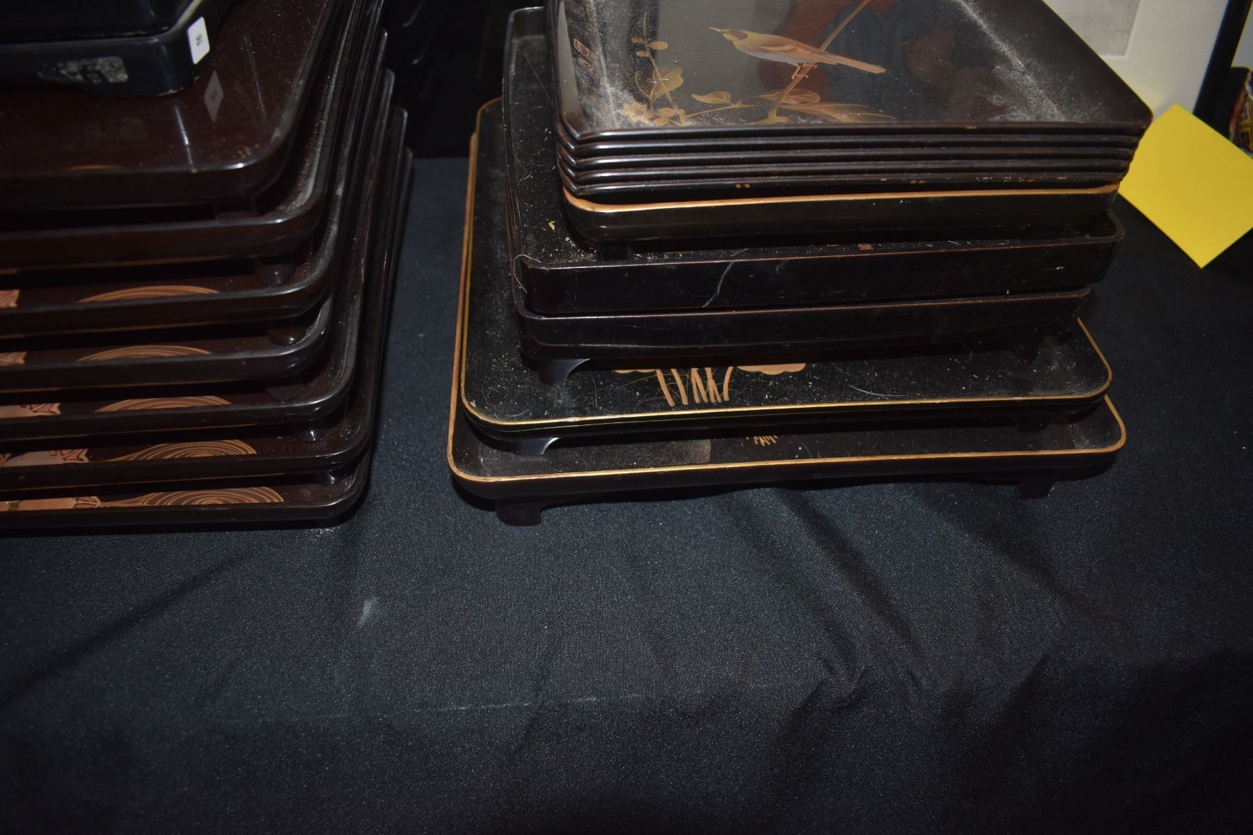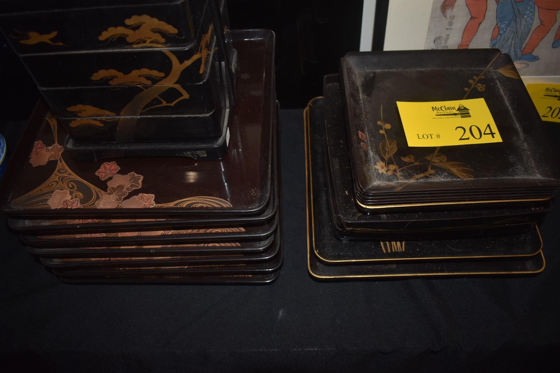 JAPANESE LACQUERED TRAYS & JUBAKO BOX W/GOLD DECORATION (18 PCS)