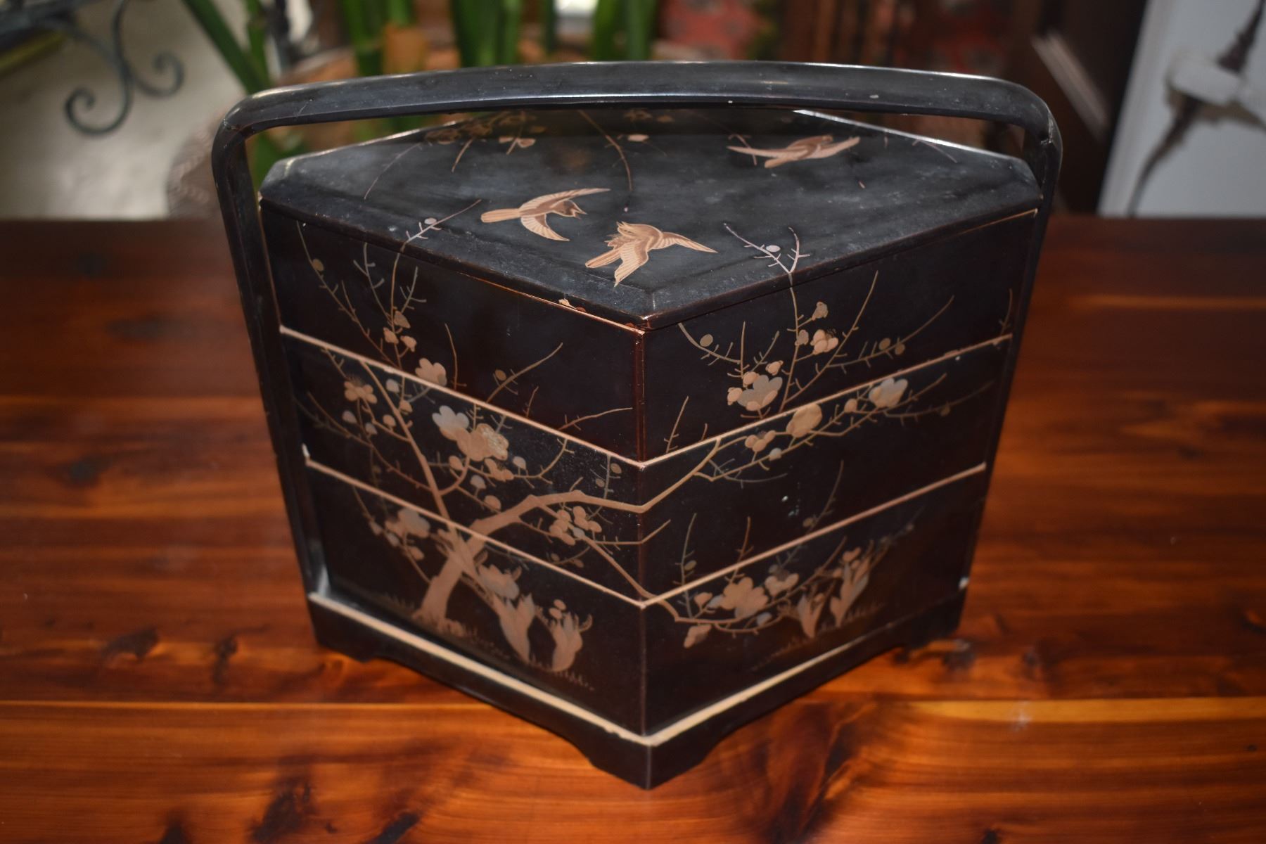 JAPANESE MAKI-E LACQUERED JUBAKO SERVING TRAYS & TEA CADDY (2 PCS)