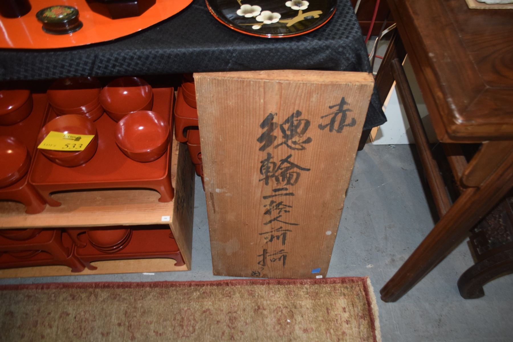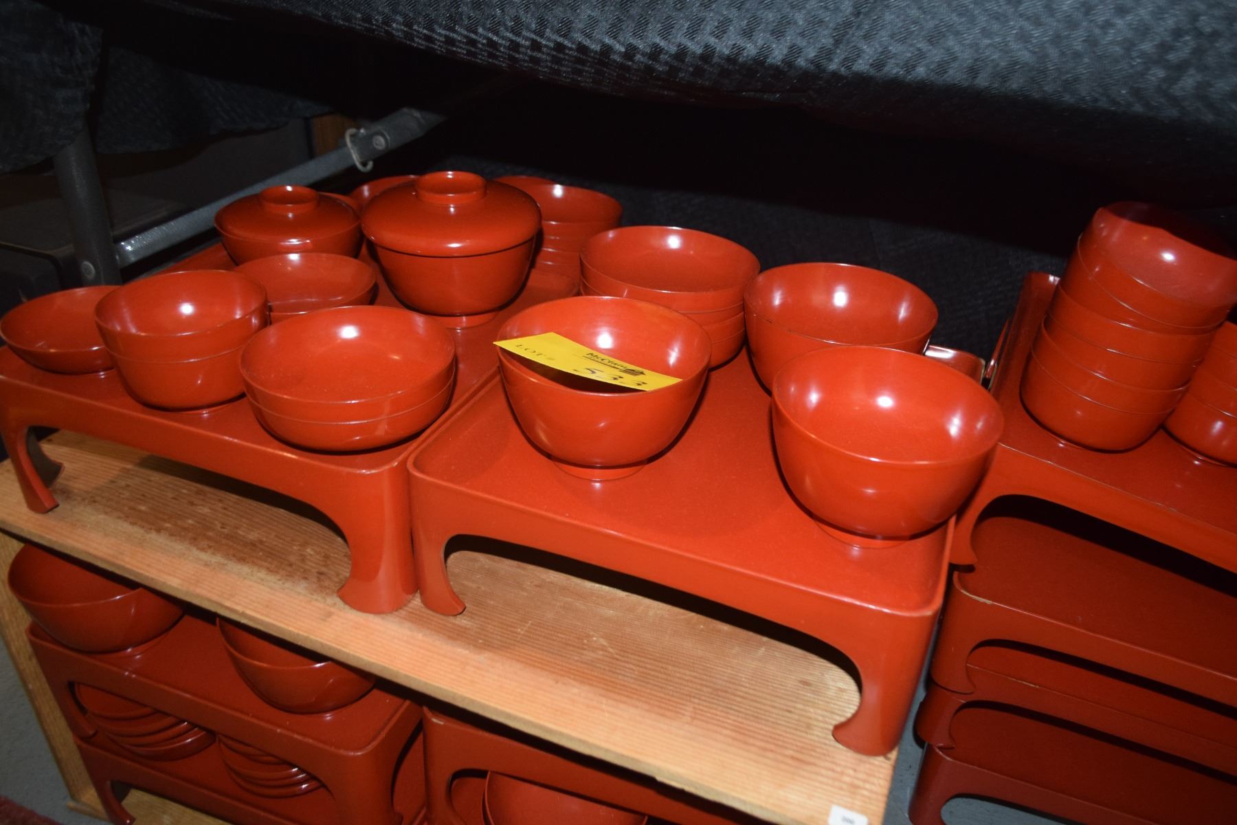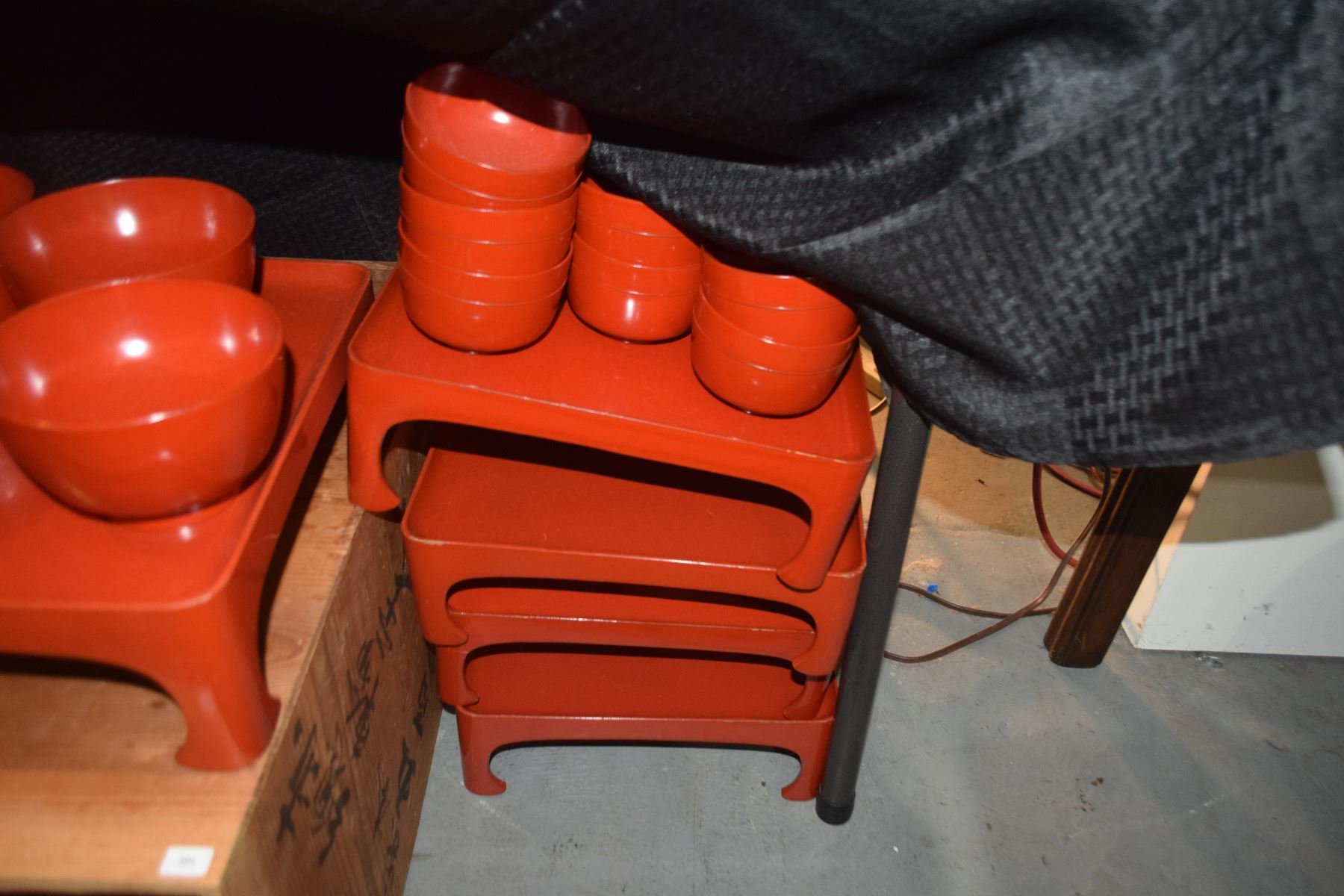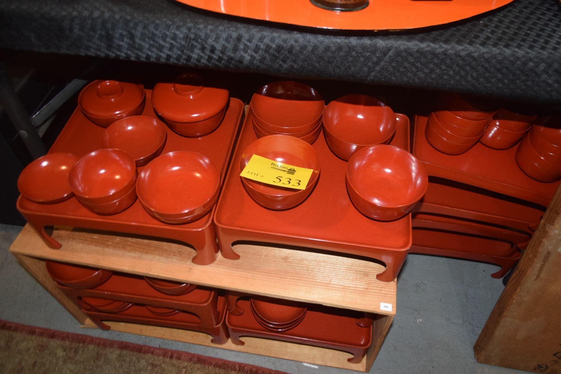 JAPANESE RED LACQUER SERVING SET: BOWLS & TRAY W/ORIGINAL SIGNED STORAGE BOX