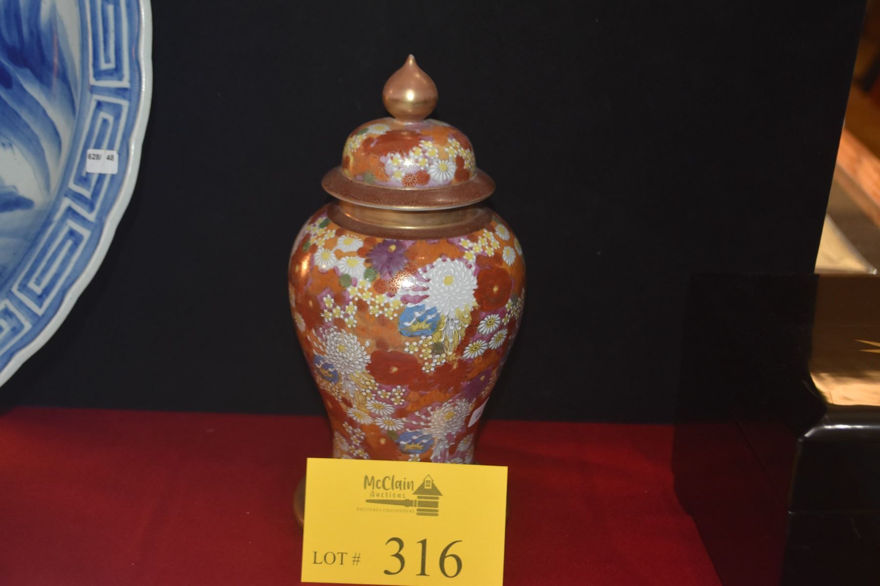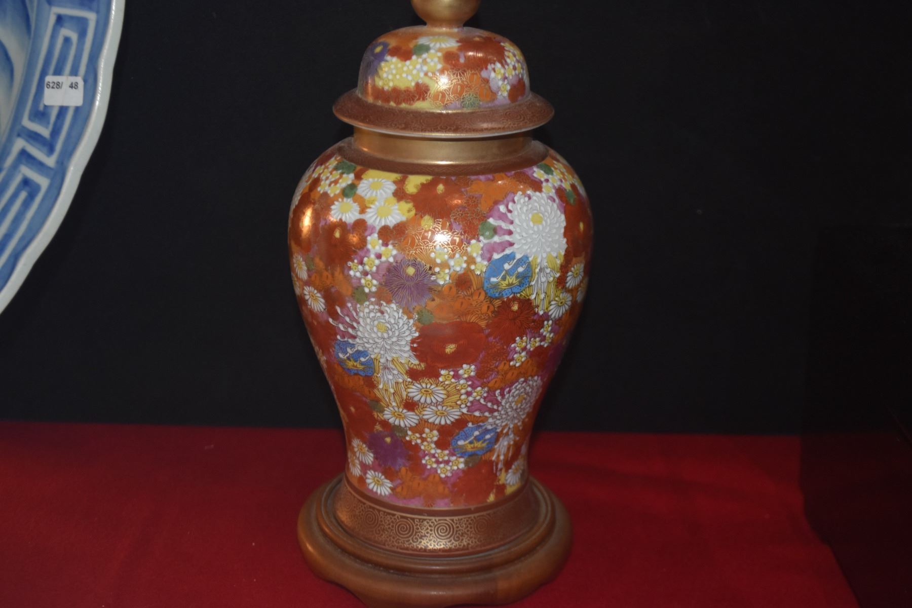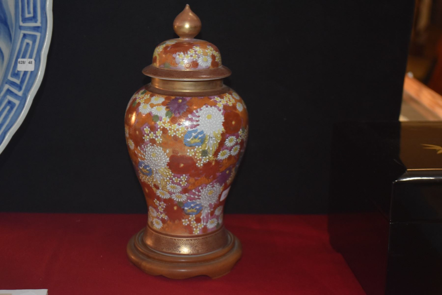 JAPANESE SATSUMA FLORAL PORCELAIN VASE W/STAND