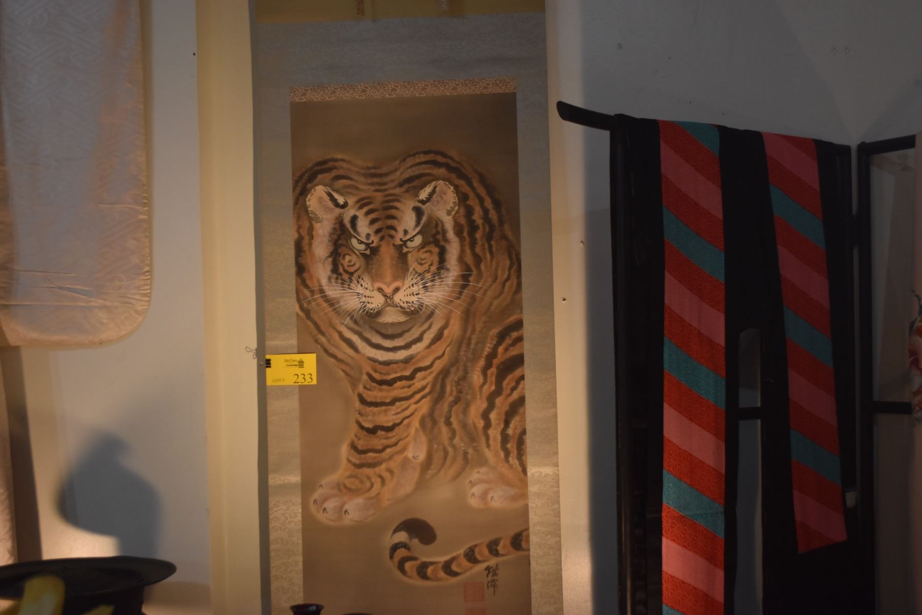 JAPANESE SCROLL PAINTING DEPICTING A TIGER; SIGNED (YEAR OF THE TIGER: 1938, 50, 62, 74, 86, 98, 201