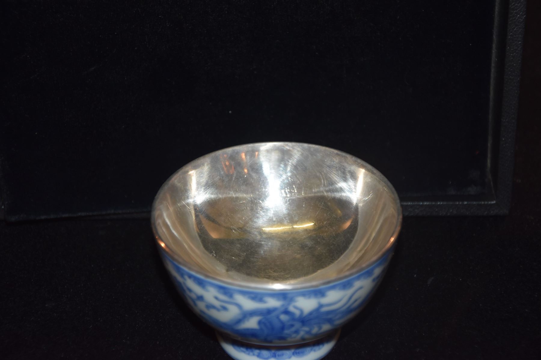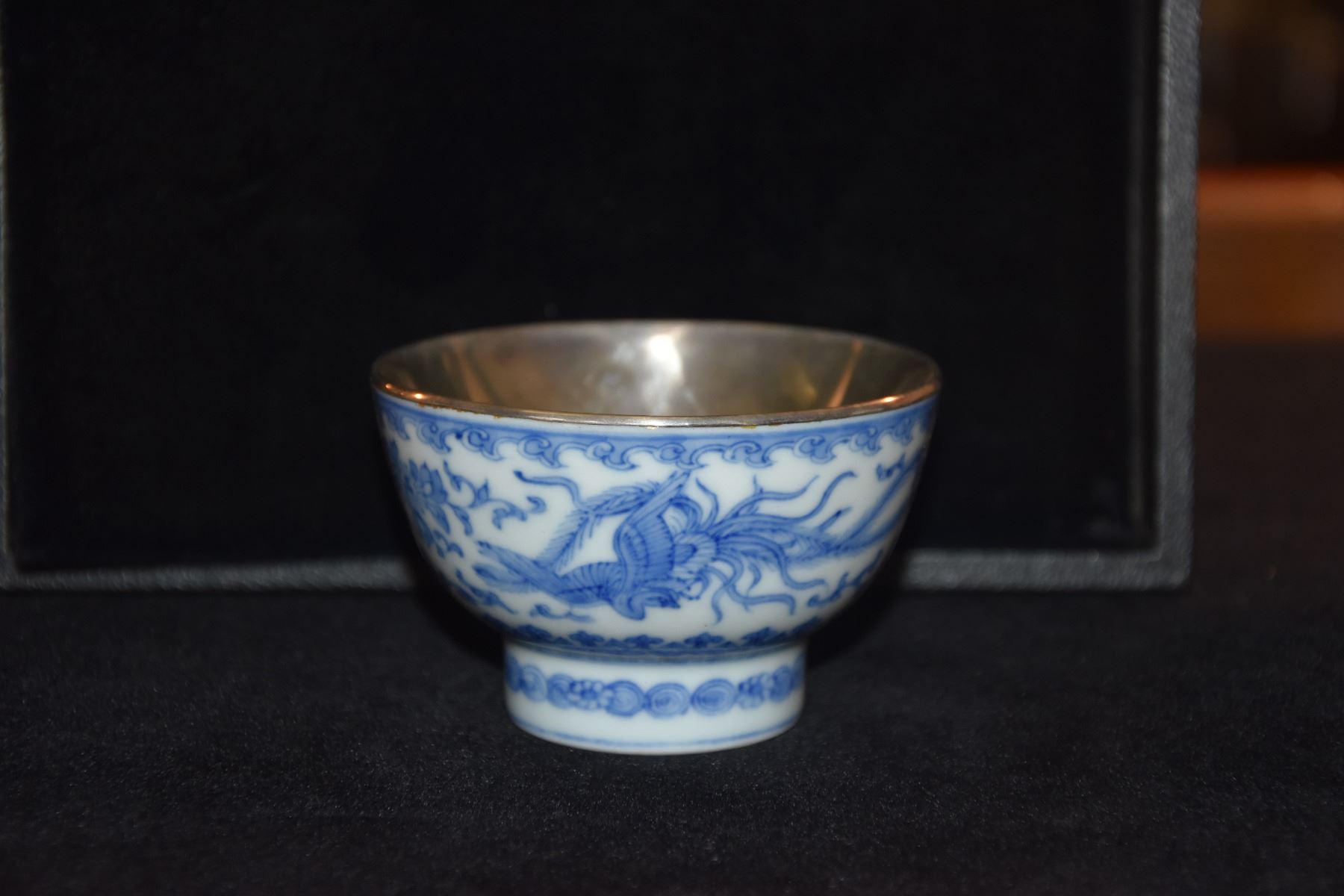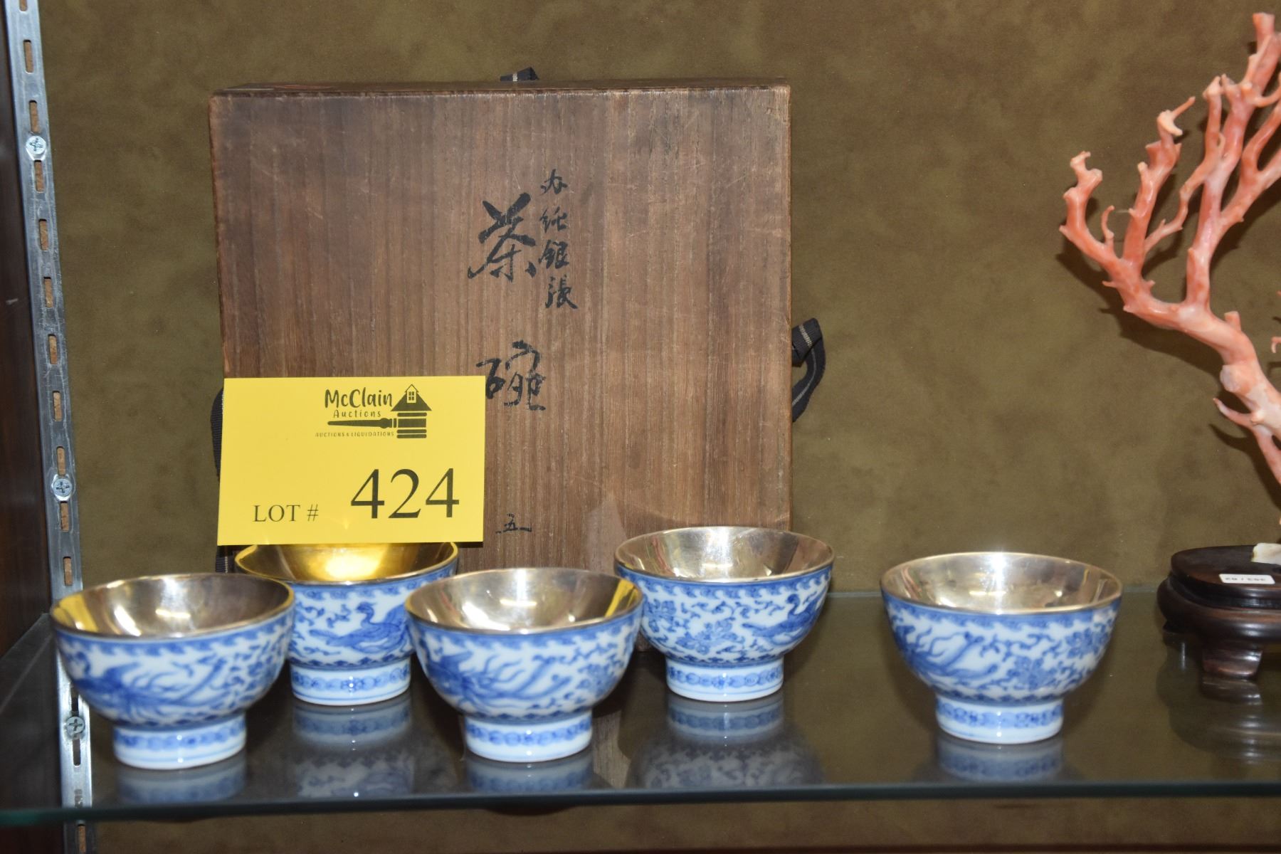 JAPANESE SILVER TEA CUPS W/SIGNED BOX (5 PCS)