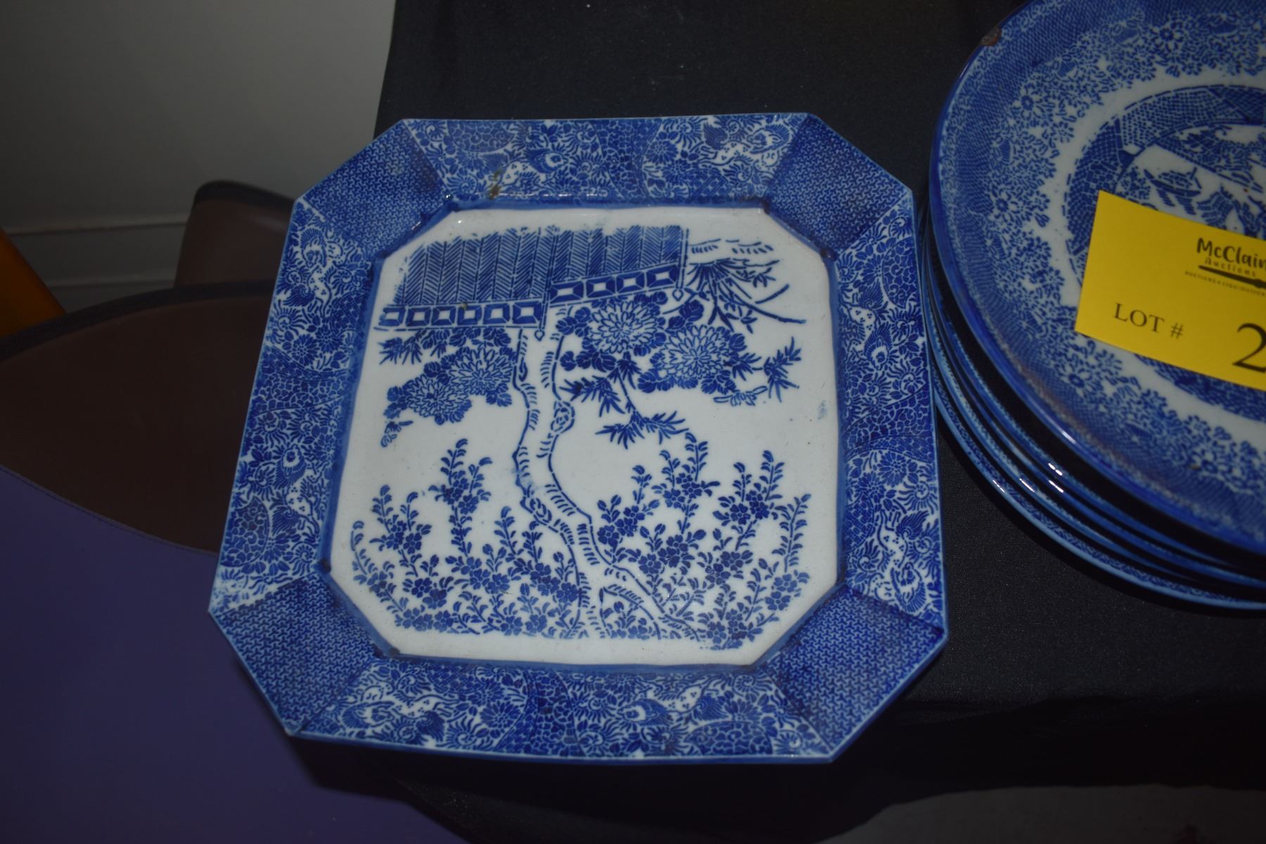 JAPANESE VINTAGE BLUE & WHITE COVERED BOWLS & PLATES (17 PCS)