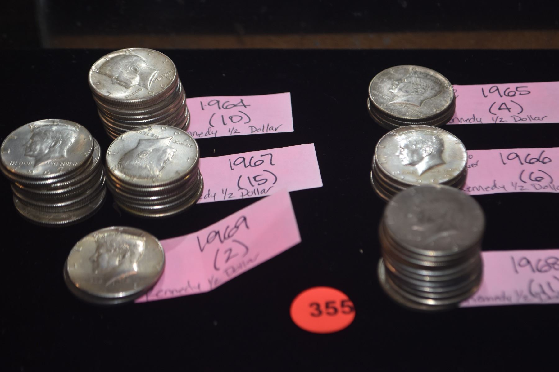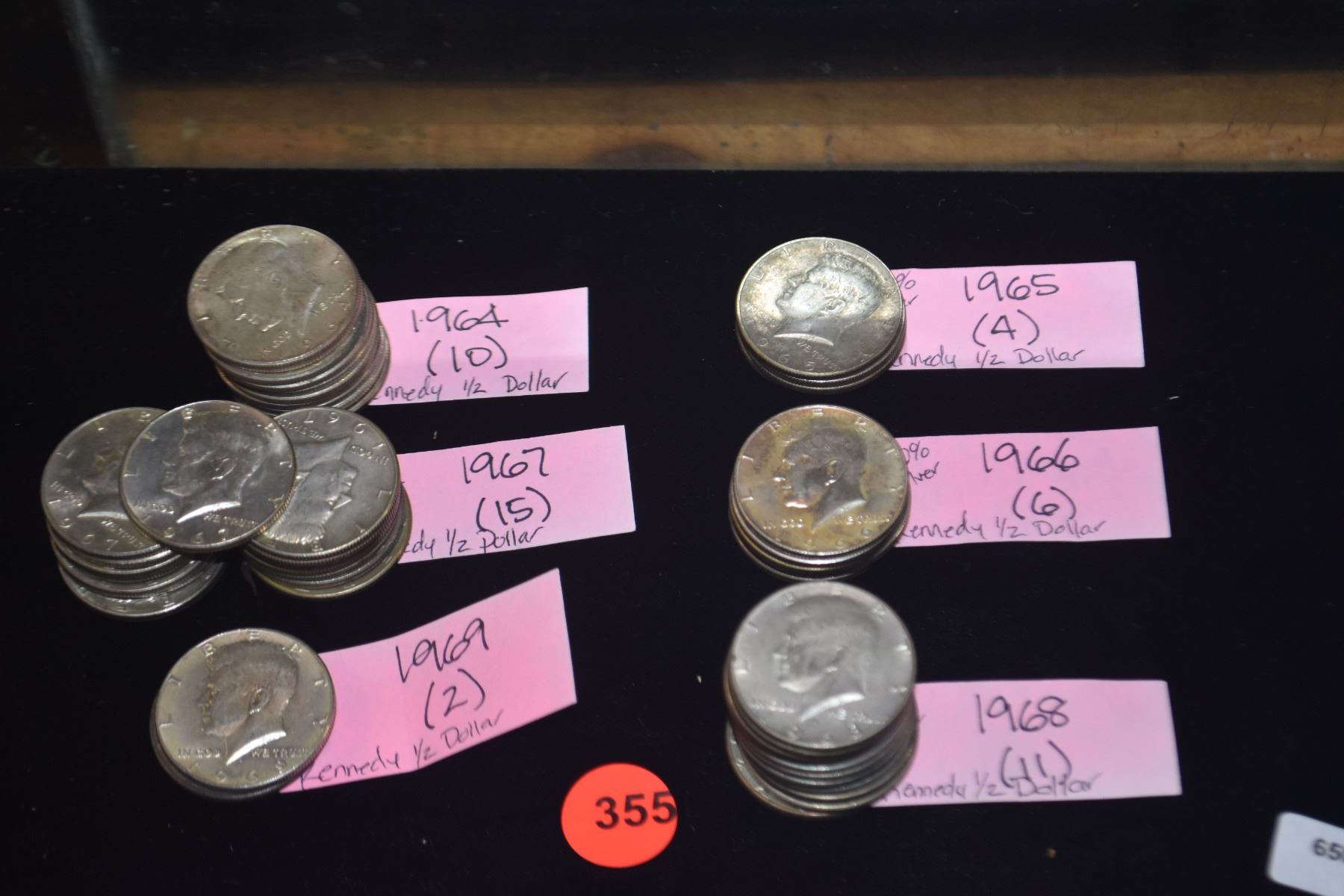 KENNEDY 1/2 DOLLARS - 1964 (10), 1965 (4), 1966 (6), 1967 (15), 1968 (11), 1969 (2) (48 PCS)