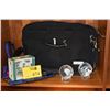 KENNETH COLE CANVAS BRIEFCASE, CHINESE PORCELAIN PILLOW, ETCHED GLASS WORLD GLOBE PAPERWEIGHTS & CLOTH PURSE (5 PCS)
