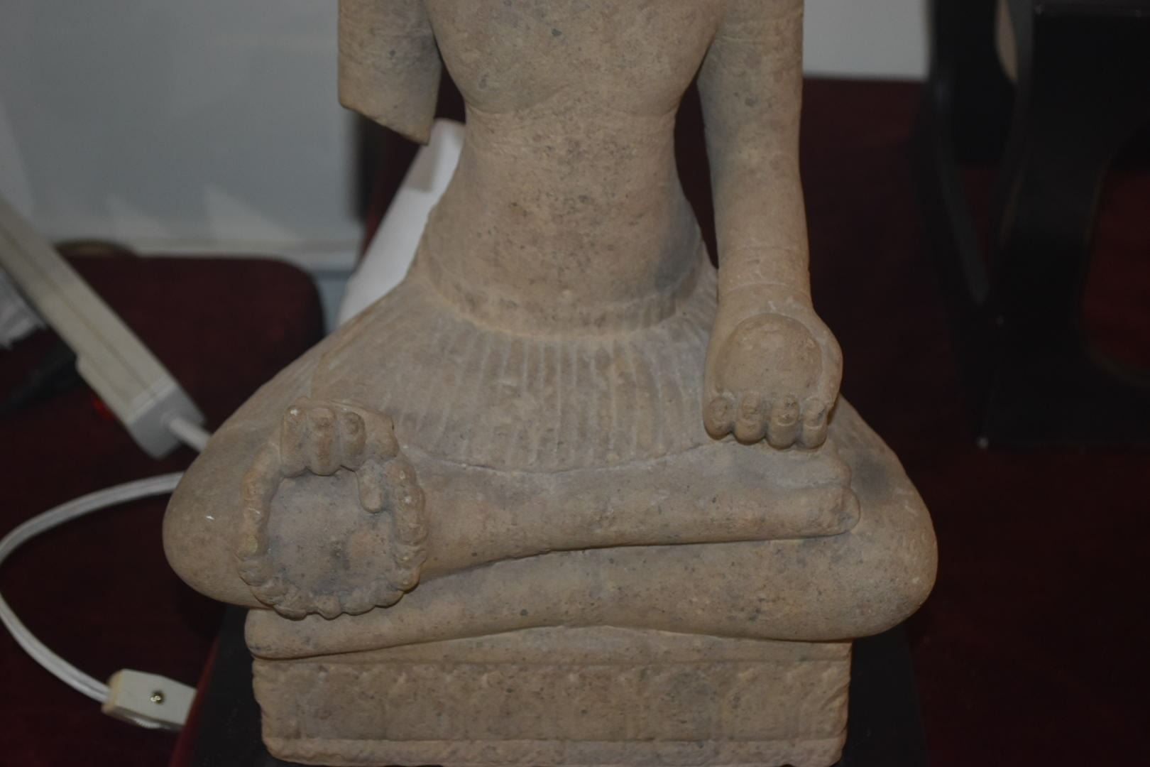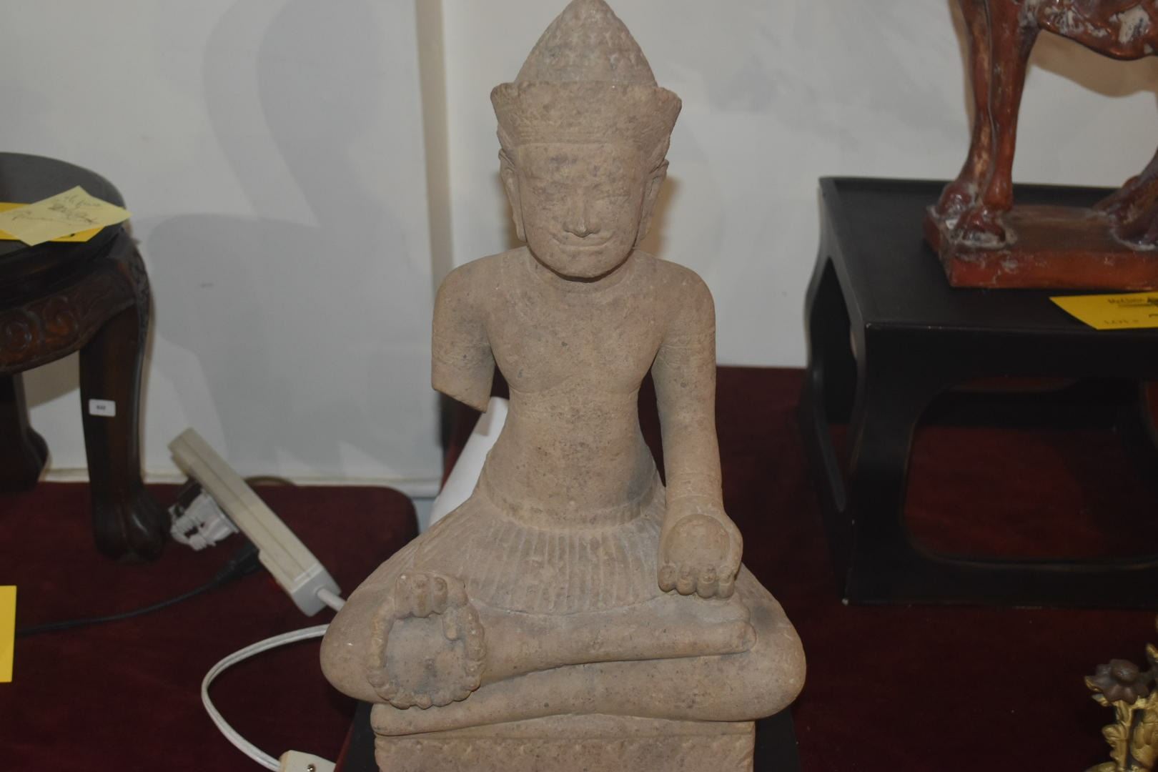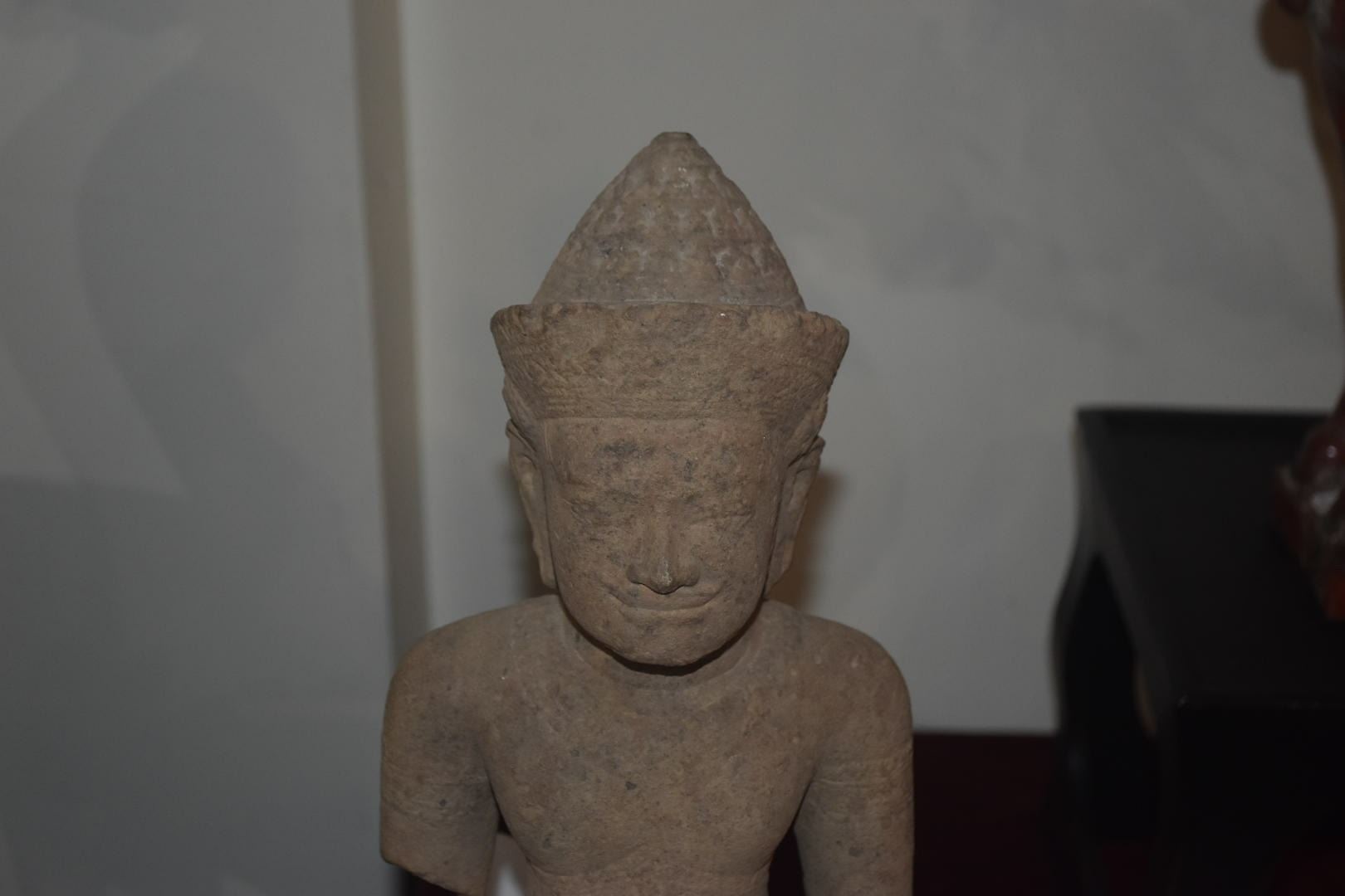 KILMER STYLE STONE SCULPTURE OF A DIVINITY, POSSIBLY A BODHISATTVA OR A CROWNED BUDDHA (17")