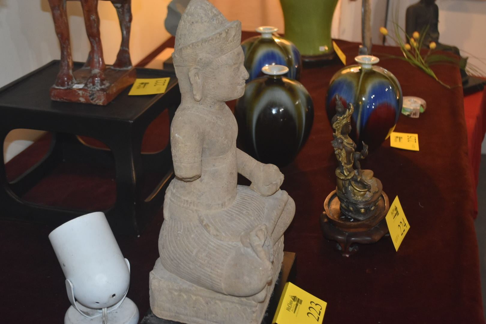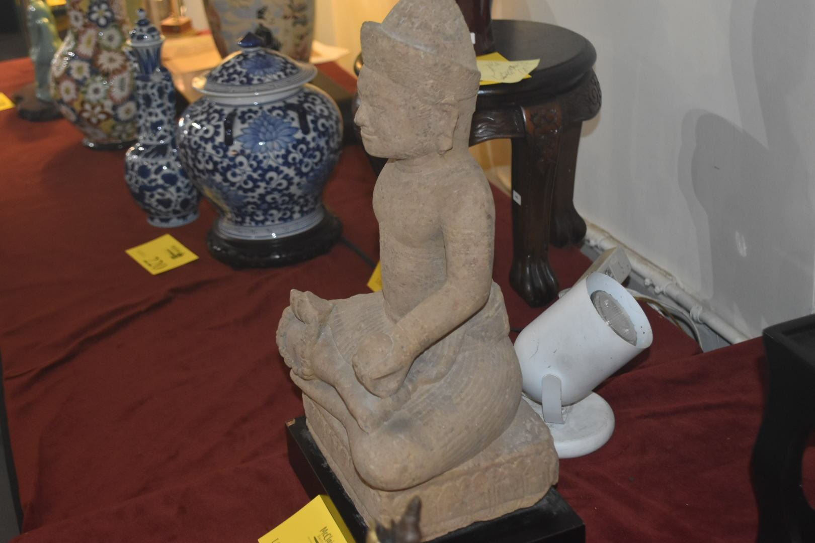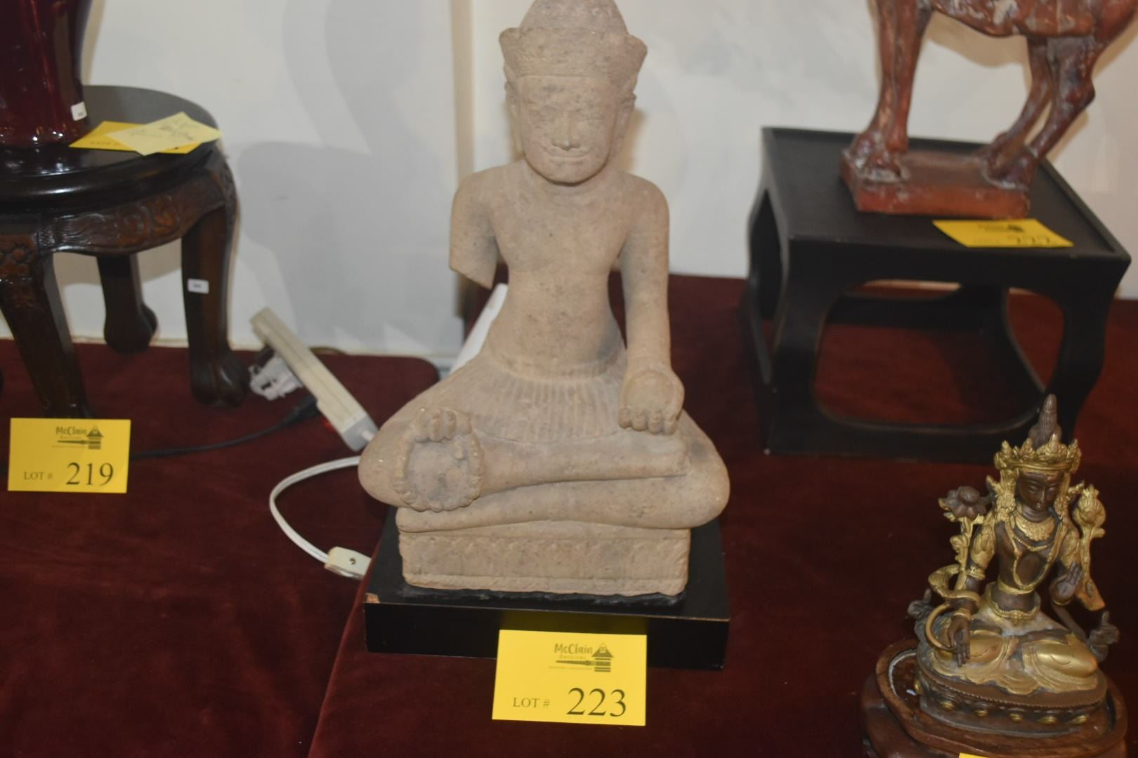 KILMER STYLE STONE SCULPTURE OF A DIVINITY, POSSIBLY A BODHISATTVA OR A CROWNED BUDDHA (17")