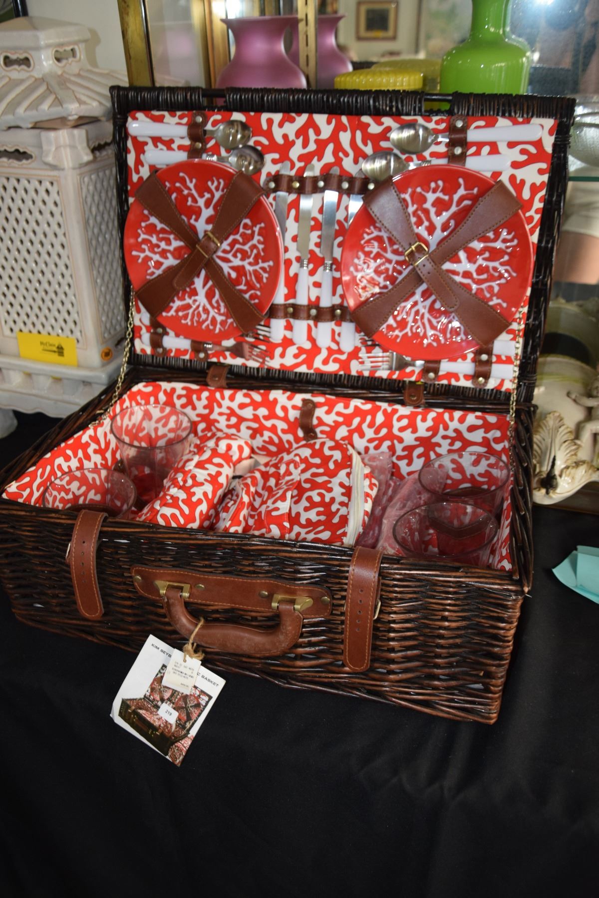 KIM SEYBERT PICNIC BASKET W/CONTENTS