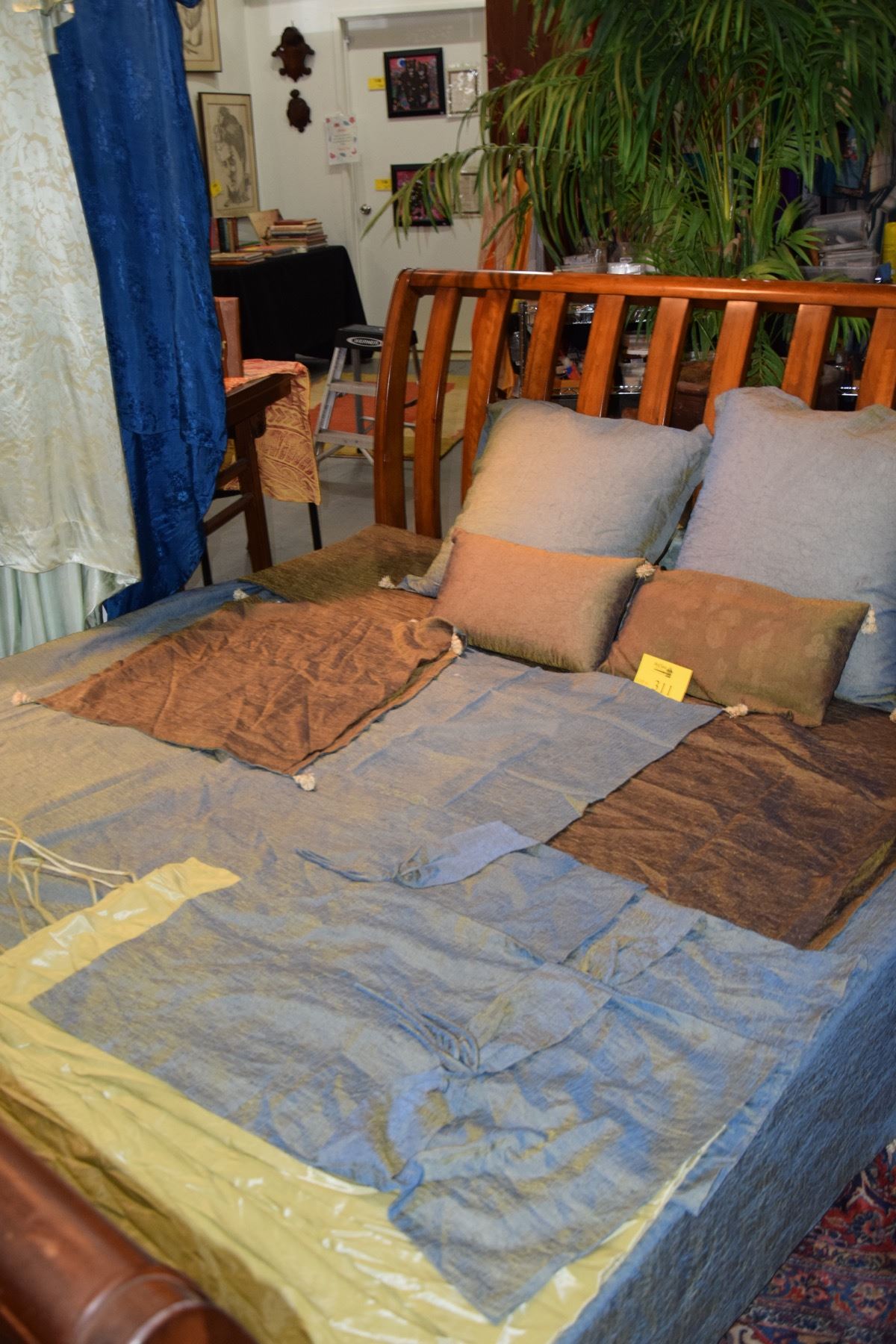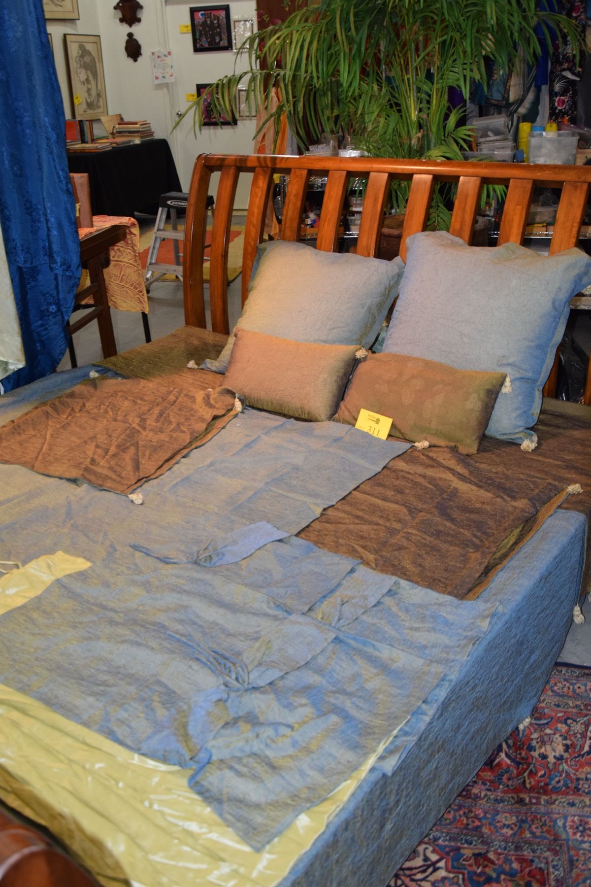 KING SIZE DOVET COVER, 5 EURO SHAMS (26" X 26") (W/2 PILLOWS), 2 PILLOWS (12" X 20"), 2 PILLOW CASES (19" X 33"), PILLOW CASE (19" X 41") & 2 PILLOW CASES (9" X 38")