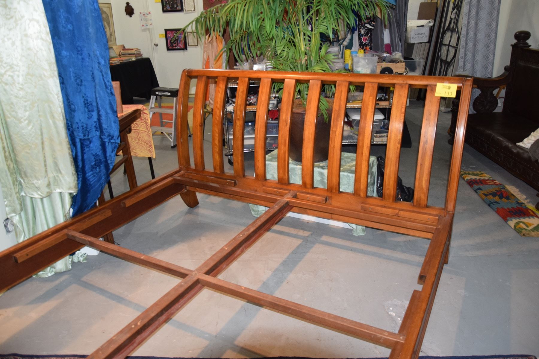 KING SIZE TEAK SLEIGH BED W/SLOTTED HEADBOARD & FOOT BOARD