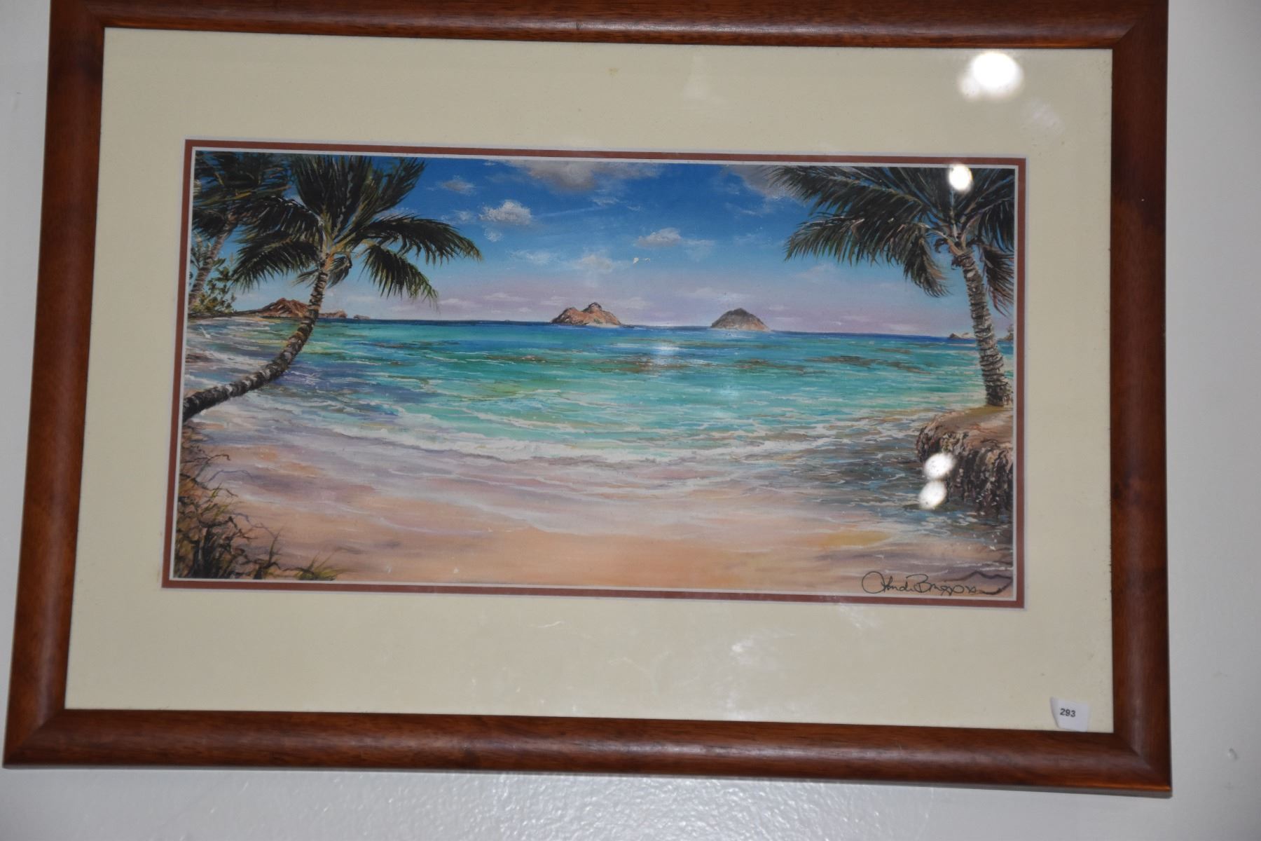 KOA FRAMED GICLEE, "MOKULUA'S IN LANIKAI"; LINDA BRIGGS 3/500 (20 1/2" X 10")