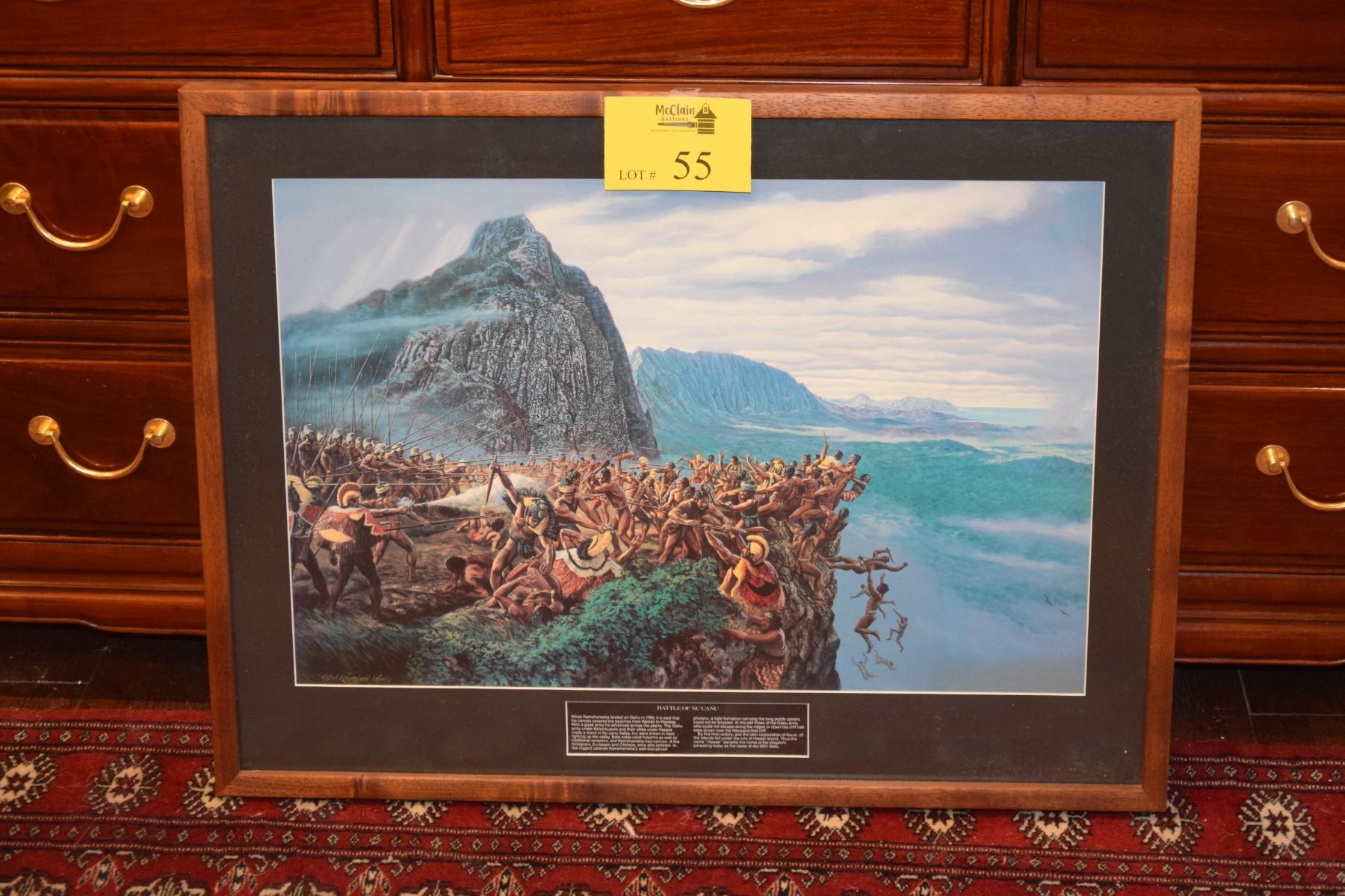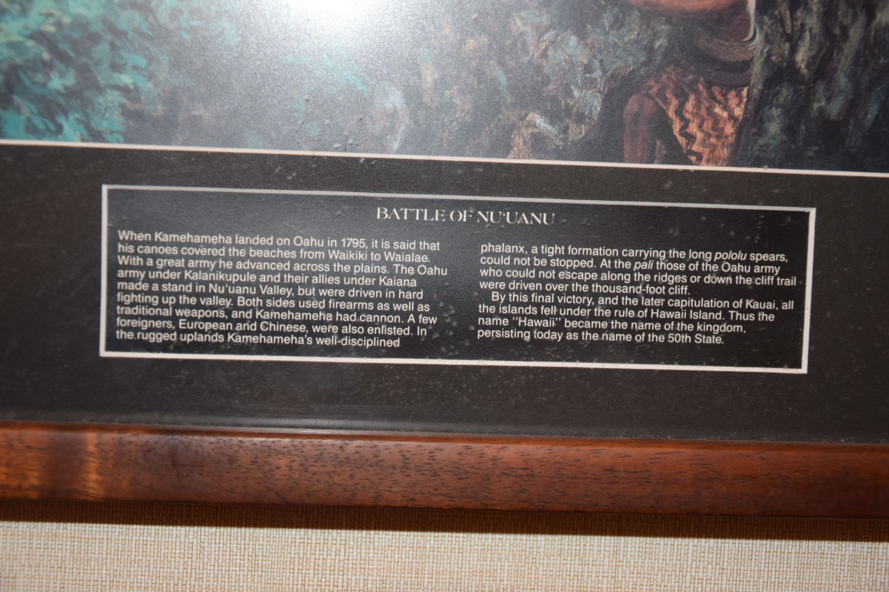 KOA FRAMED LITHOGRAPH, "BATTLE OF NUUANU"; HERB KANE (28 1/2" X 21 1/2")