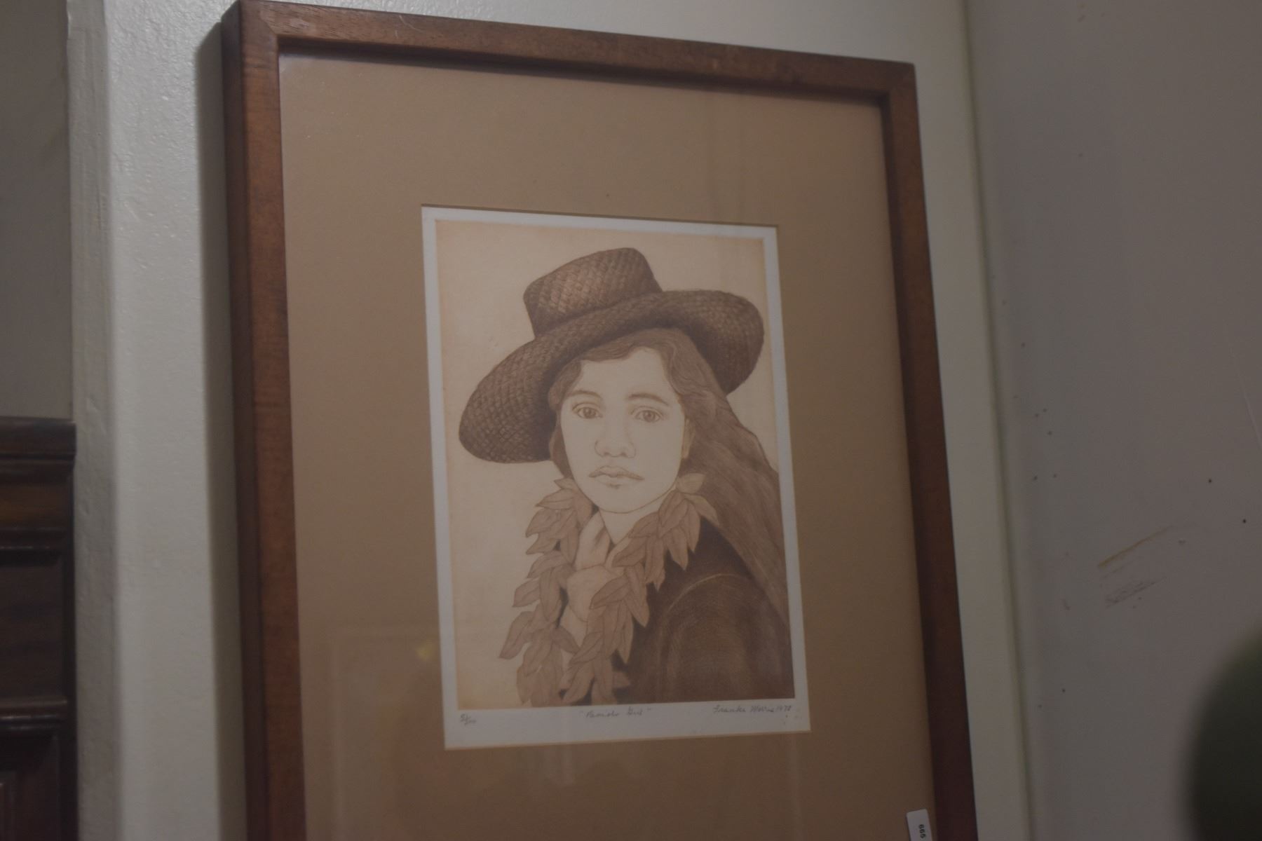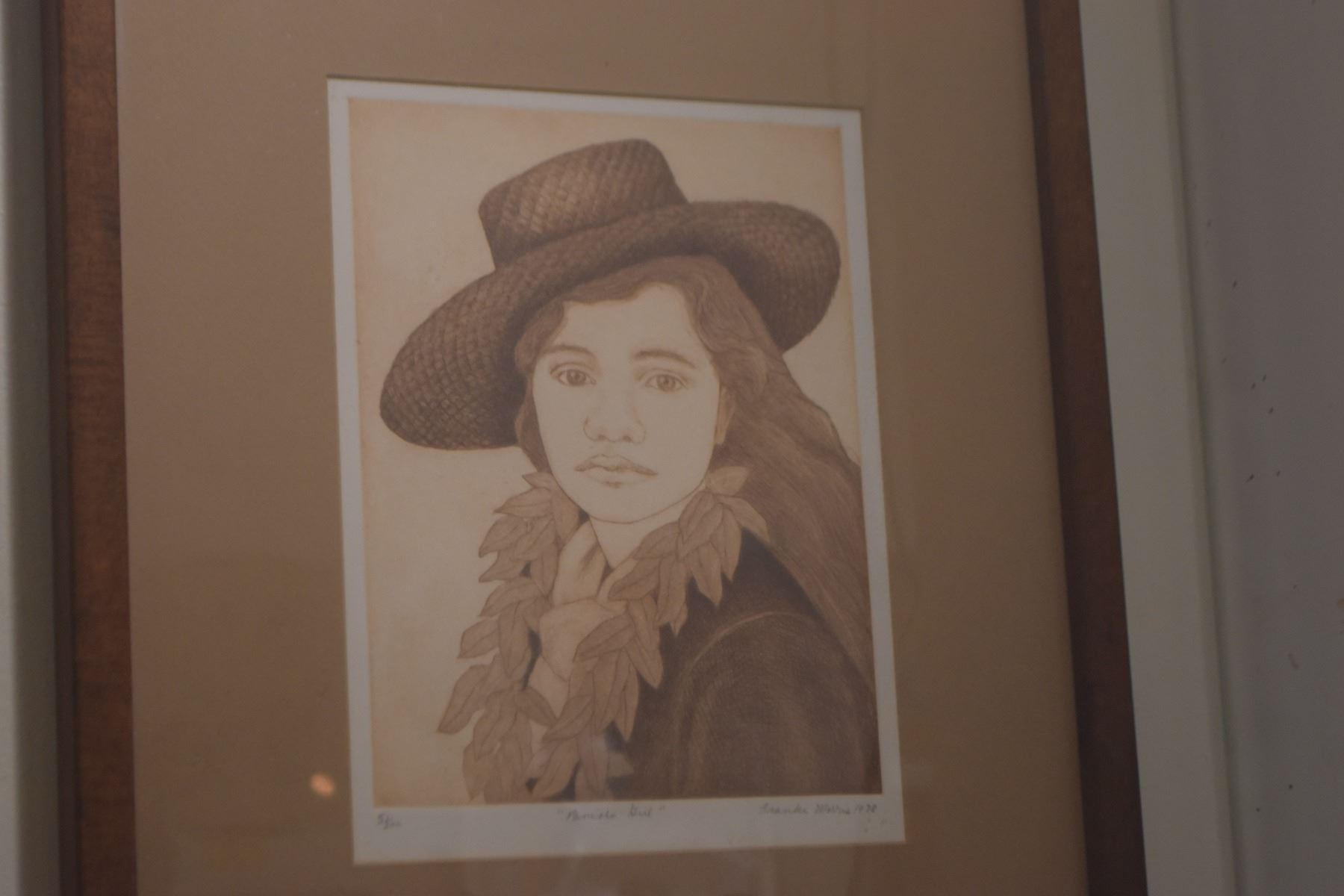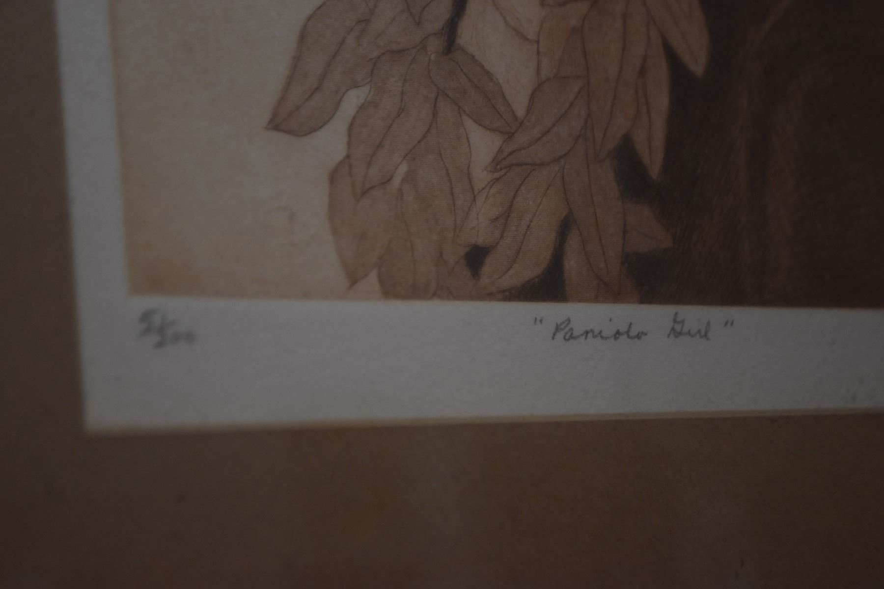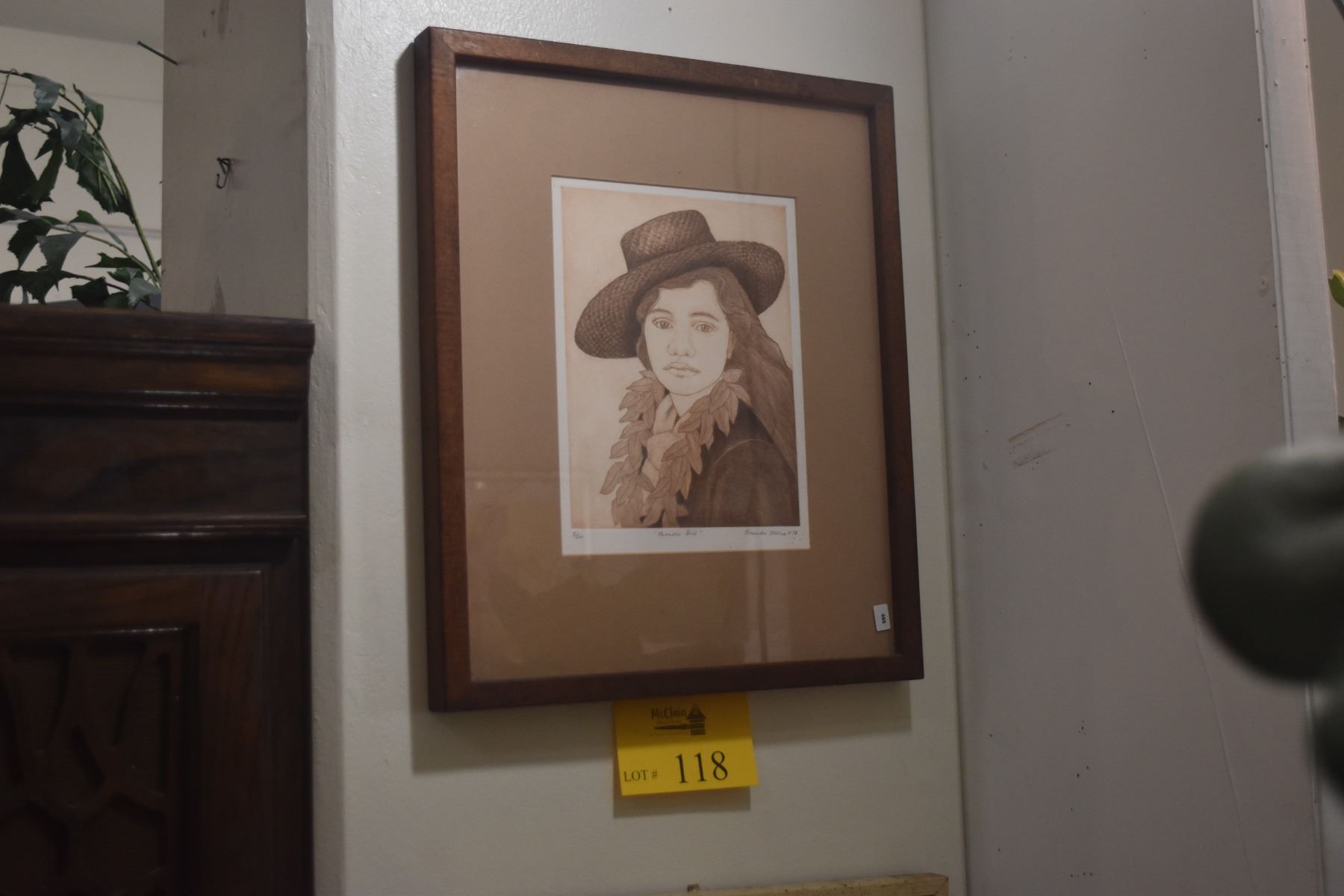 KOA FRAMED PRINT, "PANIOLO GIRL"; SIGNED FRANKI MORRIS 1978 51/200 (15" X 18")