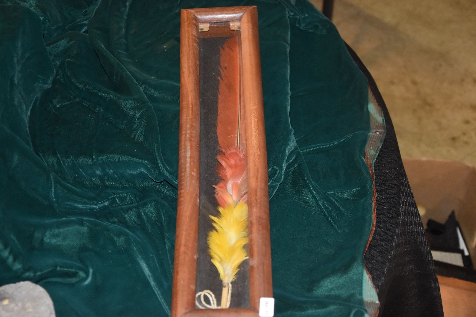 KOA SHADOW BOX FRAMED PARROT FEATHER ADORNMENT