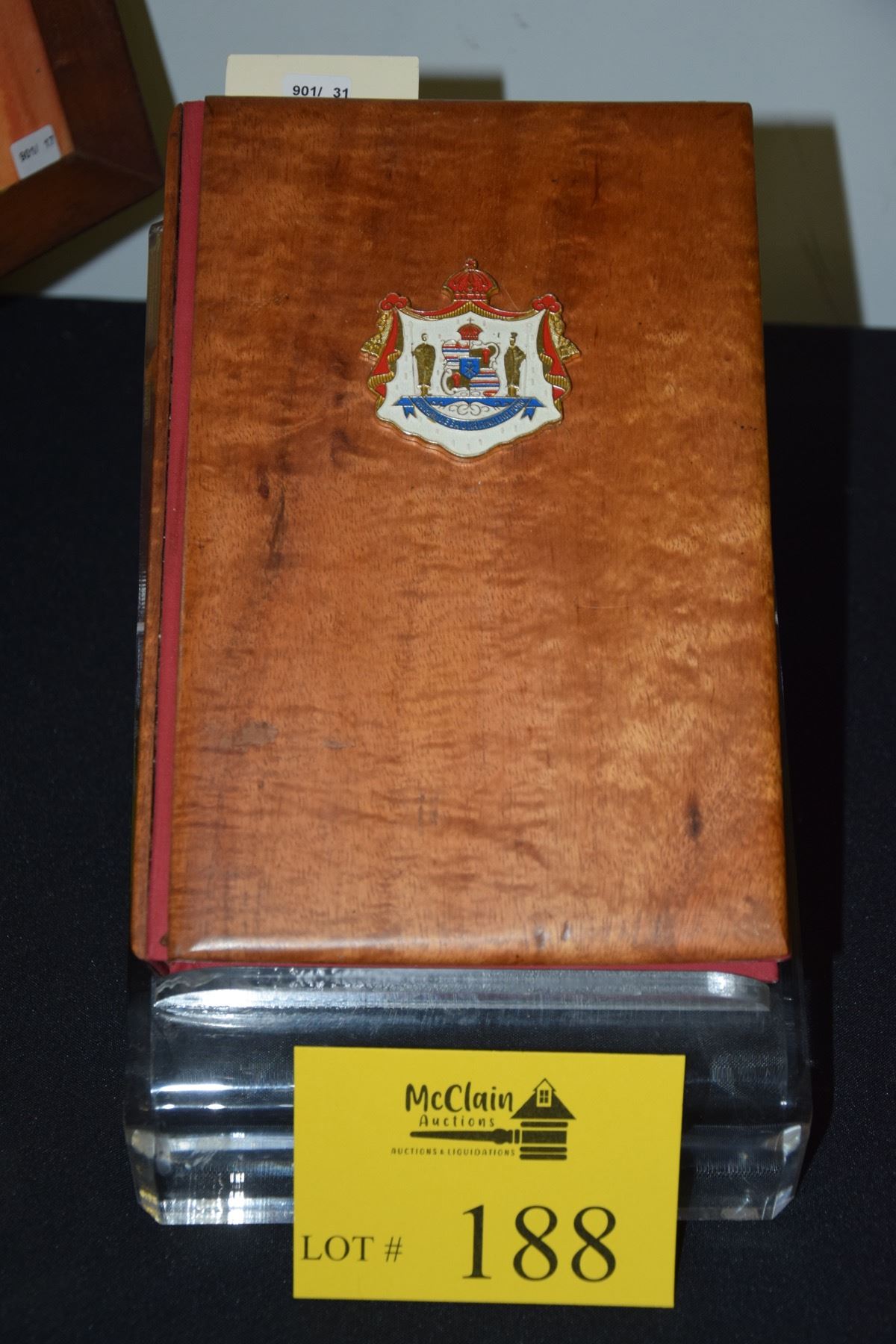KOA WOOD COVERED BOOK, "NA HIMENI HAIPULE HAWAII, SESQUICENTENNIAL EDITION, HONOLULU, HAWAII 1972 &