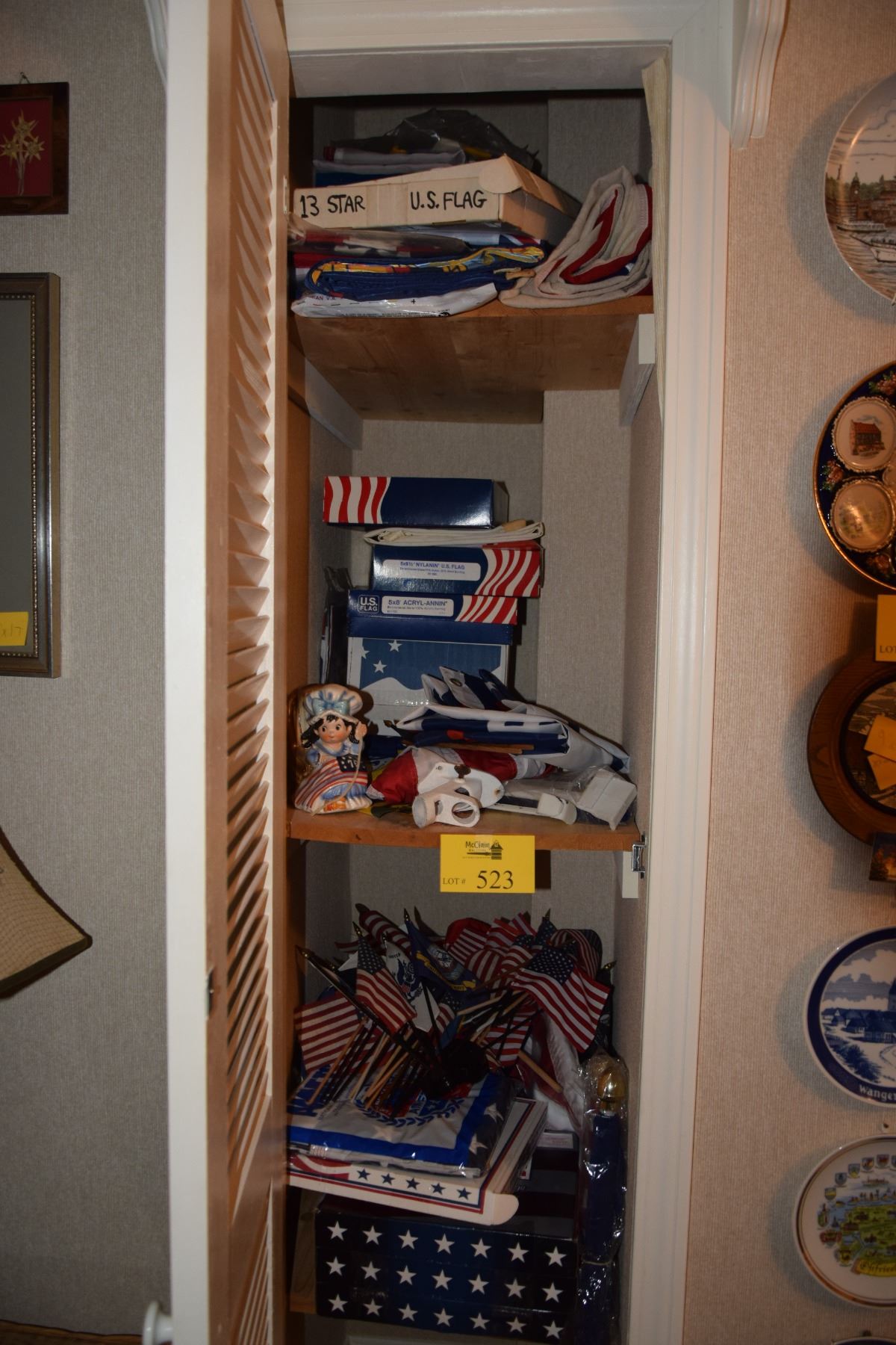 LARGE COLLECTION OF FLAGS (3 SHELVES)