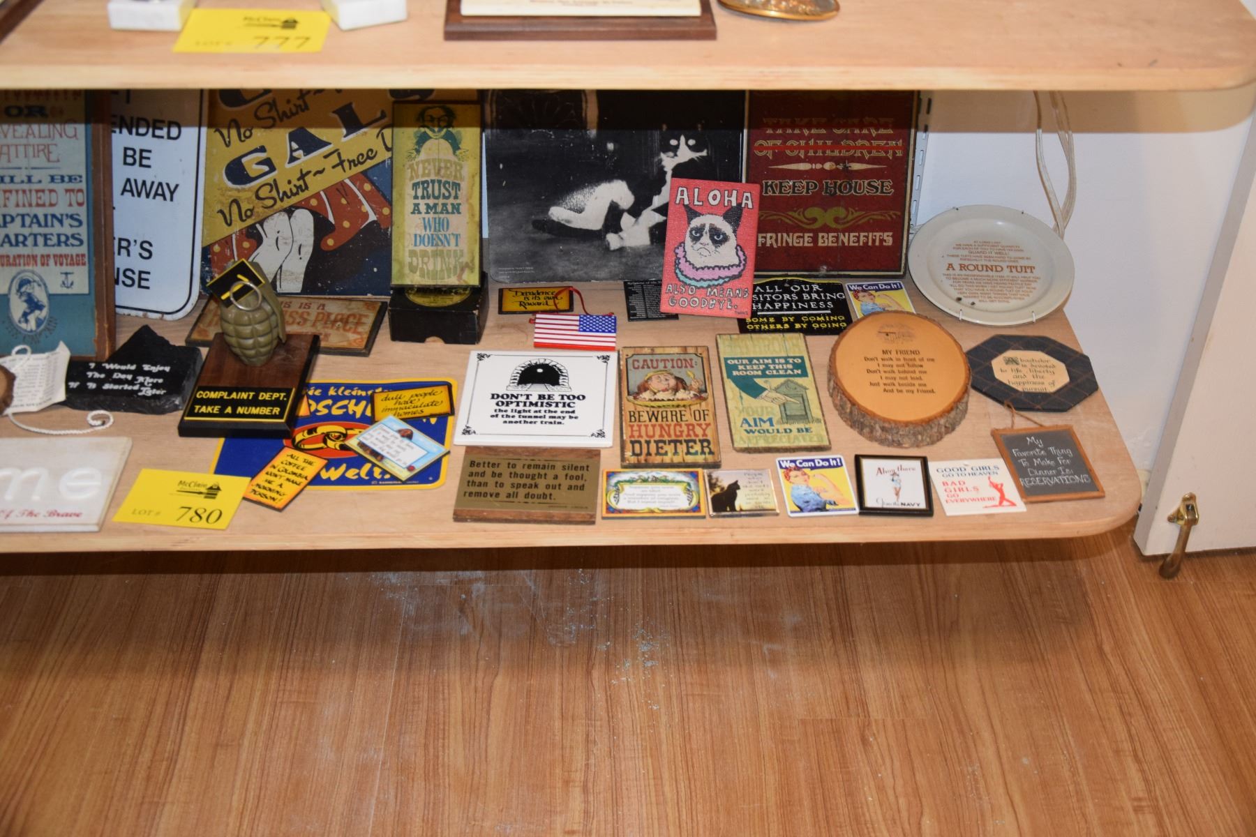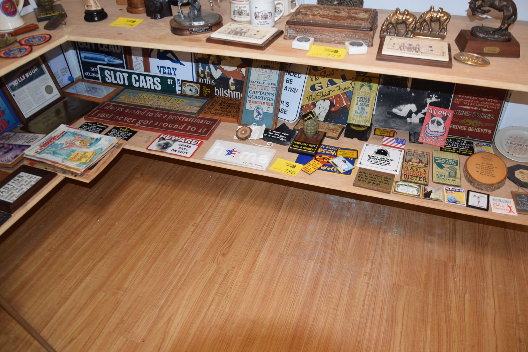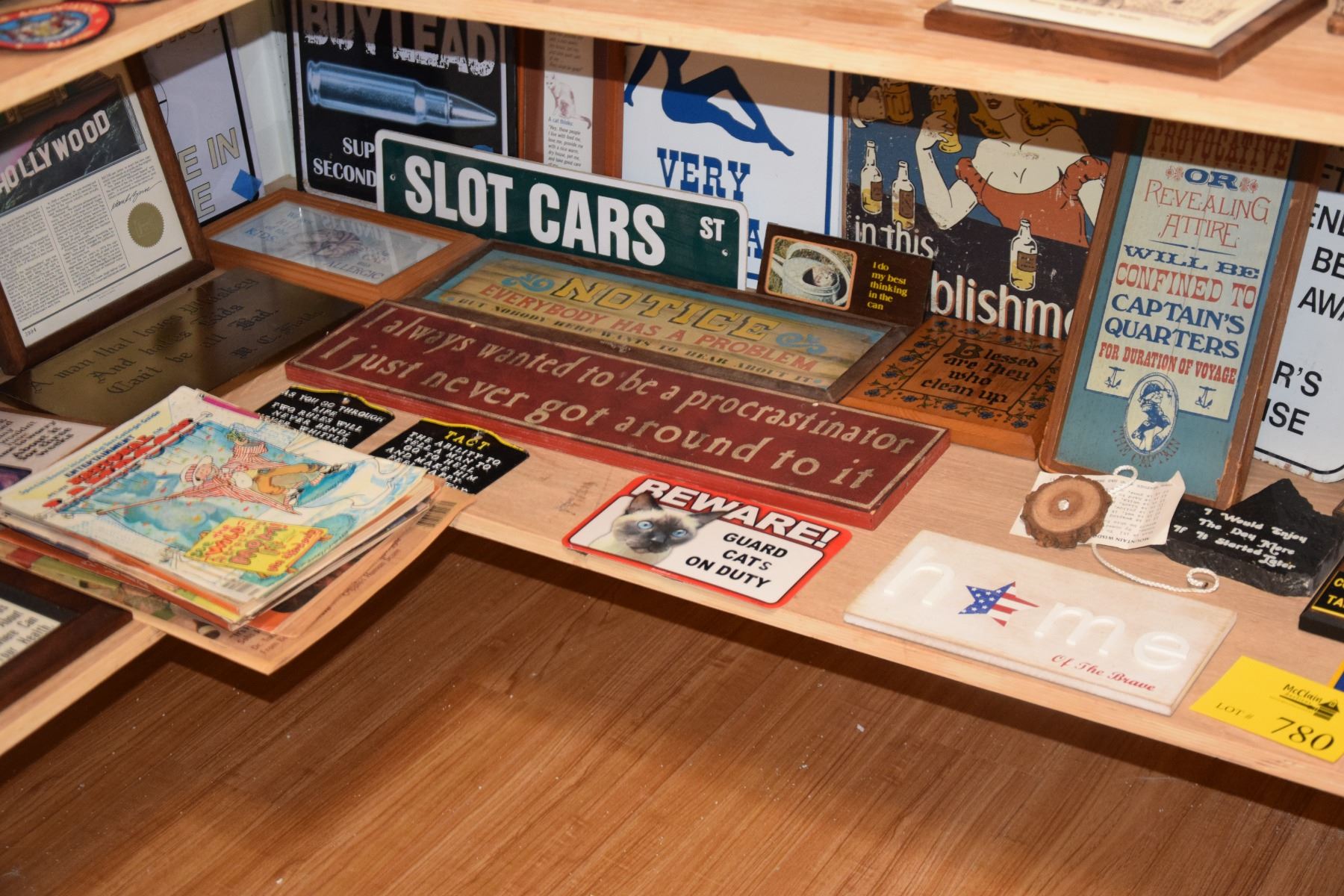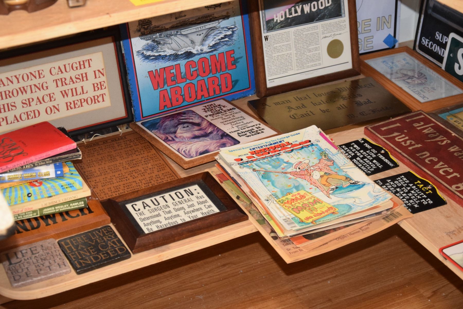 LARGE COLLECTION OF MISC. SIGNAGE, JOKE BOOKS, NATIONAL LAMPOON MAGAZINE