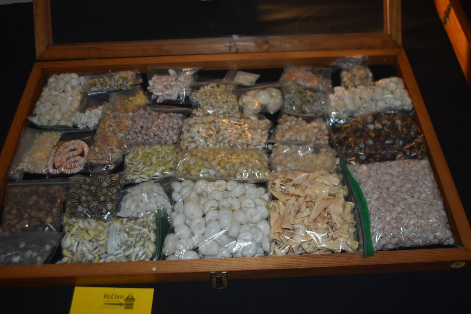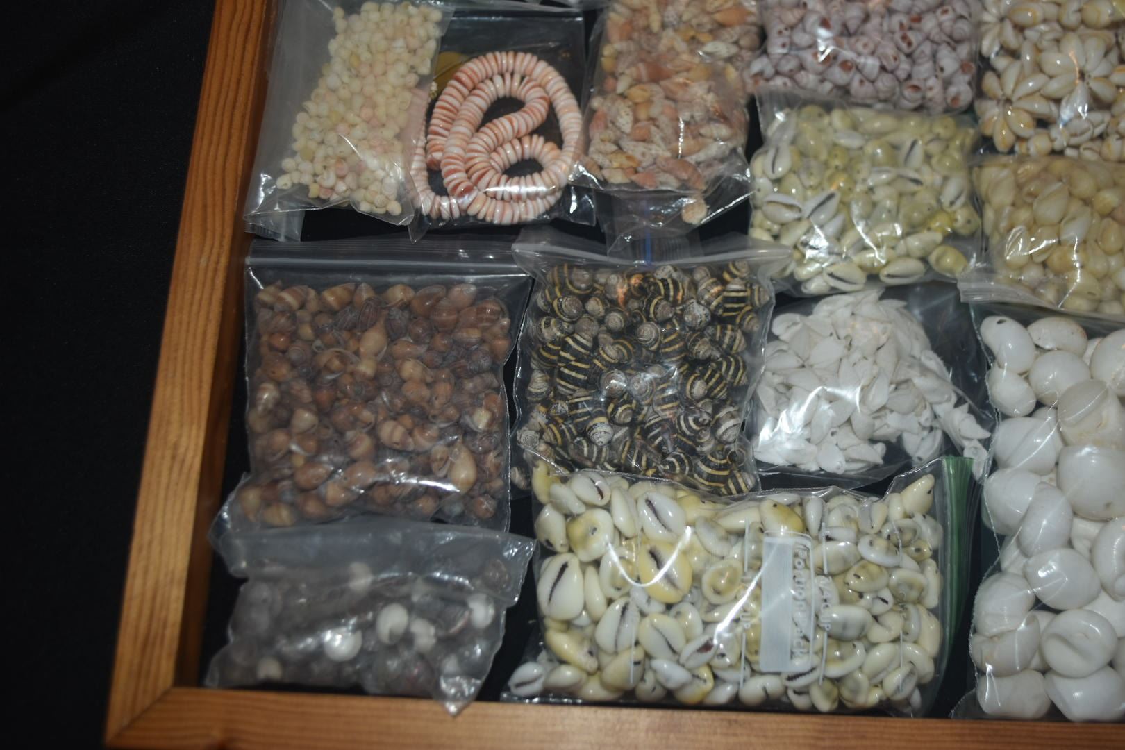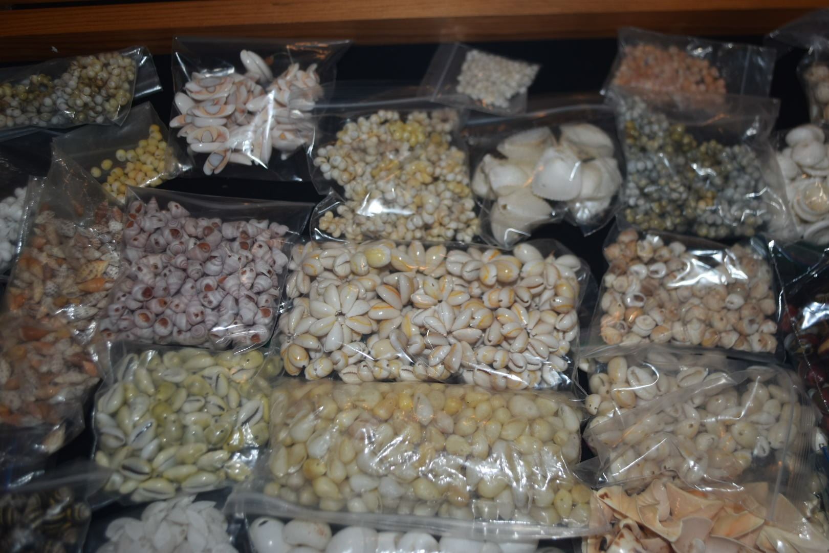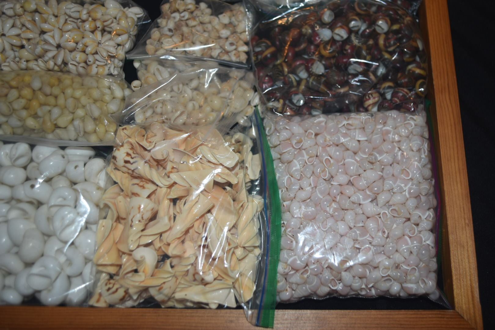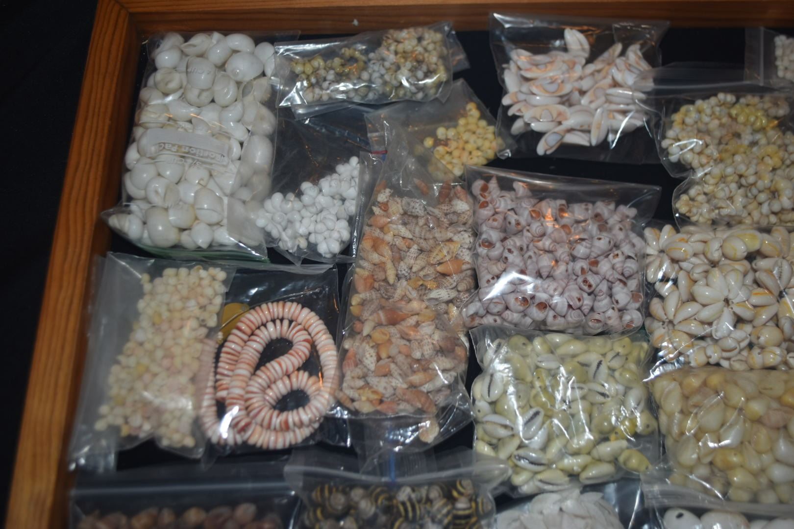 LARGE COLLECTION OF SHELLS READY FOR STRINGING (MOON SHELLS, COWRIES, PUKA SHELLS, PAUMANA, ETC.) (30 BAGS)