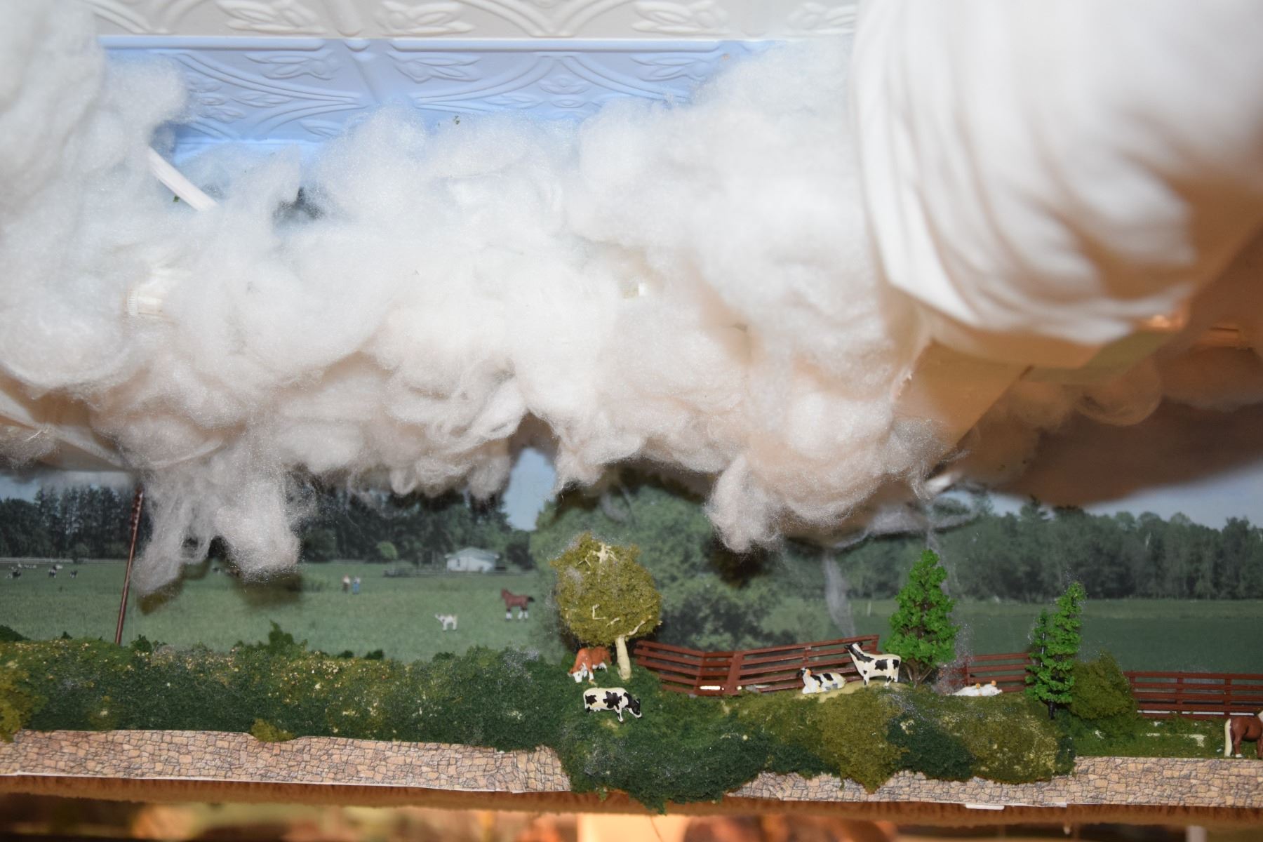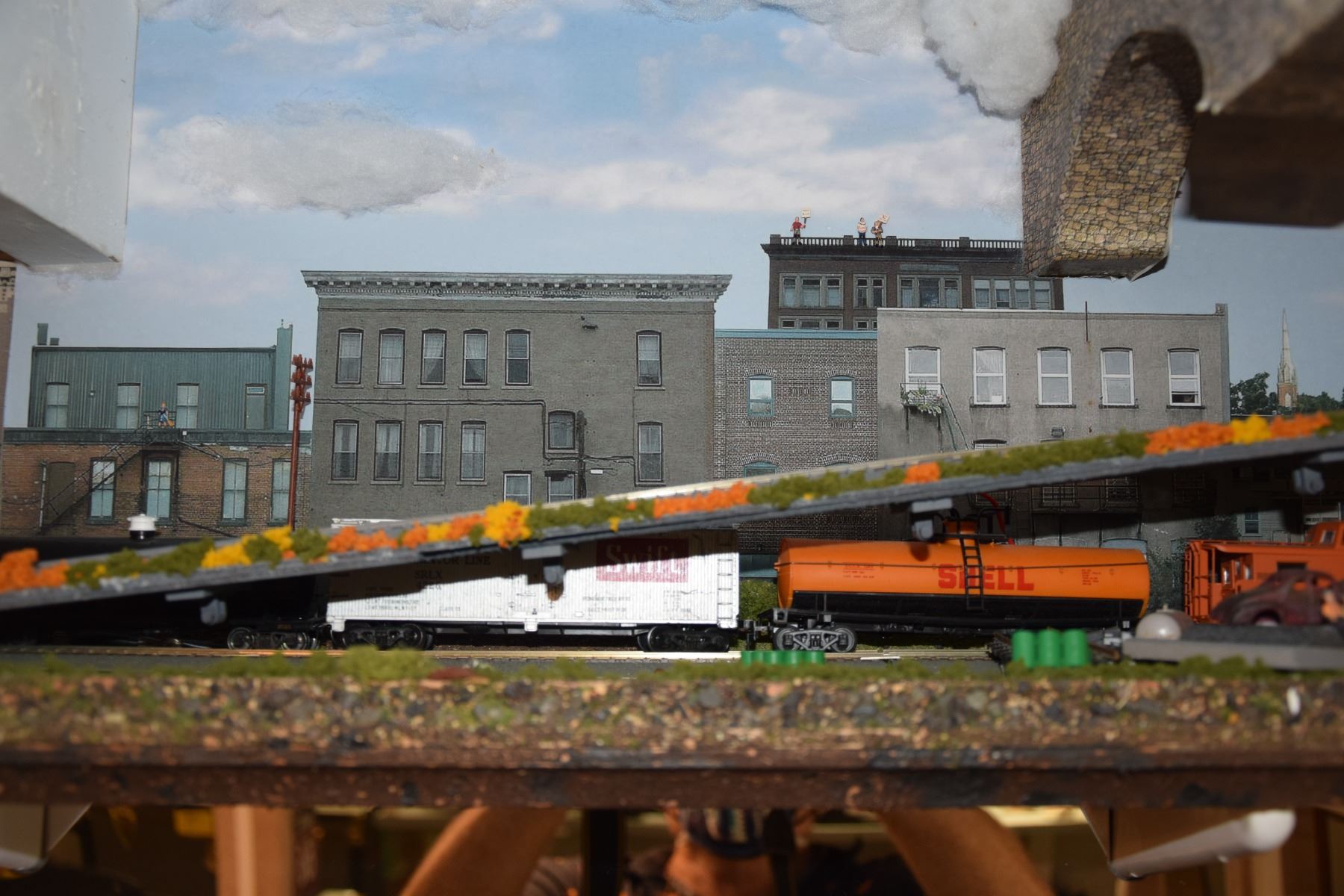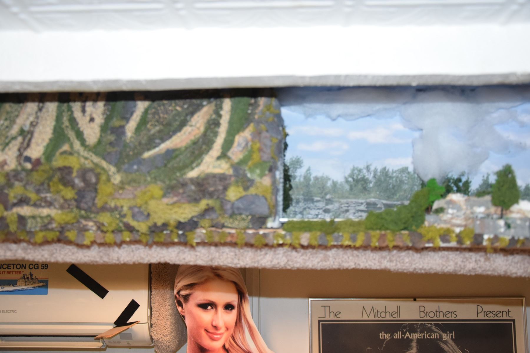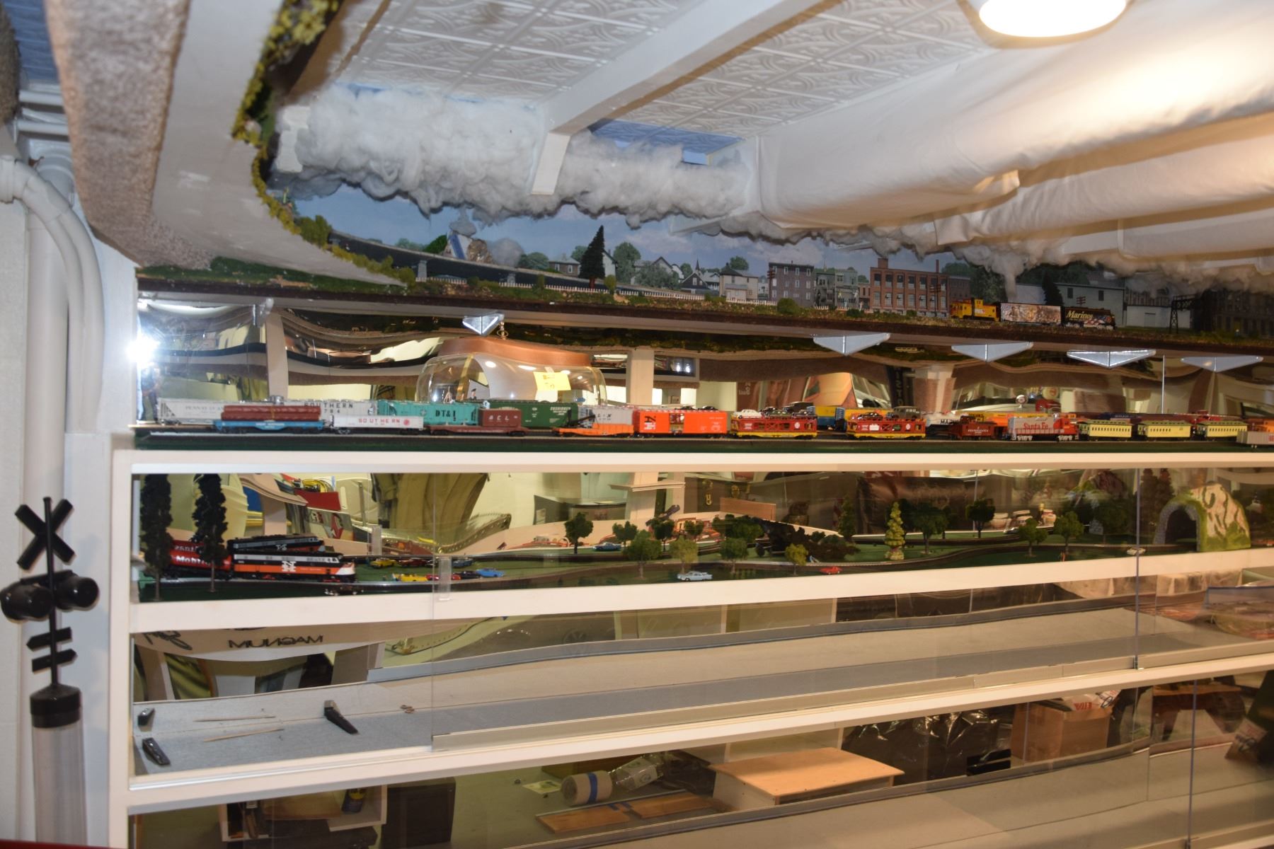 LARGE LOT OF TRAIN SET & ACCESSORIES: CARS (64) SCALE (40) LOCOMOTIVES (4), TREES, CARS, TRUCK, HATS, CROSSING SIGN, ETC.