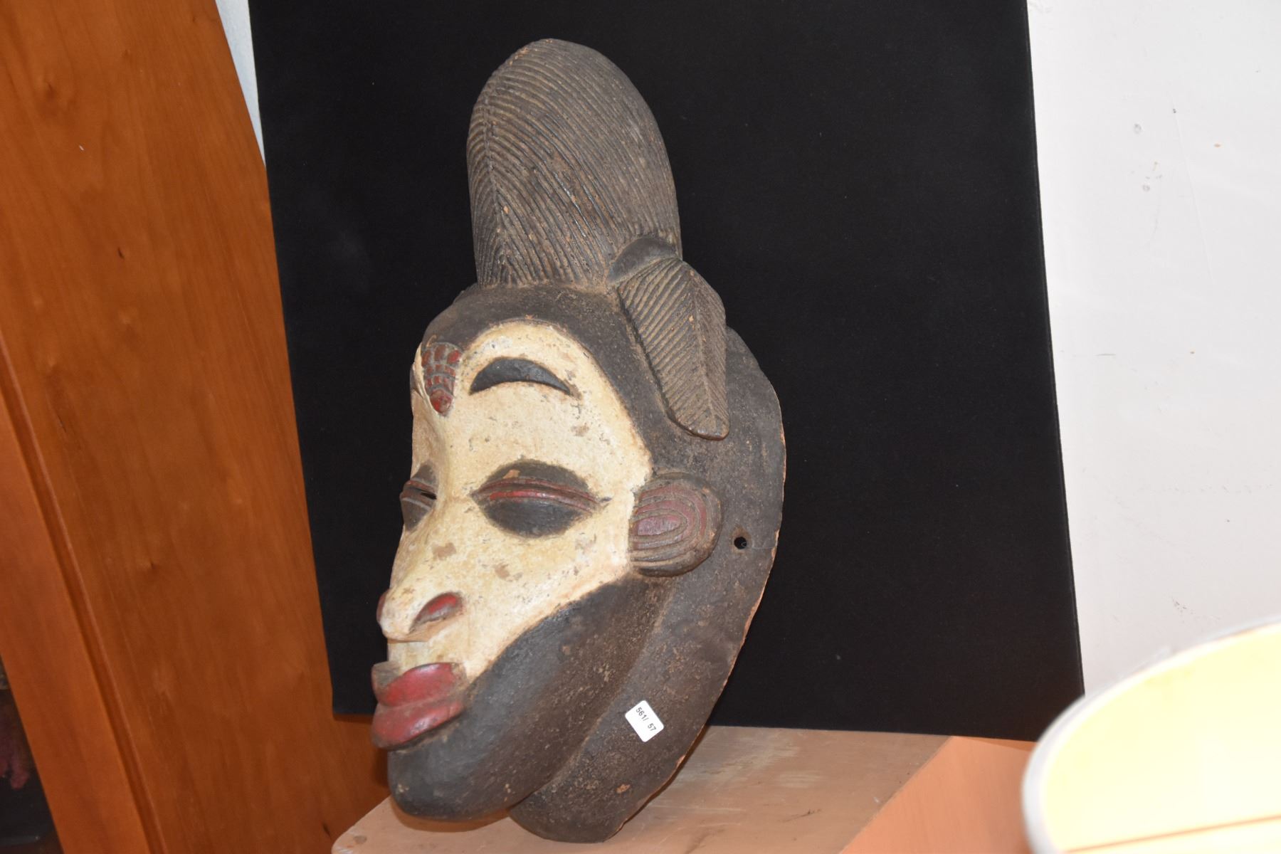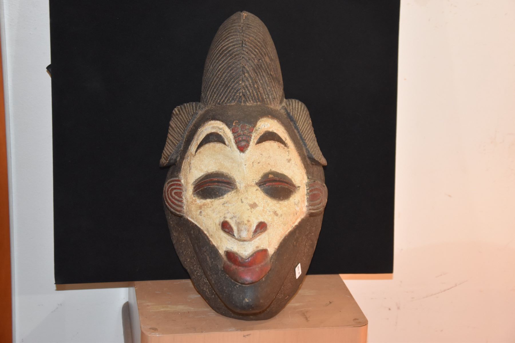 LARGE PUNU SPIRIT MASK, GABON WOOD W/WHITE FACE (10" X 17")
