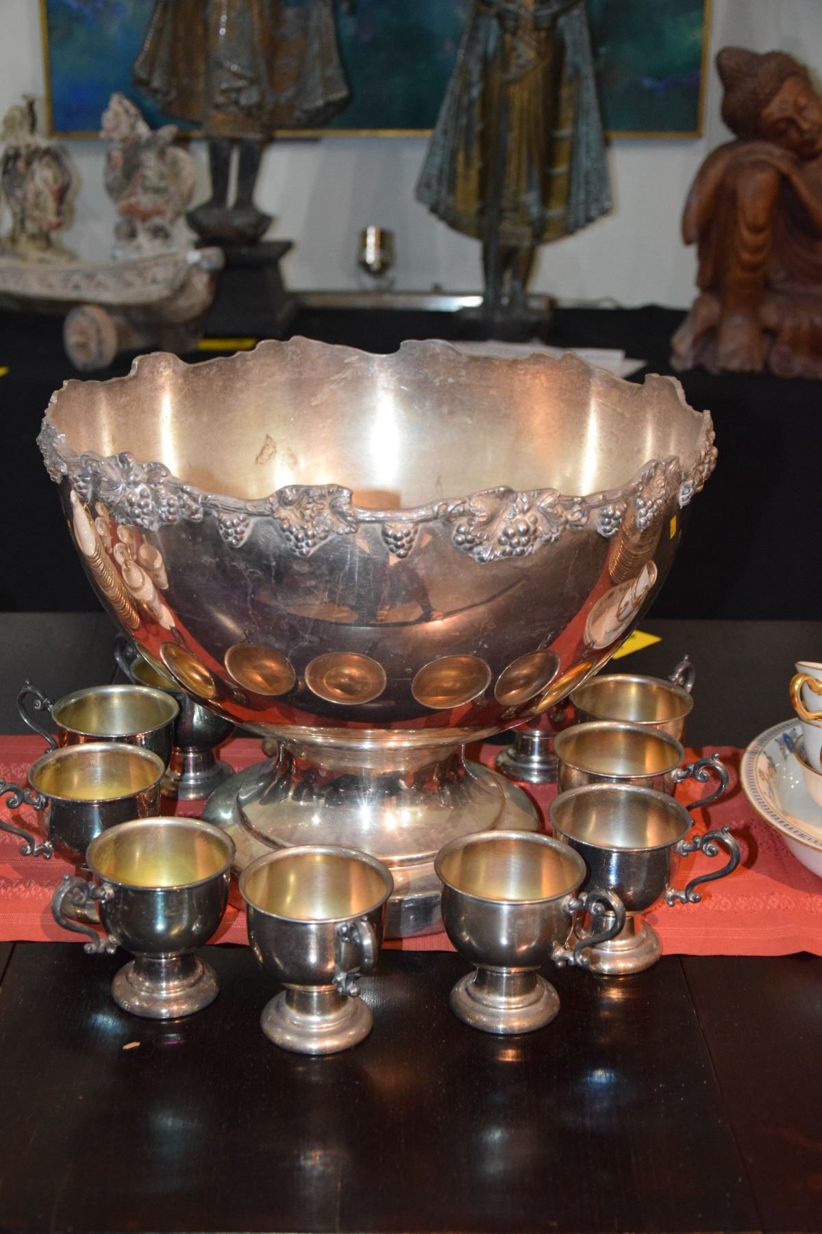 LARGE SILVER PLATE PUNCHBOWL W/12 CUPS (13 PCS)