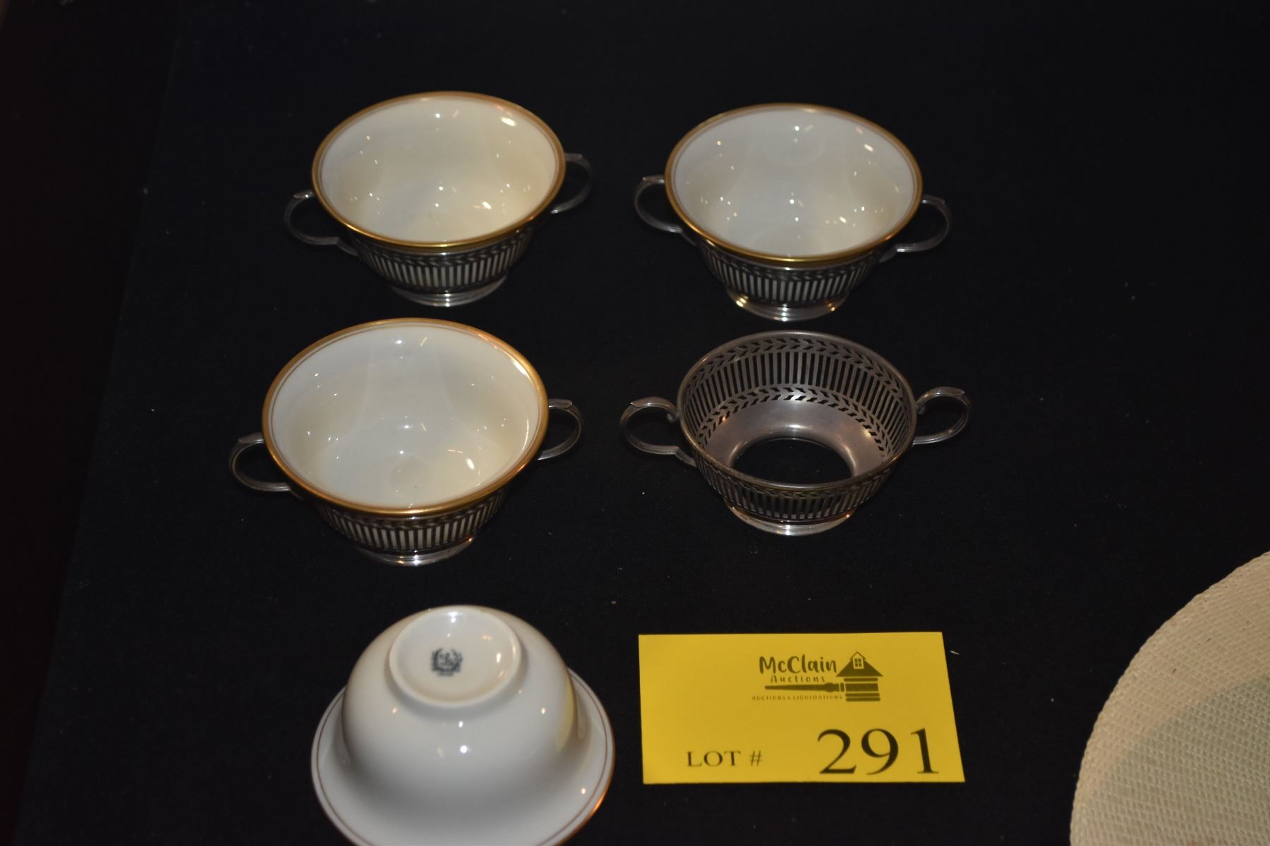LENOX PORCELAIN CUPS W/STERLING SILVER HOLDERS (4 PCS)