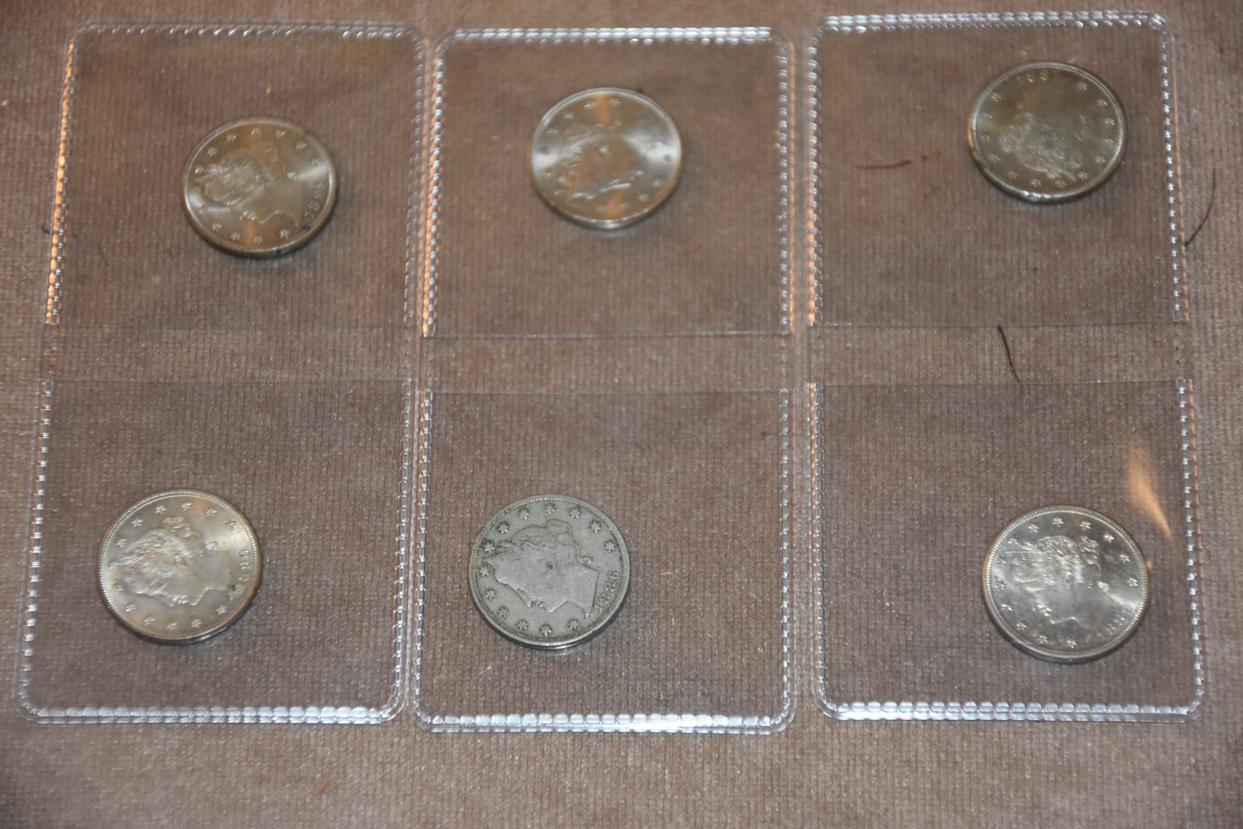 LIBERTY HEAD V NICKELS (1884, 1886, 1889, 1890, 1894, 1895) (6 PCS)