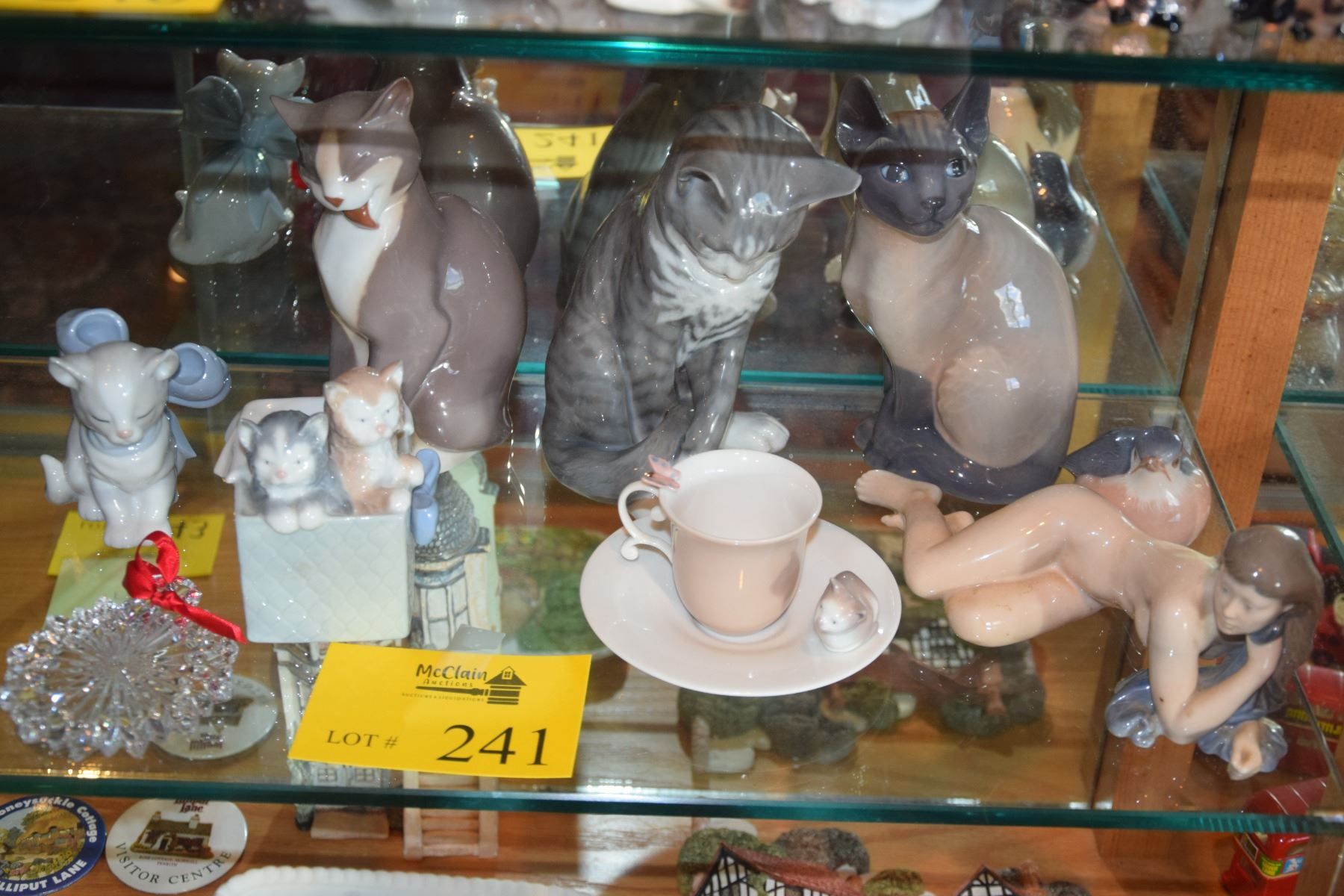 LLADRO FIGURINES: CATS, BIRD, NUDE & WATERFORD CRYSTAL ORNAMENT (9 PCS)