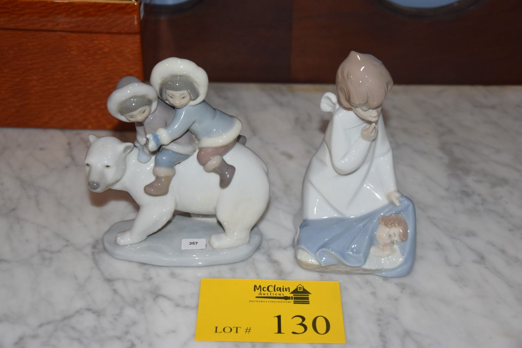 LLADRO GUARDIAN ANGEL FIGURINE #4635 & LLADRO ESKIMO CHILDREN ON POLAR BEAR #5353 (2 PCS)