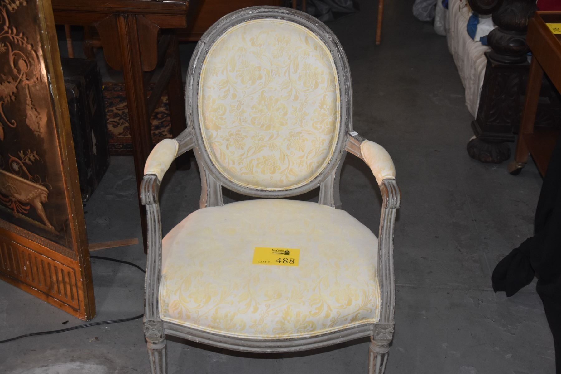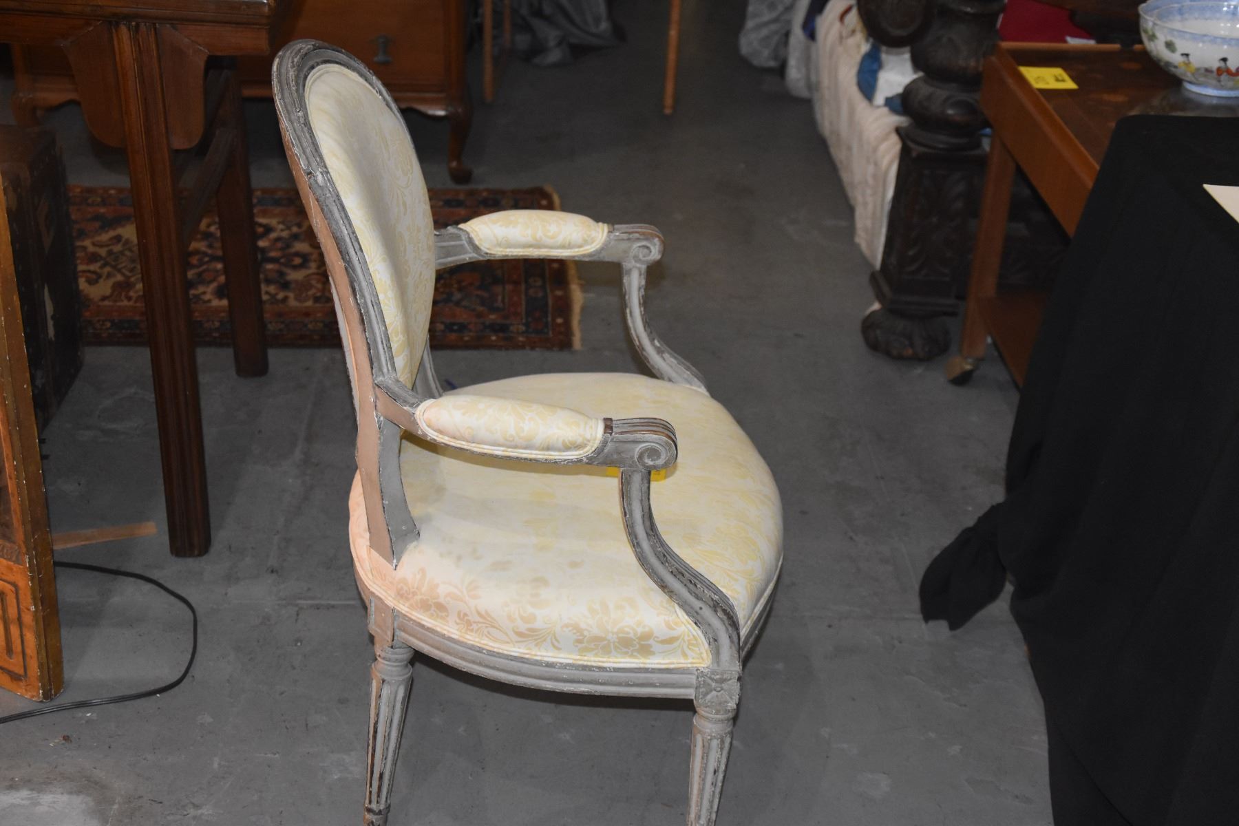 LOUIS XVI STYLE ARM CHAIR W/FORTUNY FABRIC